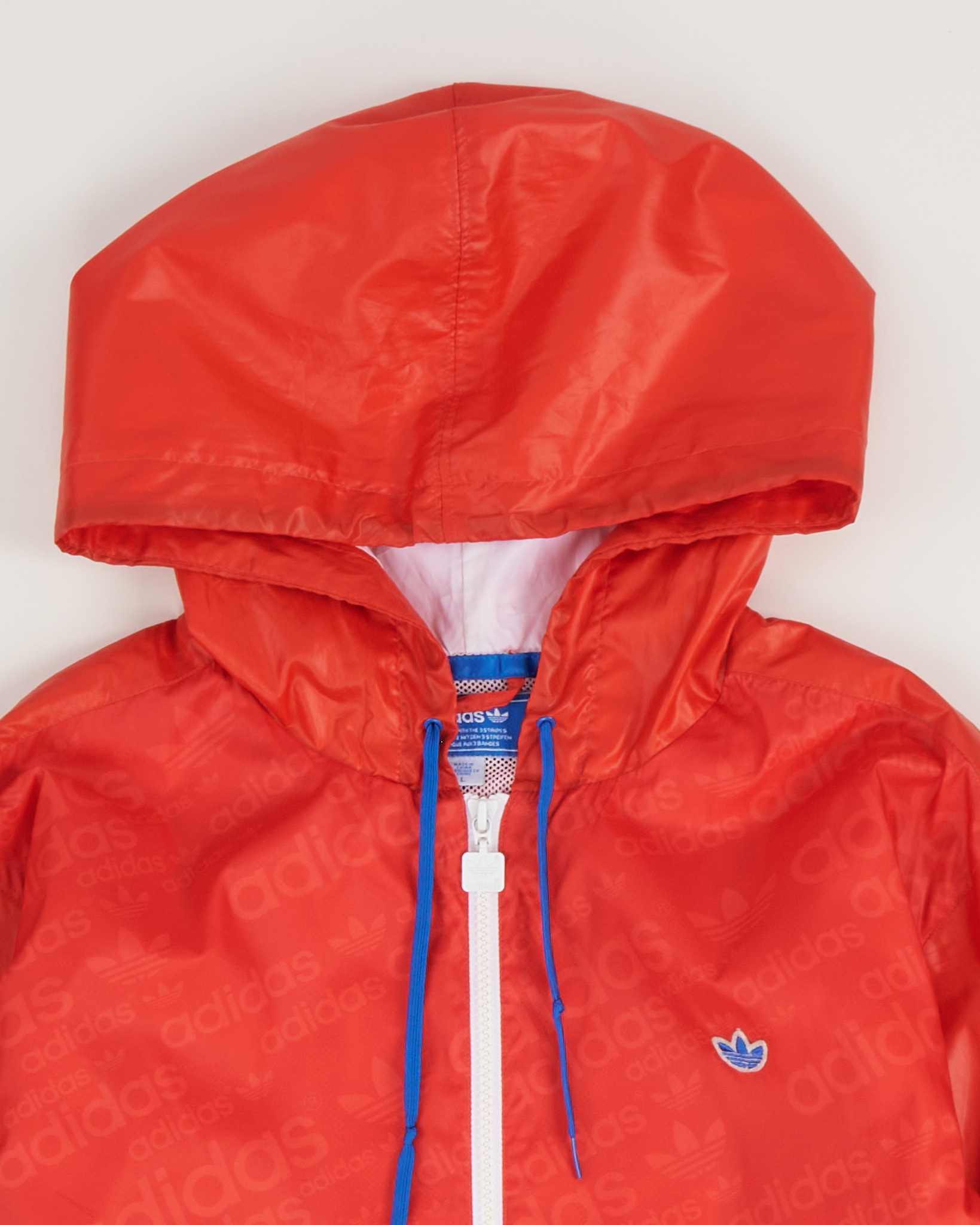 Ветровка adidas в спортивном стиле с контрастным цветовым блоком. Свободная посадка, мягко собирается по низу на манжетах. Капюшон с утяжкой, центральная молния и карманы на замках. Вышитый логотип.