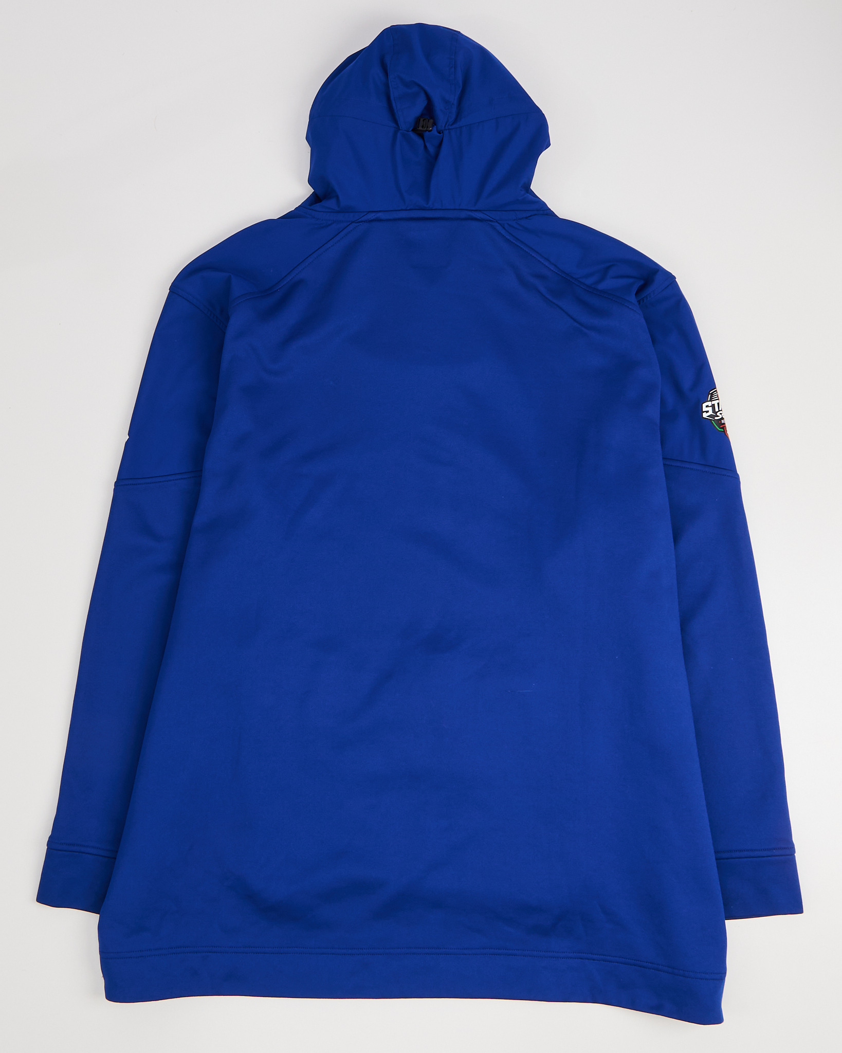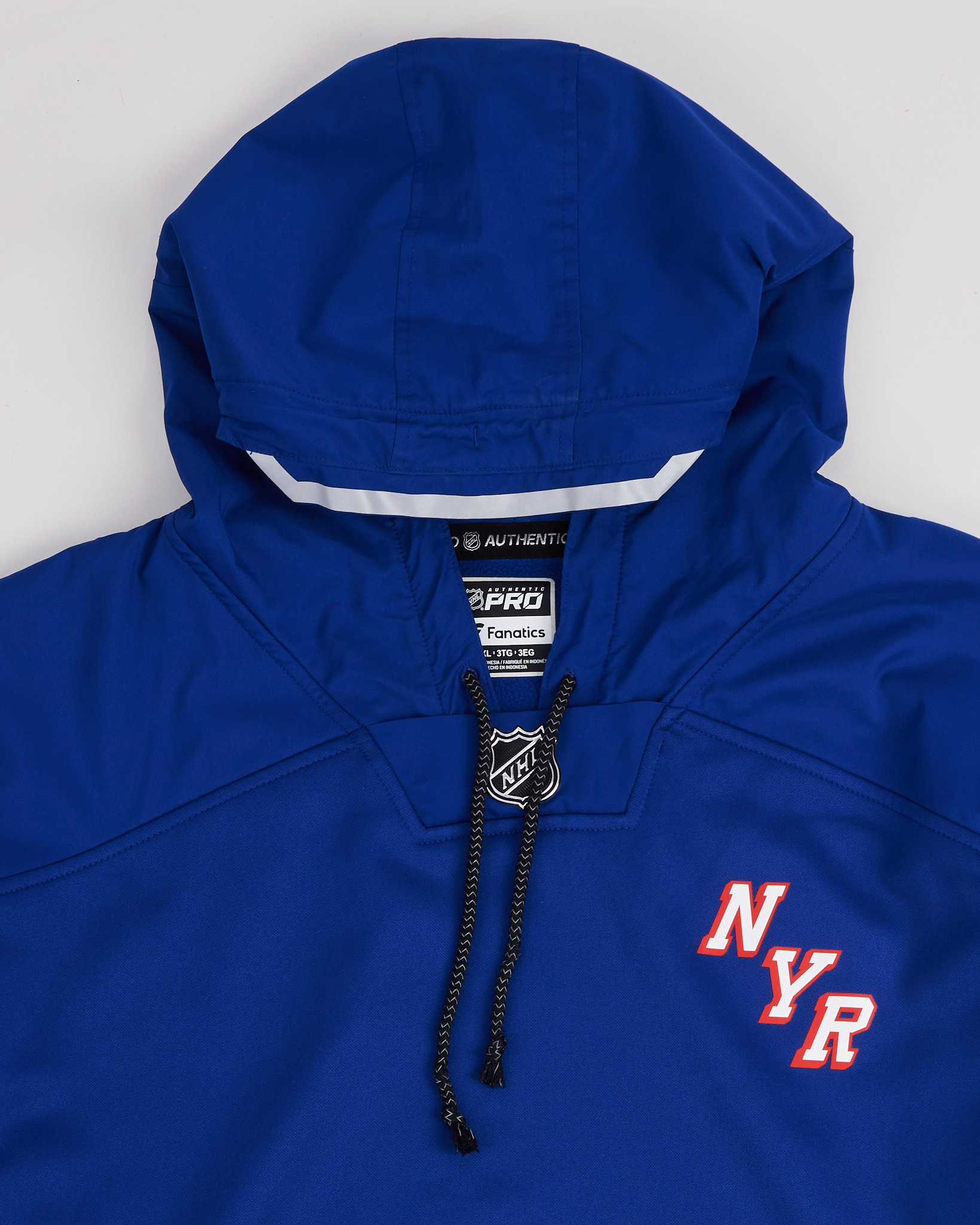 Анорак Authentic Pro с капюшоном. Свободная посадка, ткань плотная. На груди — контрастный логотип NYR и эмблема NHL, на рукаве — нашивка. Спереди вместительный карман с клапаном и дополнительной молнией, капюшон на шнурке.