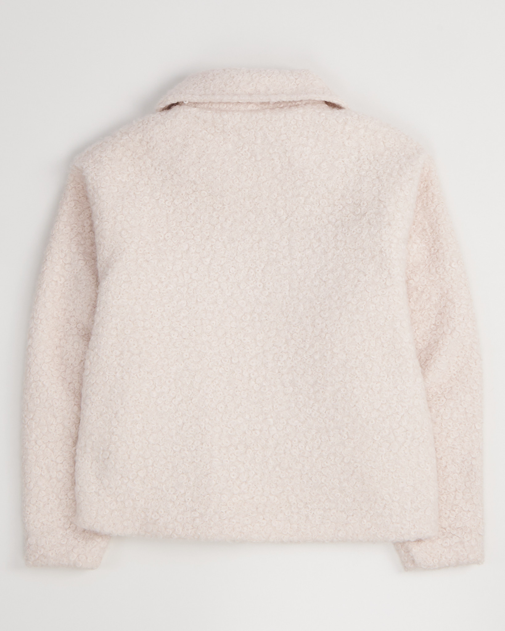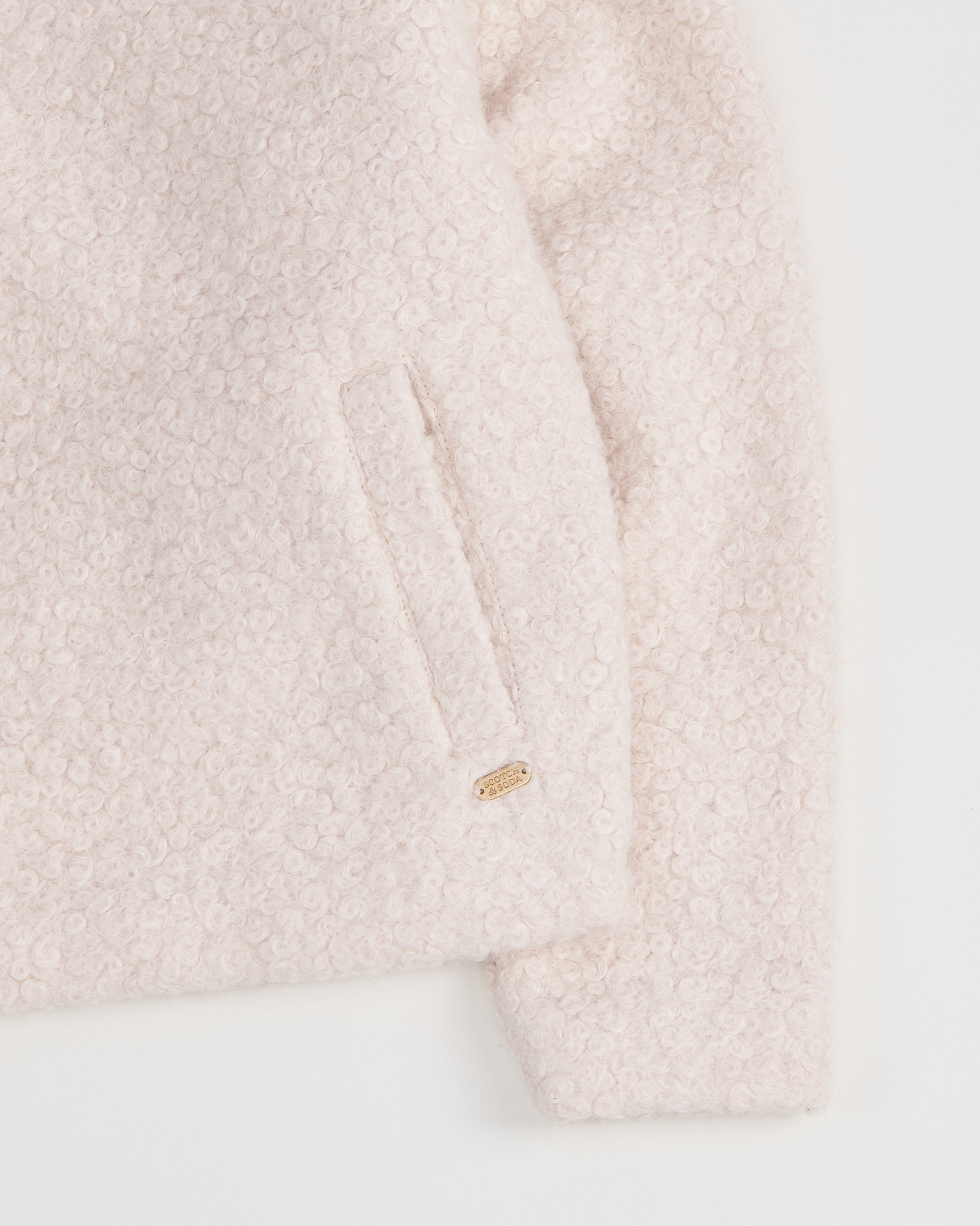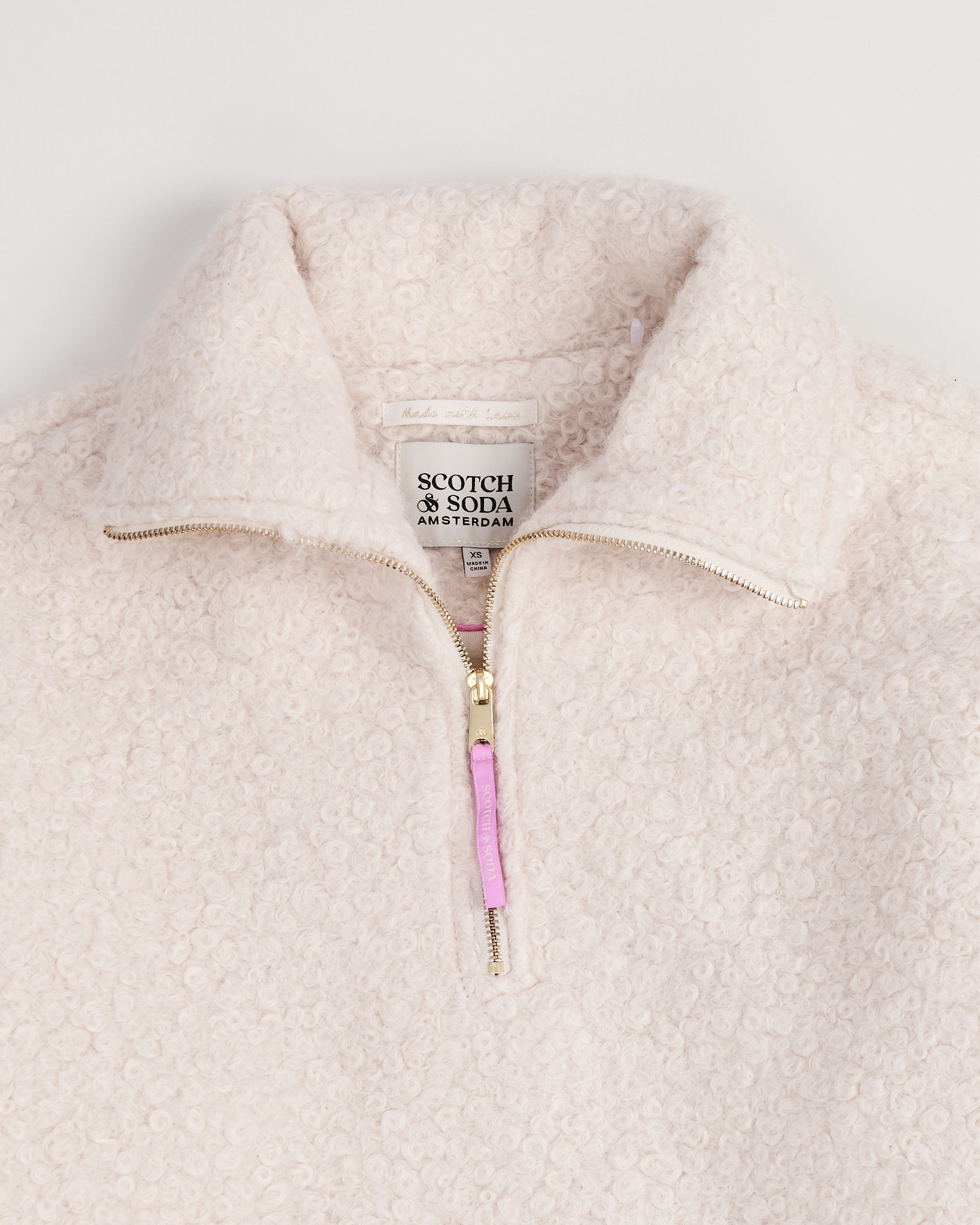 Анорак из плотного светло-кремового оттенка от бренда Scotch & Soda Amsterdam. Посадка свободная, силуэт прямой, линия плеч мягкая и расслабленная. Материал плотный, с текстурой под шерсть, на ощупь объёмный и тёплый. Высокий воротник на молнии, функциональные боковые карманы.