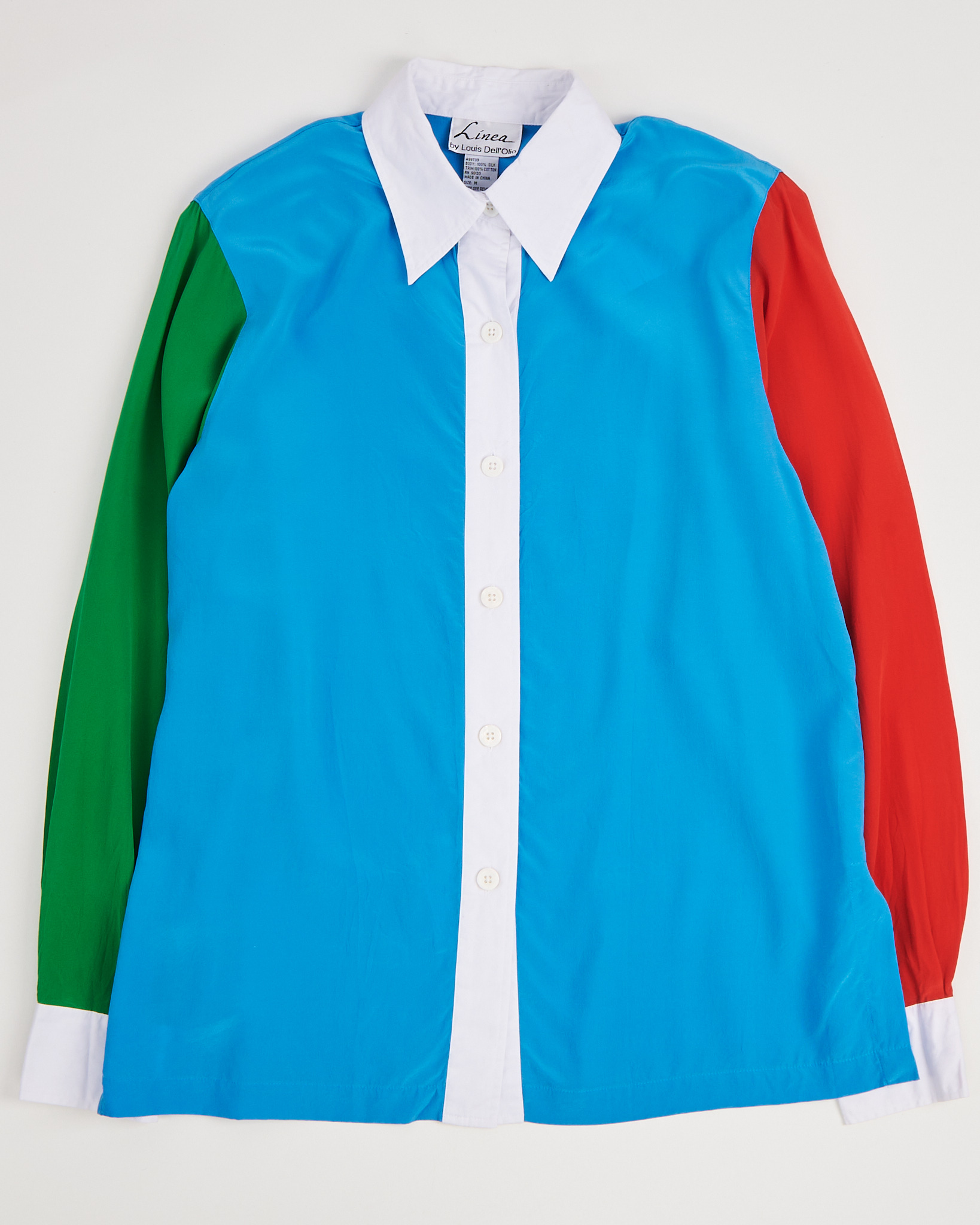 Блуза Linea by Lois Dell'Olio из шелка. Прямой крой, свободная посадка. Сочетание красного синего и зеленого придает блузе акцент.