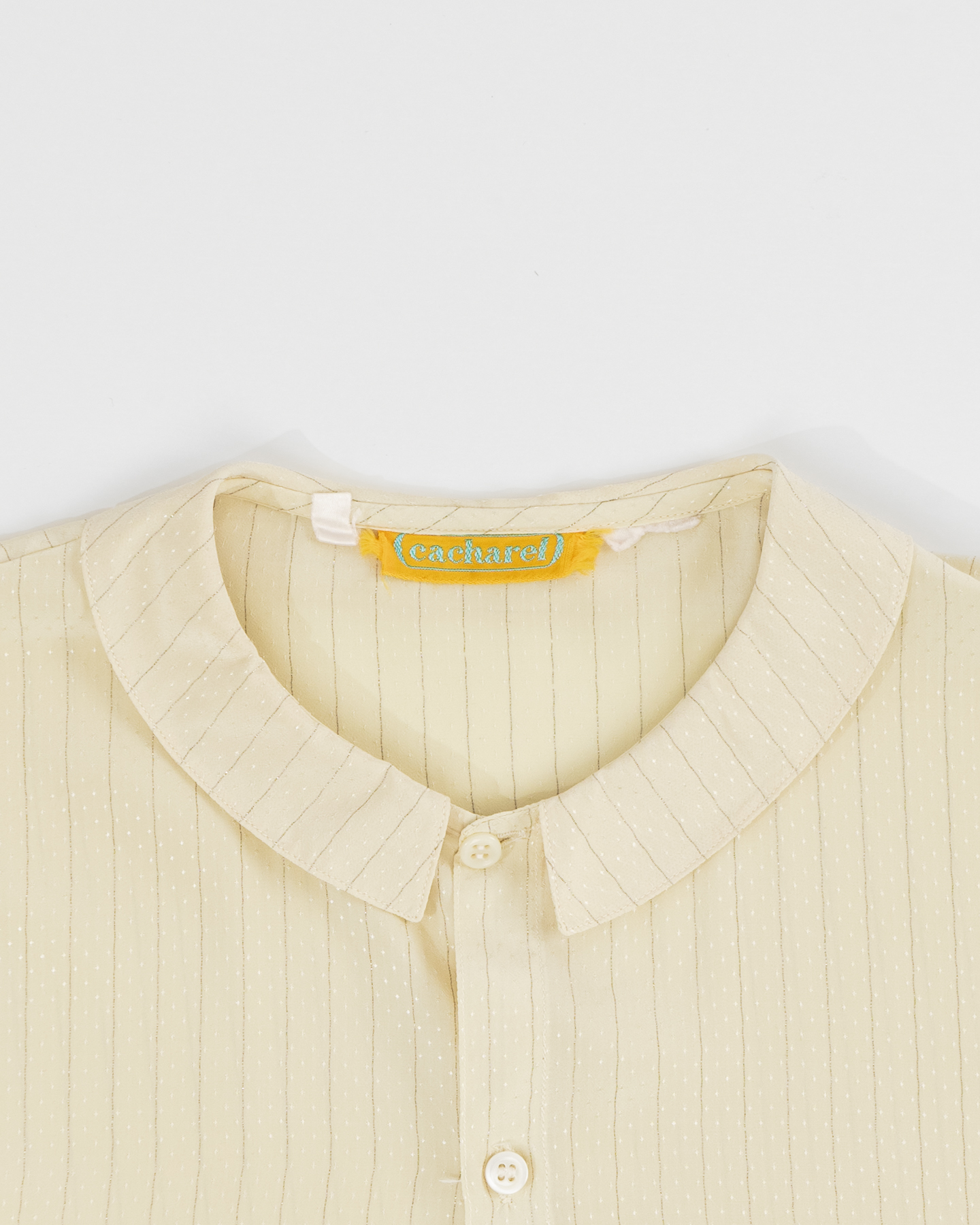 • Вертикальная микрополоска сочетается с едва заметным точечным узором, формируя благородную фактуру, характерную для редких винтажных коллекций Cacharel.