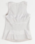 Материал приятен к телу и держит форму, создавая аккуратный силуэт. Декоративные геометрические вставки образуют выразительные диагонали и горизонтальные линии в оттенках холодного перламутра. Блузка подчёркивает линию плеч и аккуратно моделирует верхнюю часть фигуры. Идеальная посадка за счёт продуманной конструкции передней планки.
