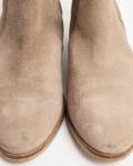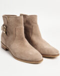 Ботильоны Michael Kors из мягкой натуральной замши тёплого бежевого оттенка. Устойчивый каблук, декоративный ремешок с металлической пряжкой, фирменный логотип бренда сзади.