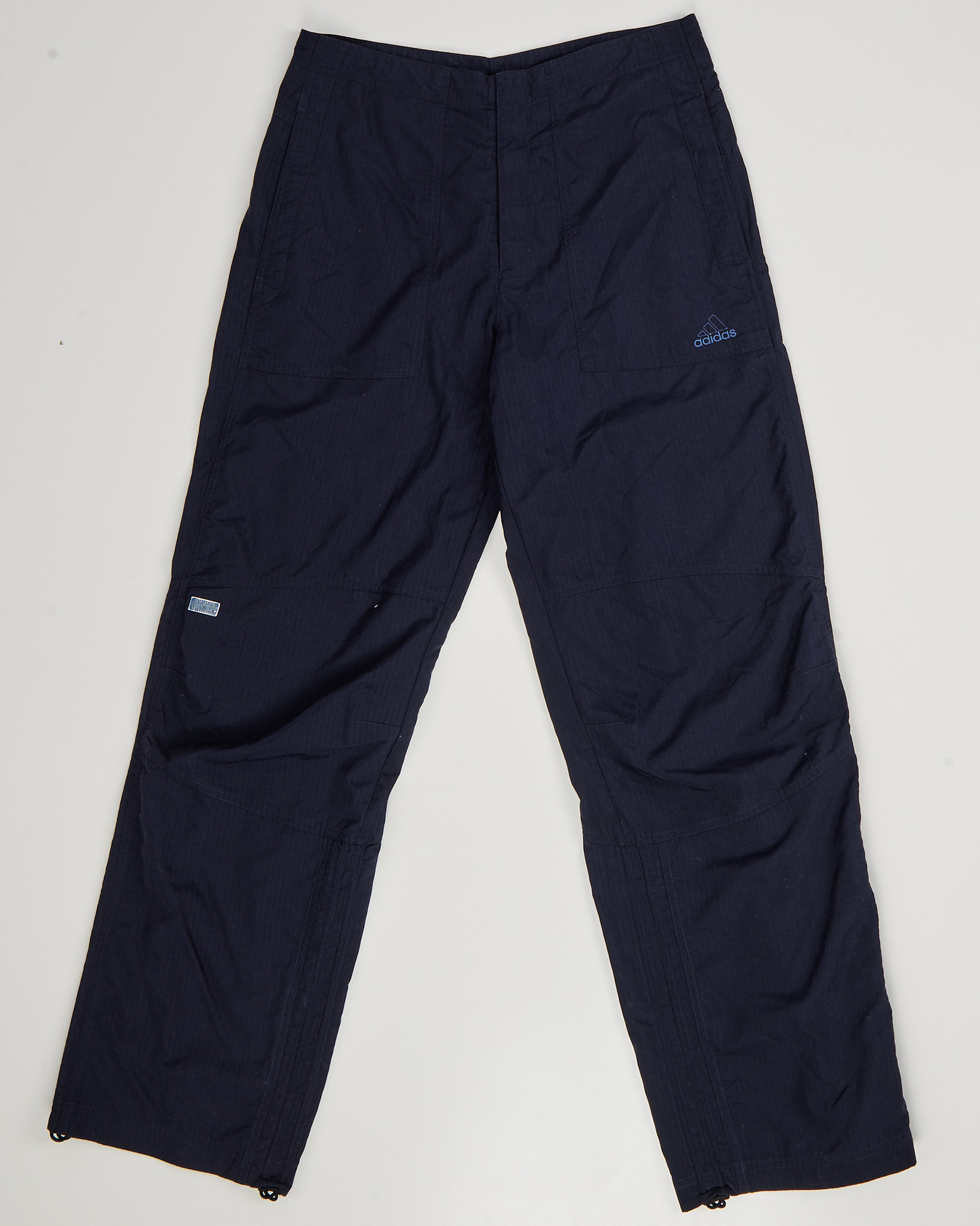 Трековые брюки adidas. Средняя посадка, прямой силуэт с возможностью регулировки по низу за счет утяжек. Боковые карманы встроены в швы, линия кроя с анатомическими вставками в области колен. На бедре вышит логотип.