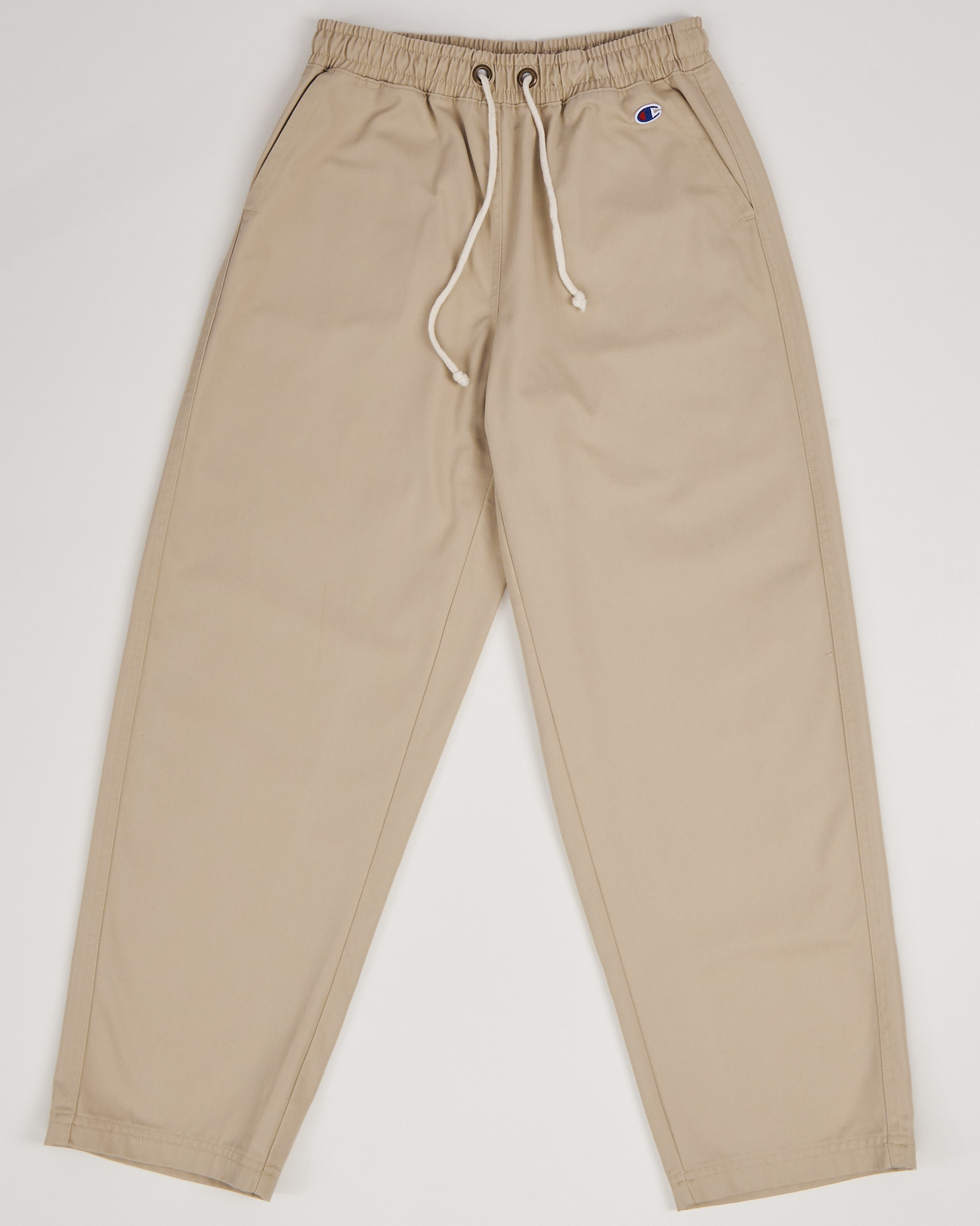 Брюки Champion выполнены из ткани с составом 65% полиэстер и 35% хлопок. С аккуратно оформленными карманами с боку. Крой свободный с эластичной талией, дополненной шнурками для регулировки посадки. На поясе находится логотип бренда.