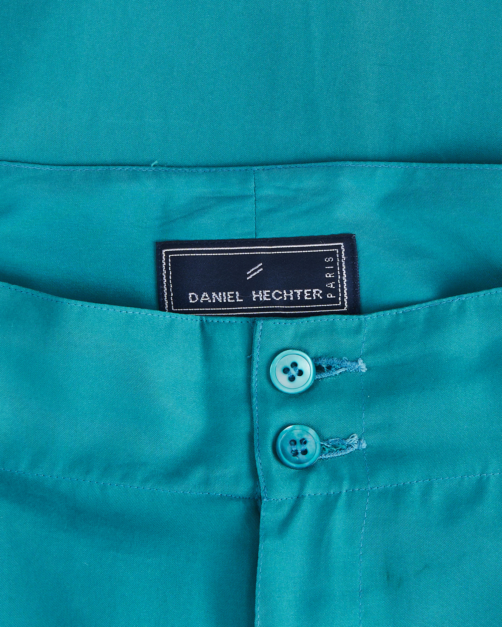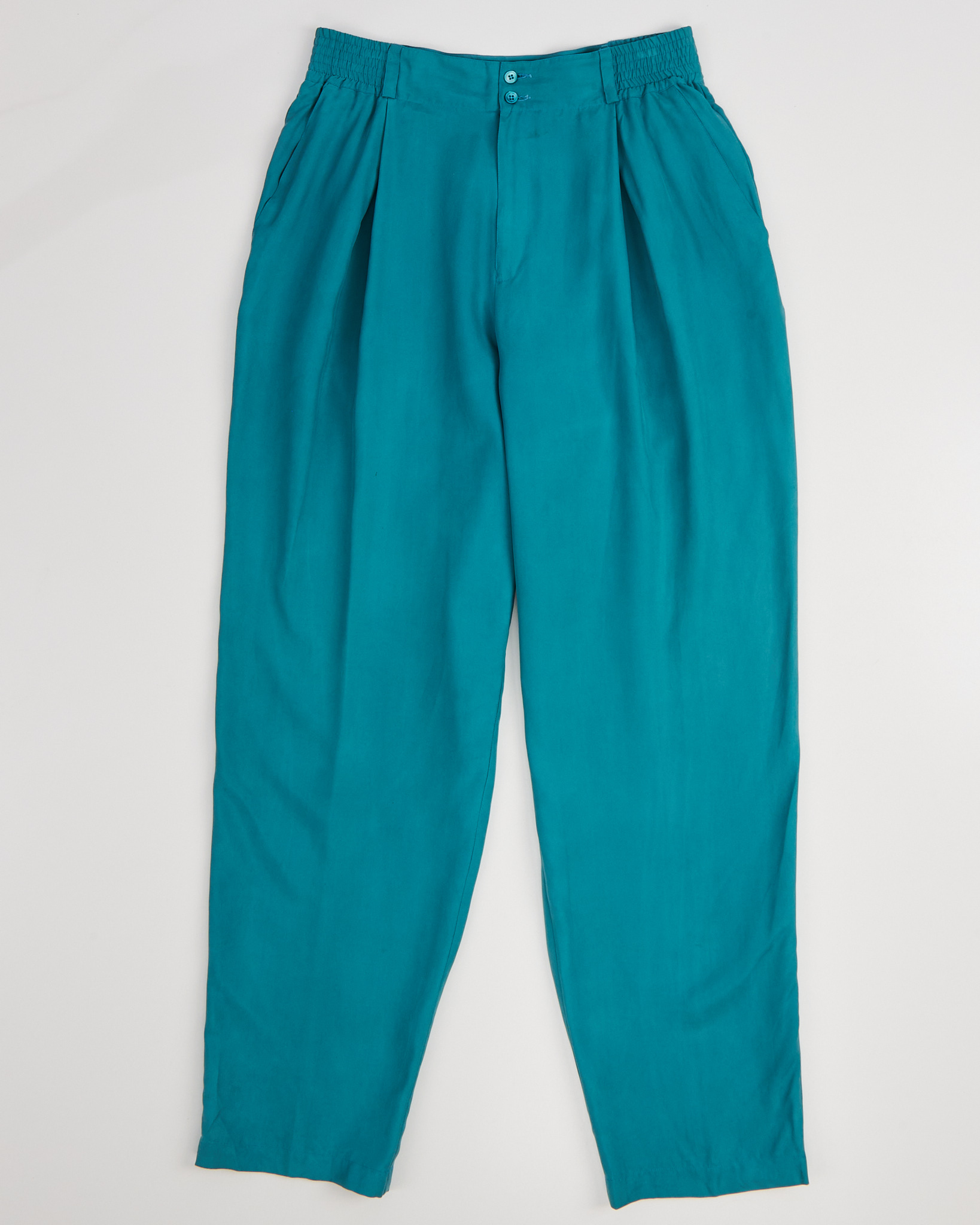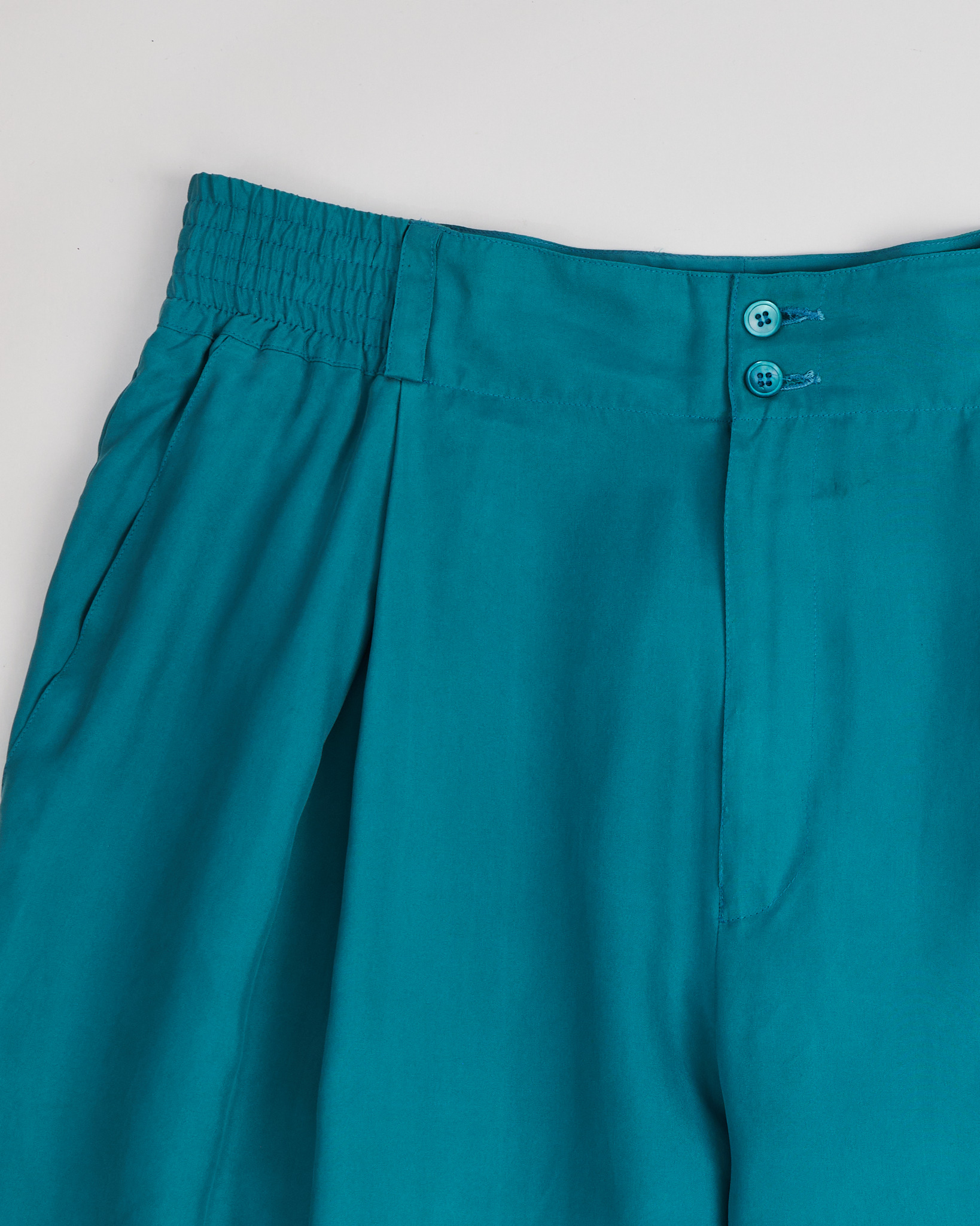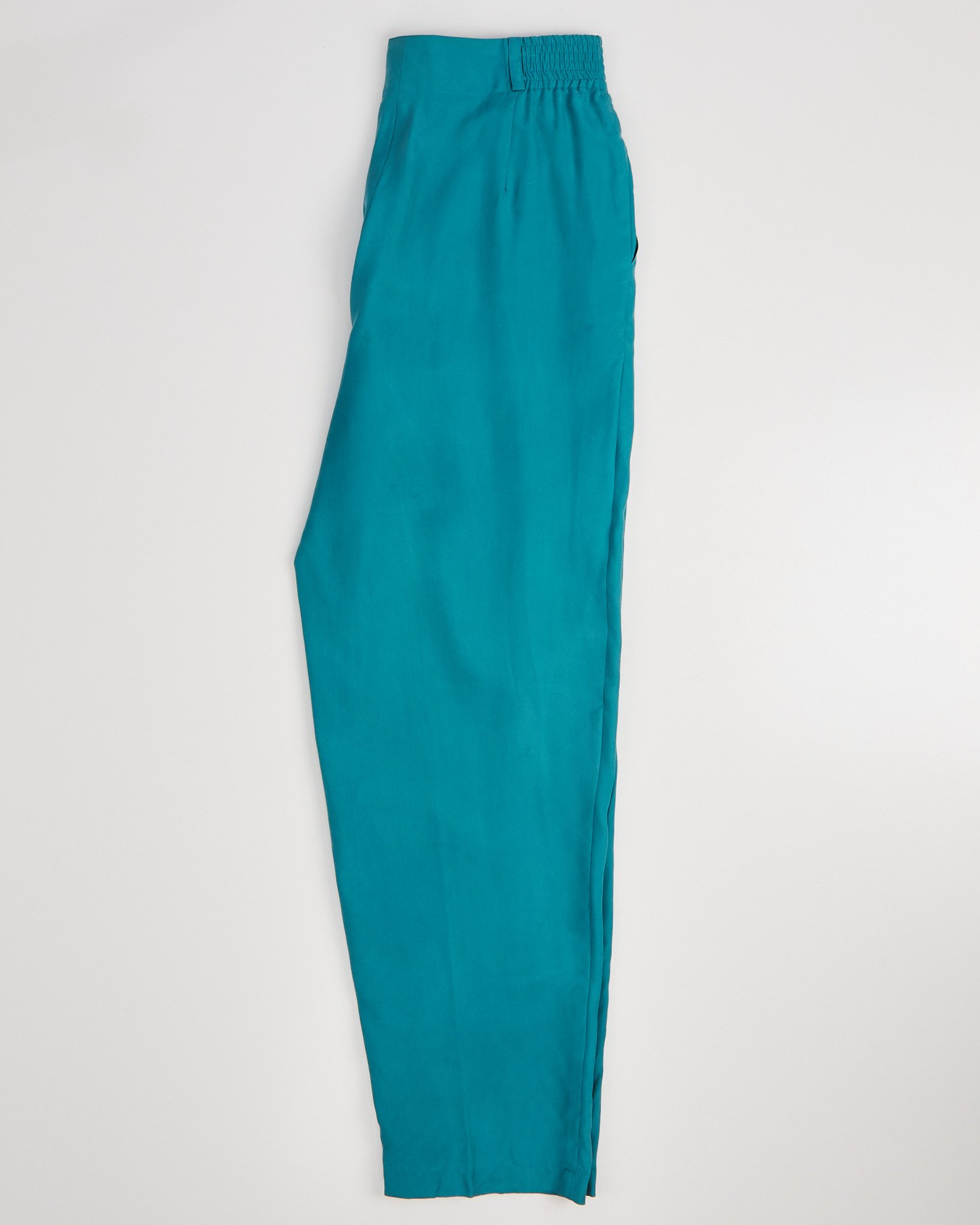 Брюки Daniel Hechter Paris из шелка свободного кроя в насыщенном бирюзовом оттенке. Высокая посадка на талии за счет эластичной вставки. Ткань гладкая, легкая, по бокам функциональные карманы, удобная застежка на молнию и пуговицы.