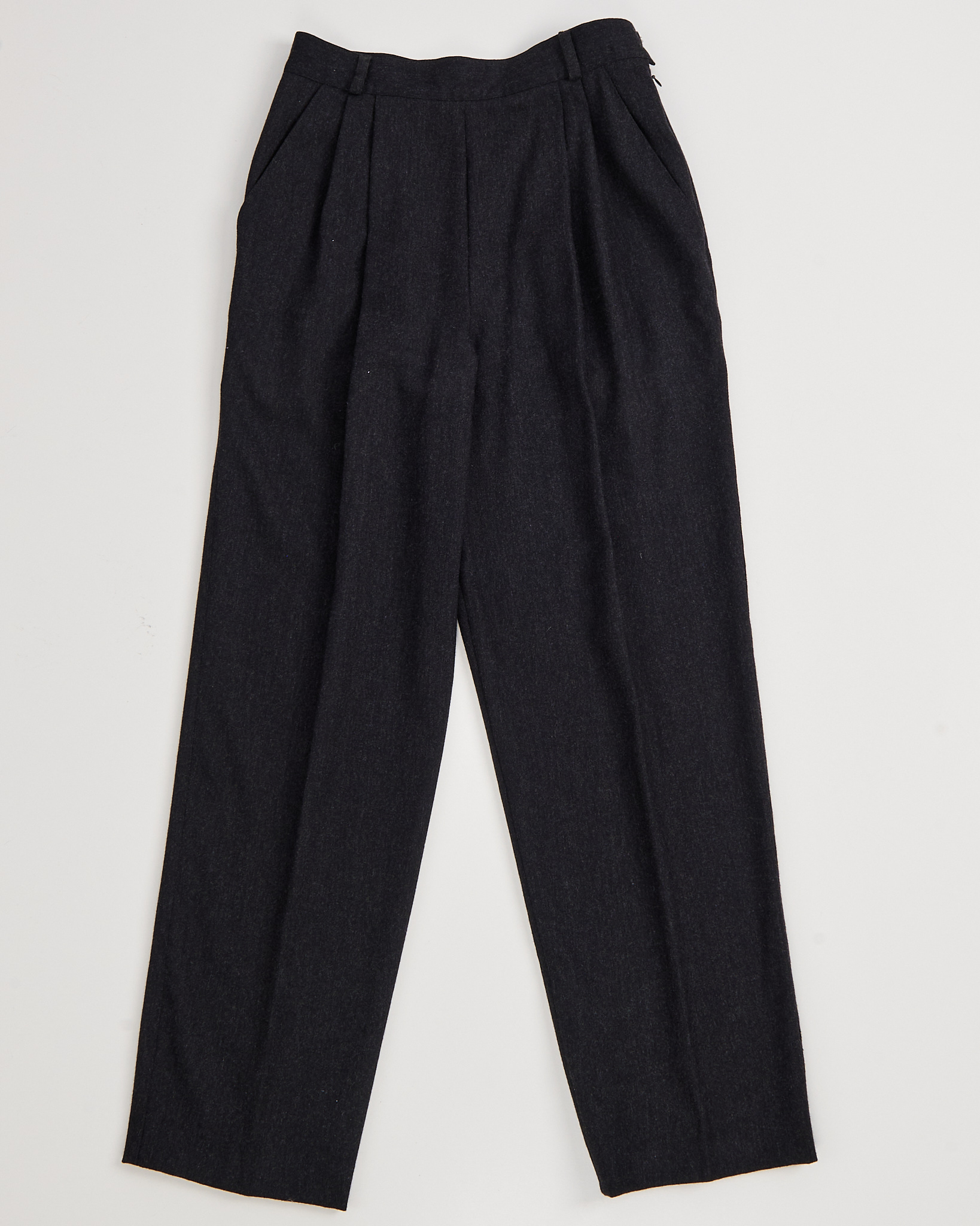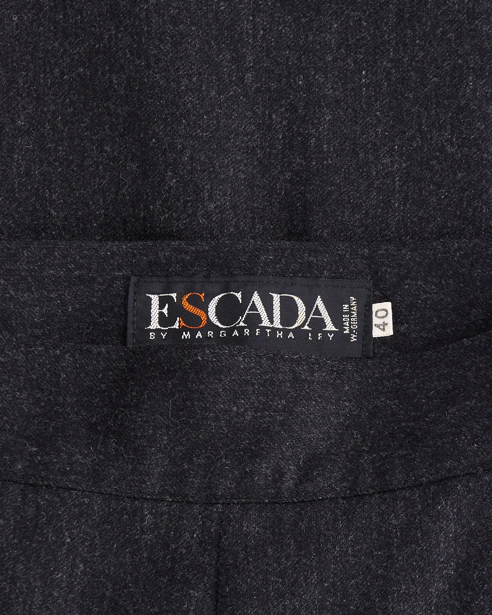 Брюки Escada из шерсти, отмечены знаком woolmark. Посадка высокая, линия талии подчёркнута. Функциональные карманы.