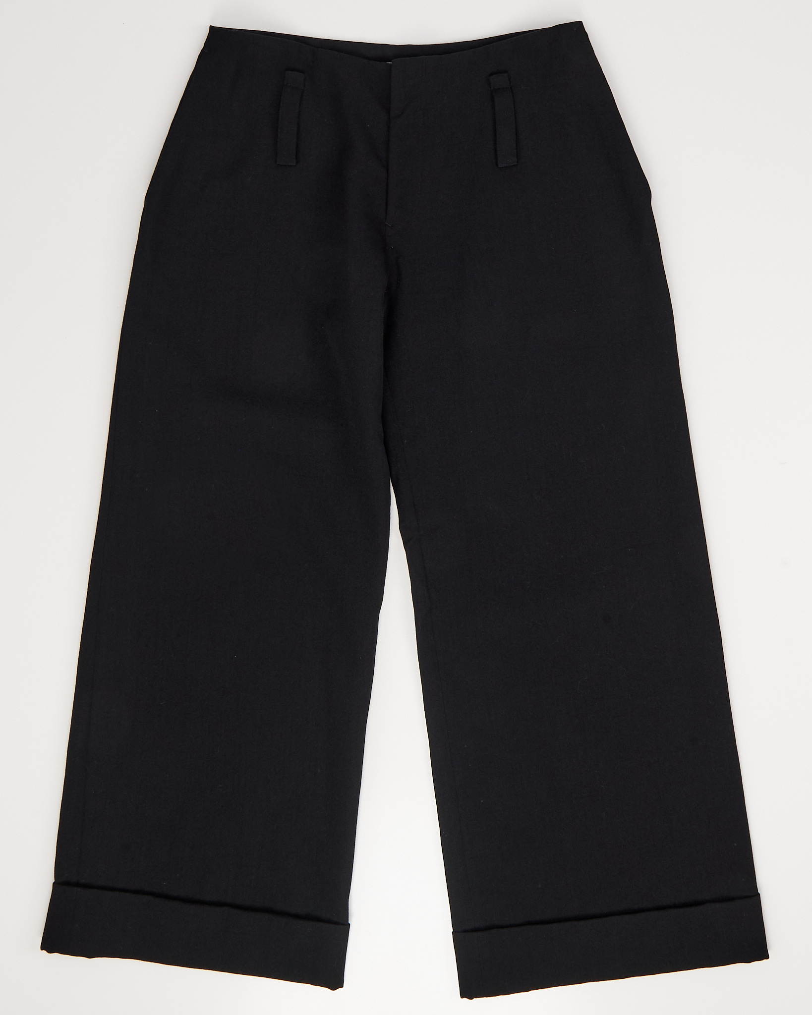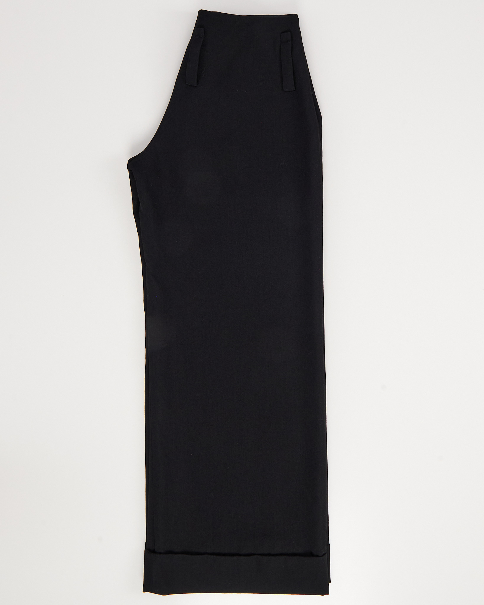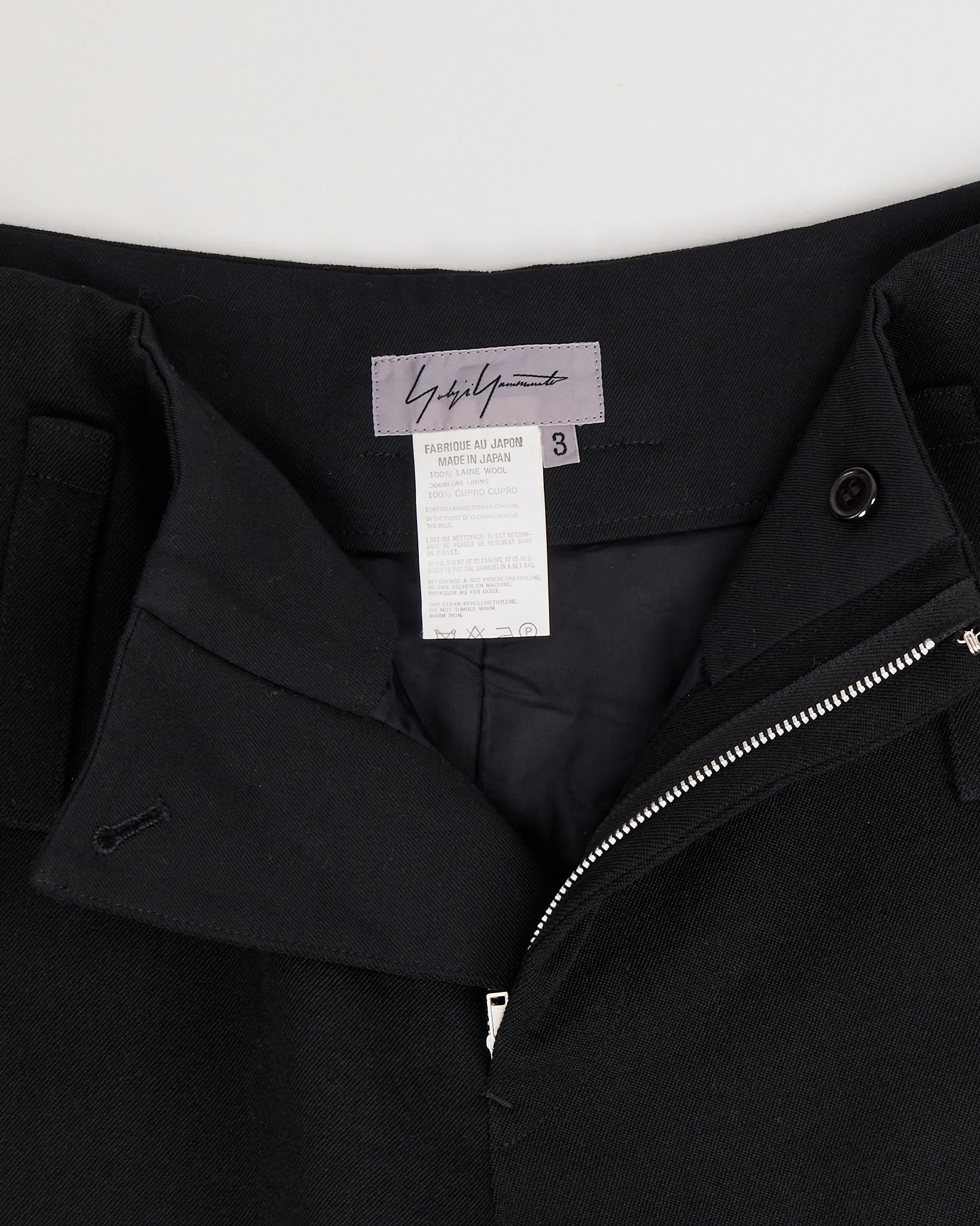 Брюки из шерсти культового дизайнерского бренда Yoji Yamamoto. Сделаны в Японии. Посадка немного занижена, брючины широкие от бедра, внизу подвороты. По бирке размер 3