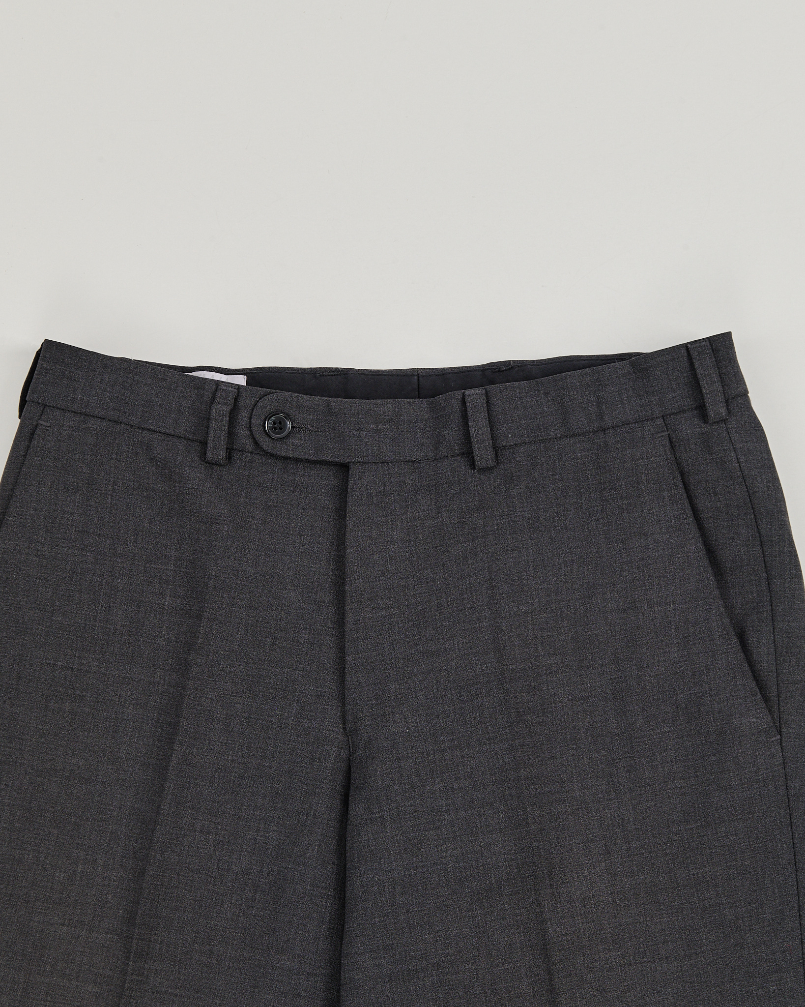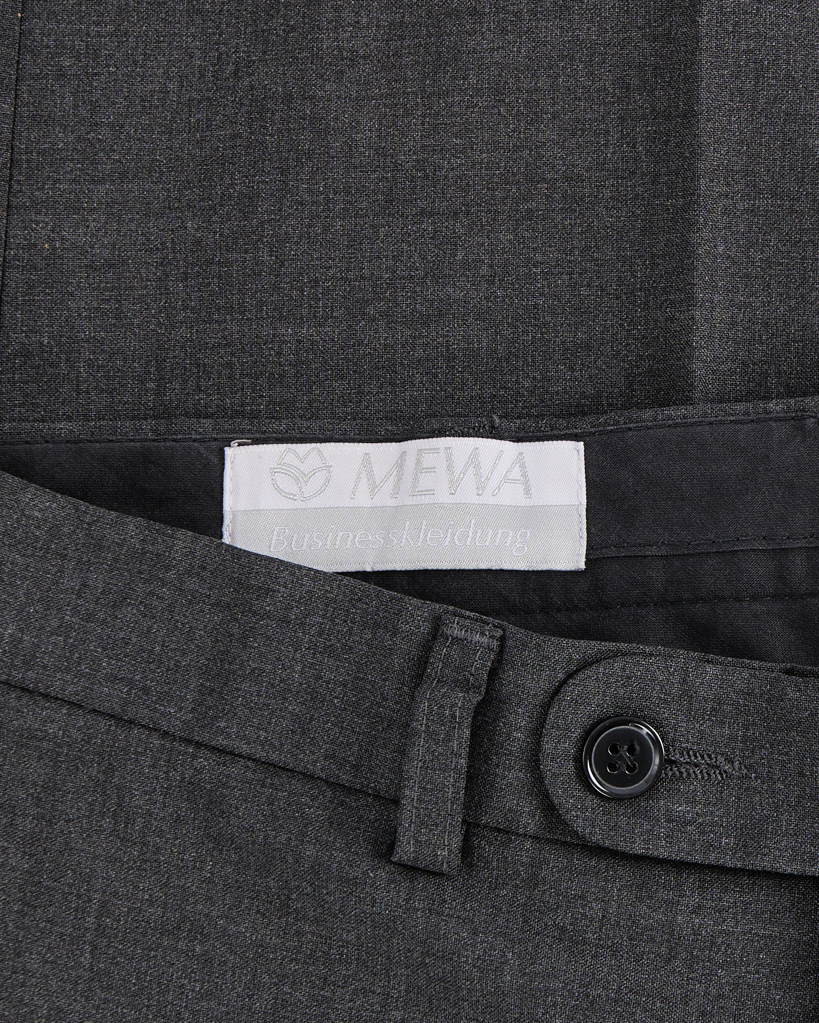 Брюки MEWA в сдержанном сером оттенке. Выполнены из плотной костюмной ткани из 43% шерсти. Посадка средняя, линия талии аккуратная, силуэт прямой. Чёткие стрелки, функциональные карманы по бокам.