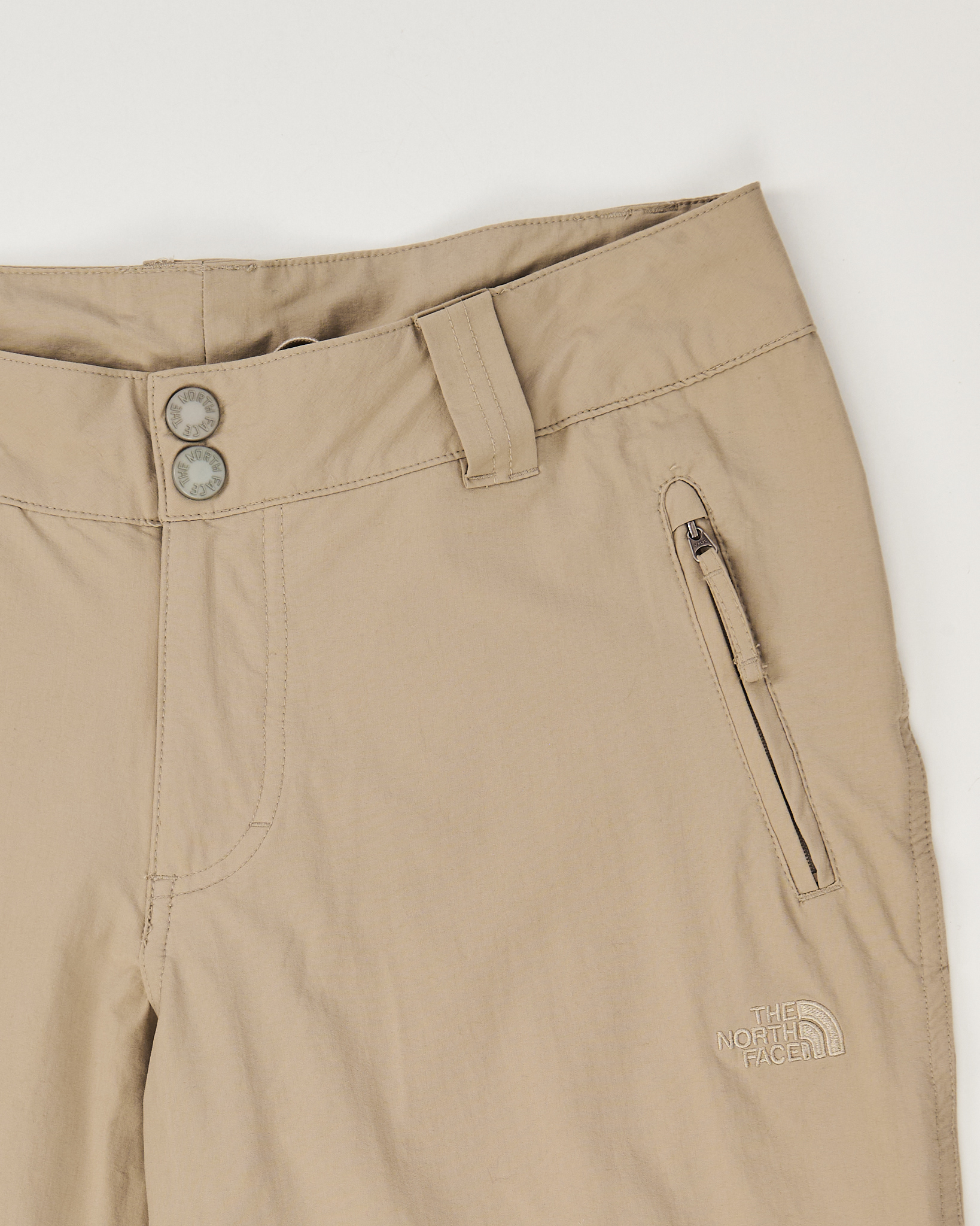 Трансформируемые брюки The North Face, из лёгкого прочного материала. Средняя посадка, прямой силуэт с небольшим расширением к низу. Модель трансформируется в шорты за счёт молний над коленями, боковые карманы на скрытых молниях, сзади карман с клапаном. Пояс с двойной застёжкой на кнопках, на боковой части — функциональное кольцо.