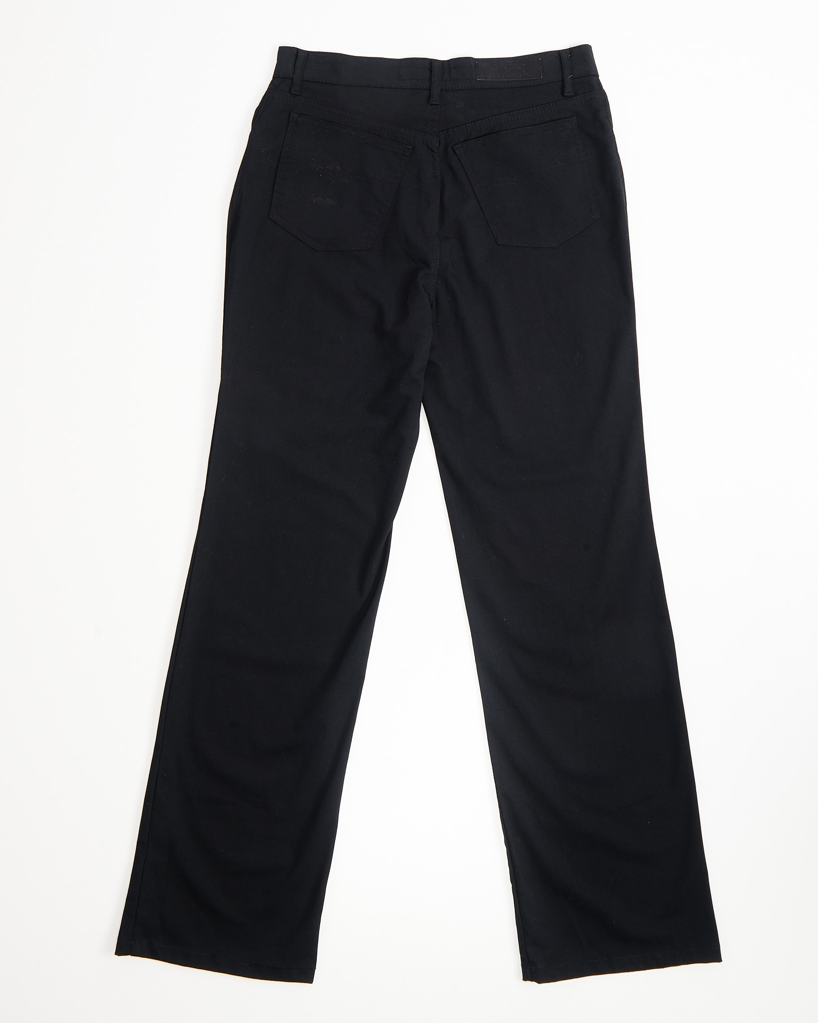 Плотные брюки из вискозы с добавлением эластана. Посадка прямая, ближе к классической, линия талии держит форму и выглядит собранно. Материал гладкий на ощупь,  комфортный в носке.