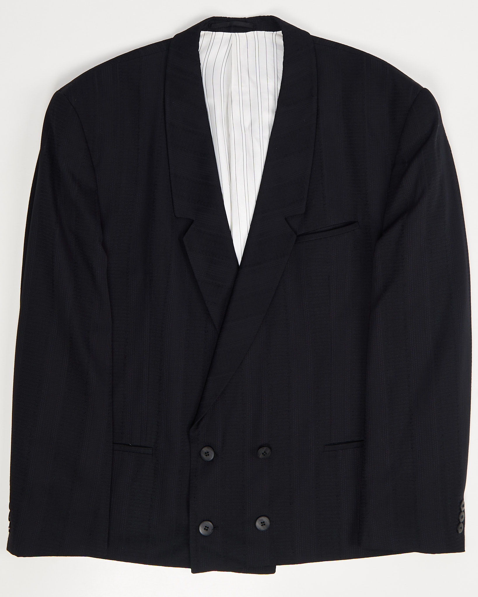 Стильный укороченный двубортный пиджак в полоску. Произведен предположительно в 1990 году.