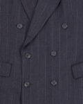 Двубортный пиджак в тонкую полоску. Пиджак от выполнен из 100% шерсти, отмечен знаком woolmark. Посадка прямая, с чёткой линией плеч. Двубортная конструкция и классические лацканы.