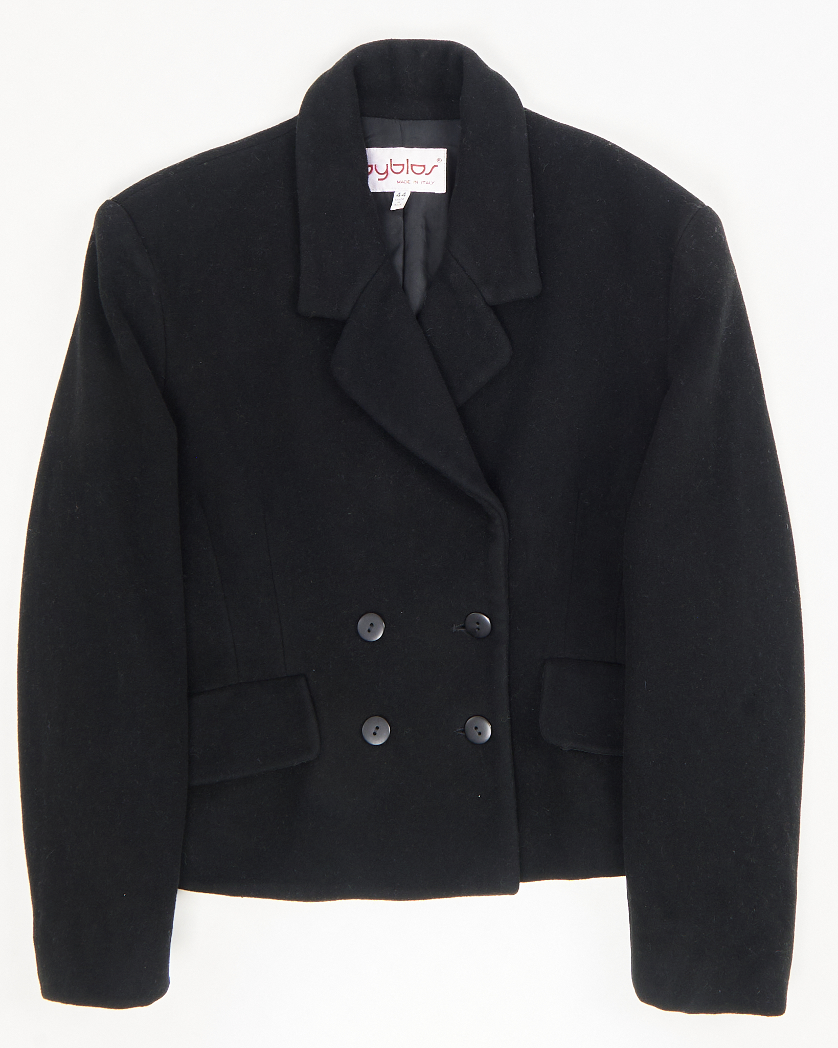 Двубортный жакет Byblos из шерсти. Жакет из плотной шерсти с кашемиром. Приталенный силуэт, двубортная застёжка и широкий воротник, функциональные карманы.