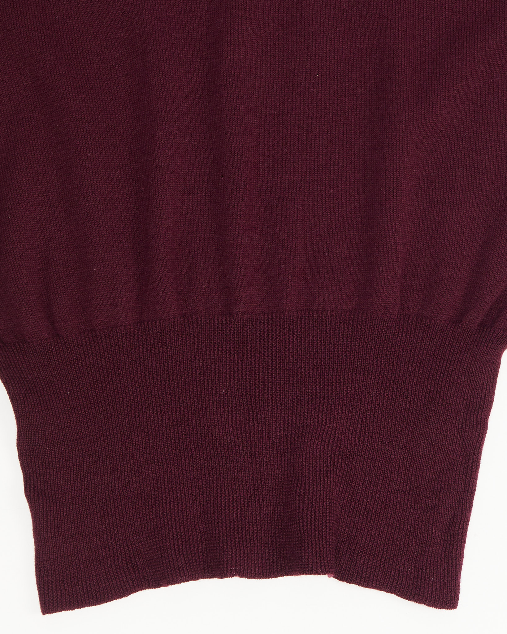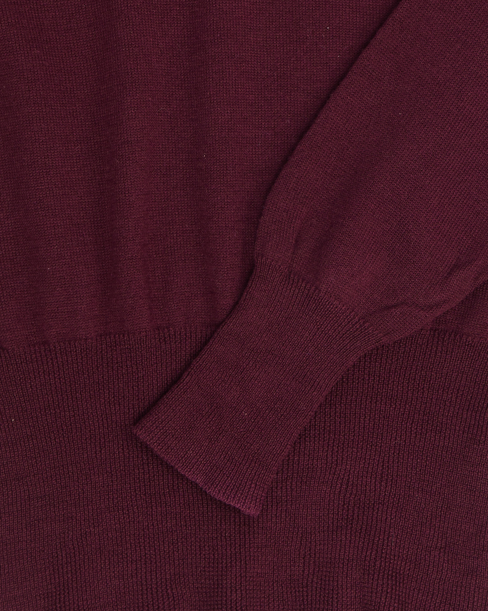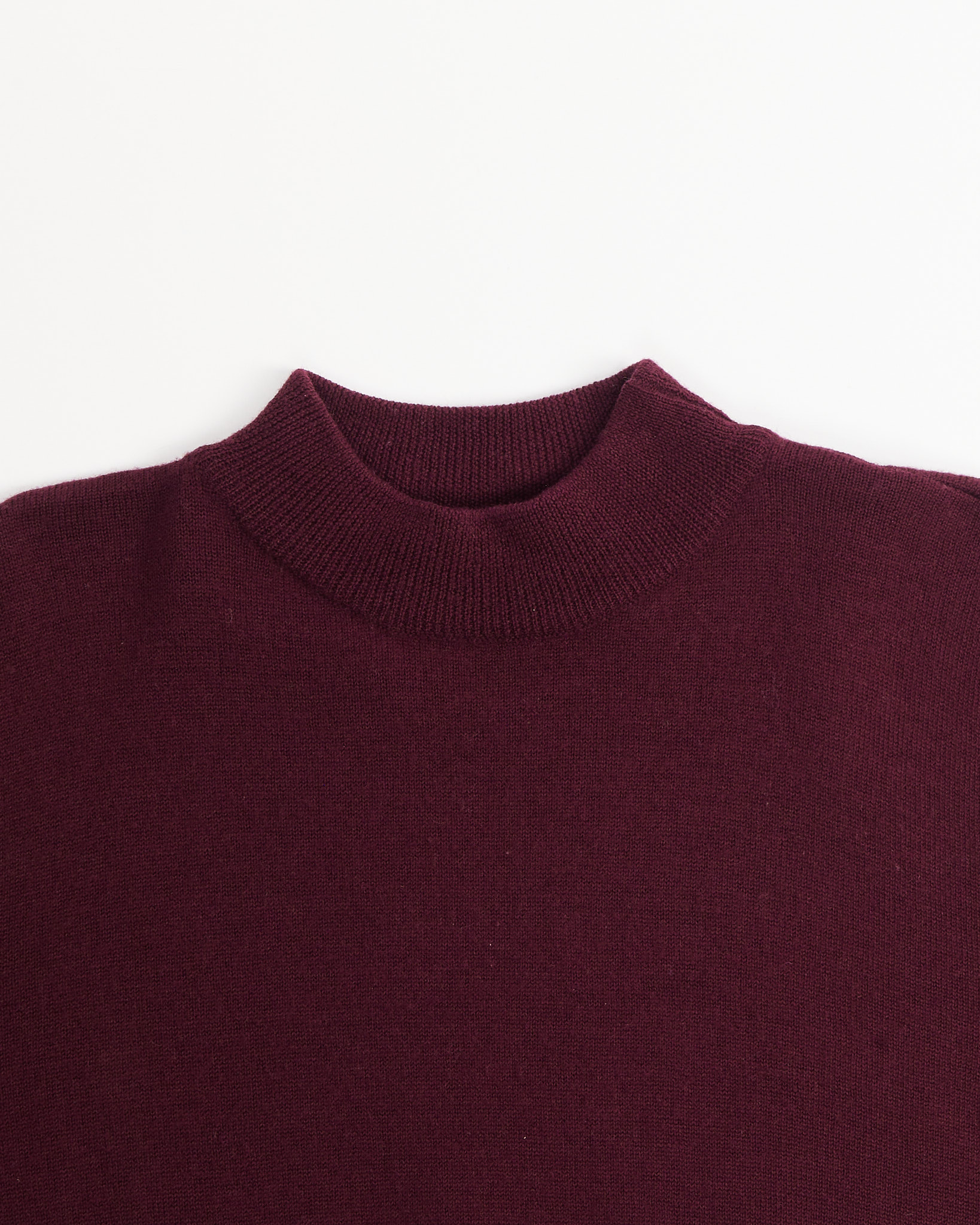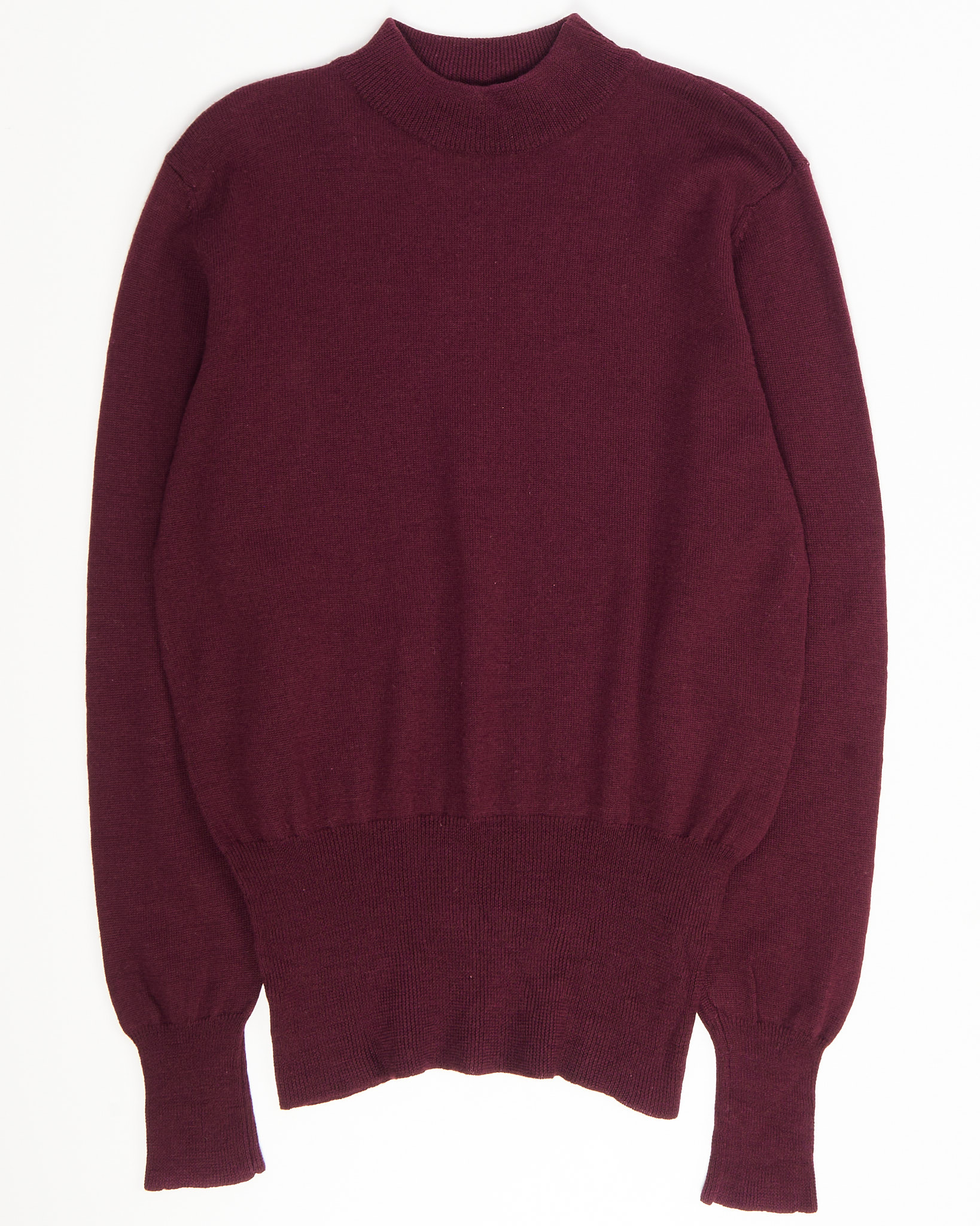 Джемпер из мягкой шерсти в винном оттенке, с широким плотным манжетом, который формирует линию низа. Прямой силуэт создаёт аккуратную посадку. Высокий ворот добавляет изделию собранность и делает образ более структурным.