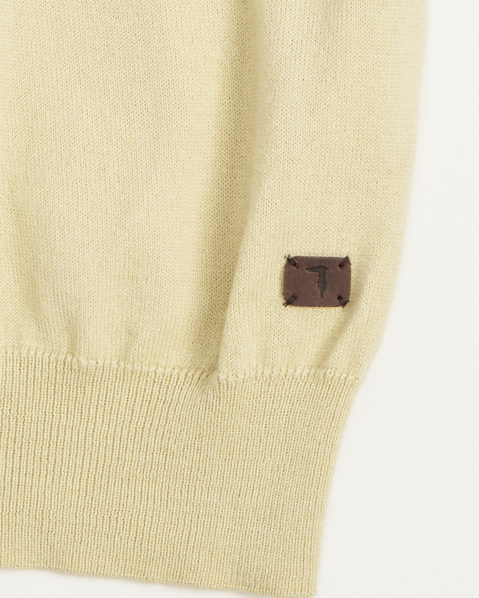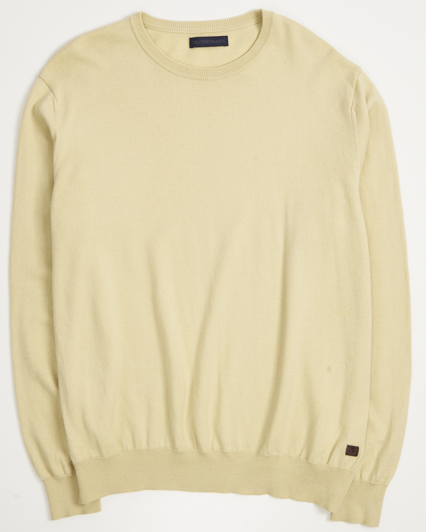 Джемпер Trussardi из 50% мягкой шерсти. Свободная посадка оверсайз, небольшая кожаная нашивка с логотипом внизу изделия.