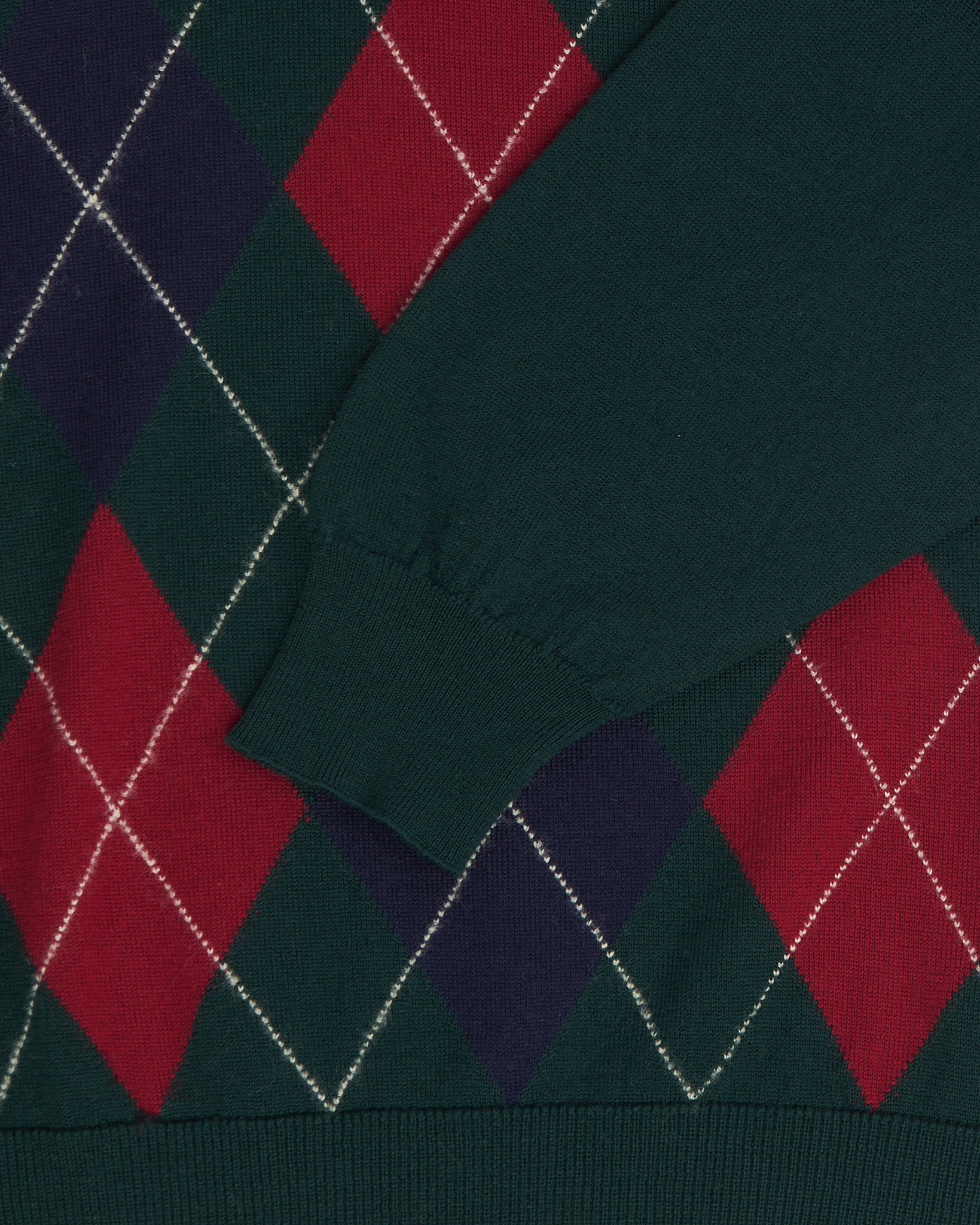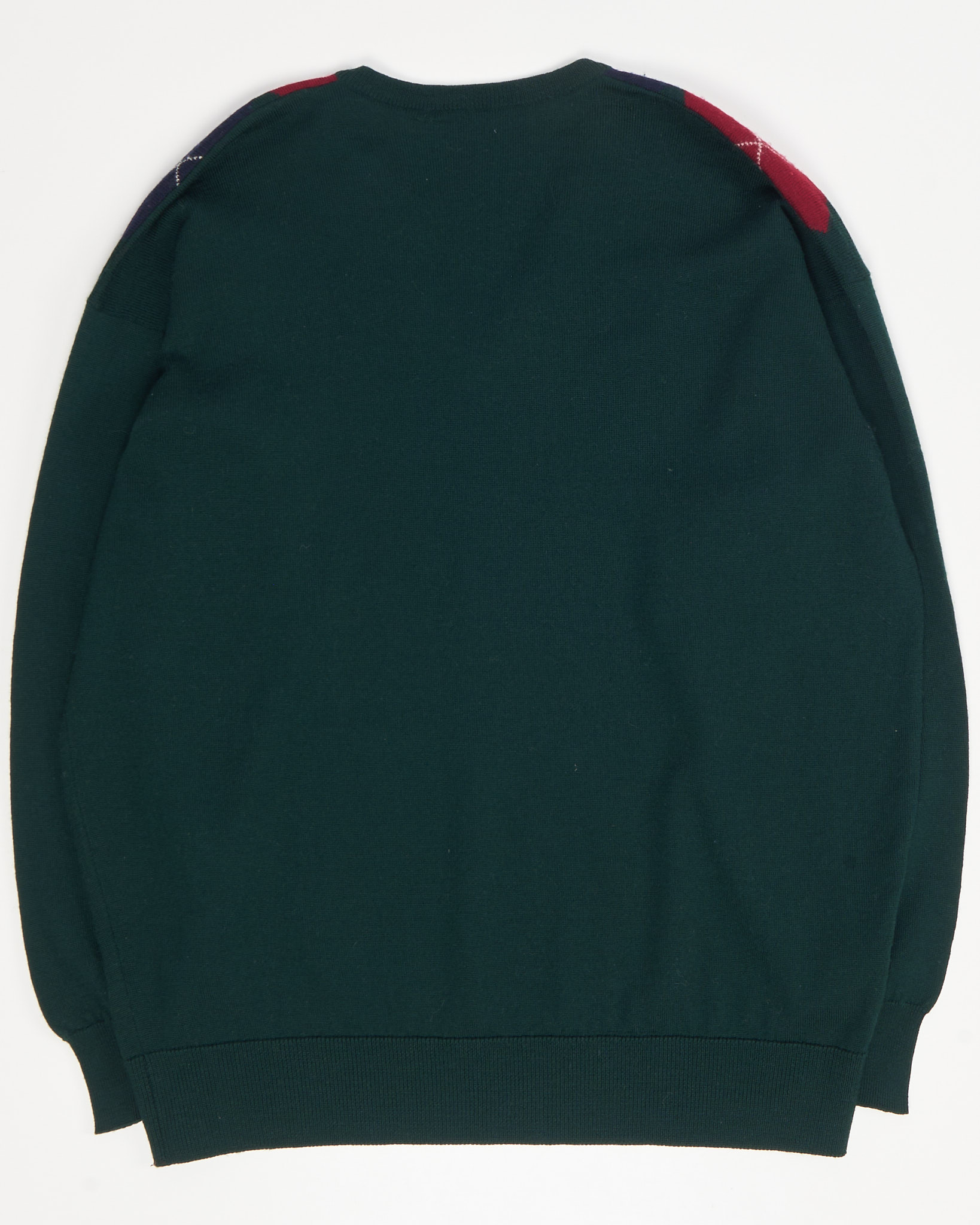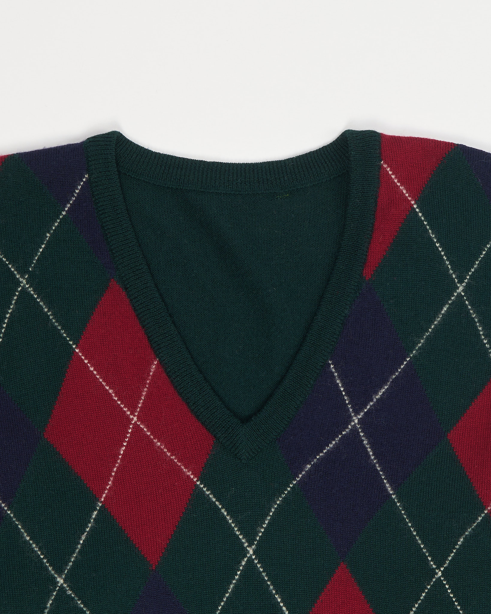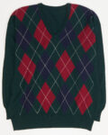 Джемпер выполнен из натуральной шетландской шерсти. Аргайл-рисунок в глубоких оттенках, посадка свободная, с комфортной линией плеч и аккуратной резинкой по низу. V-образный вырез формирует чистый силуэт и визуально вытягивает линию шеи. Изделие создано в Шотландии.