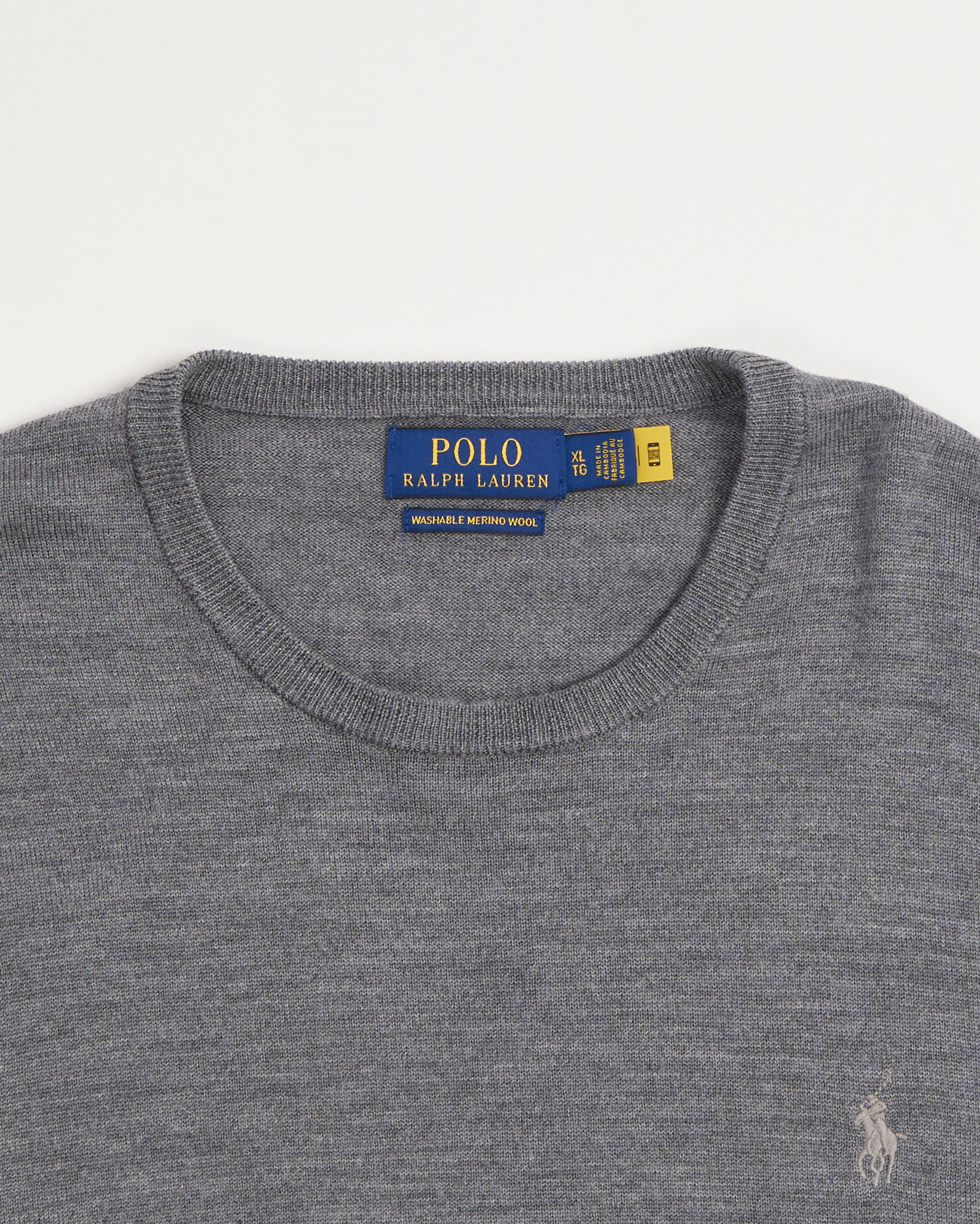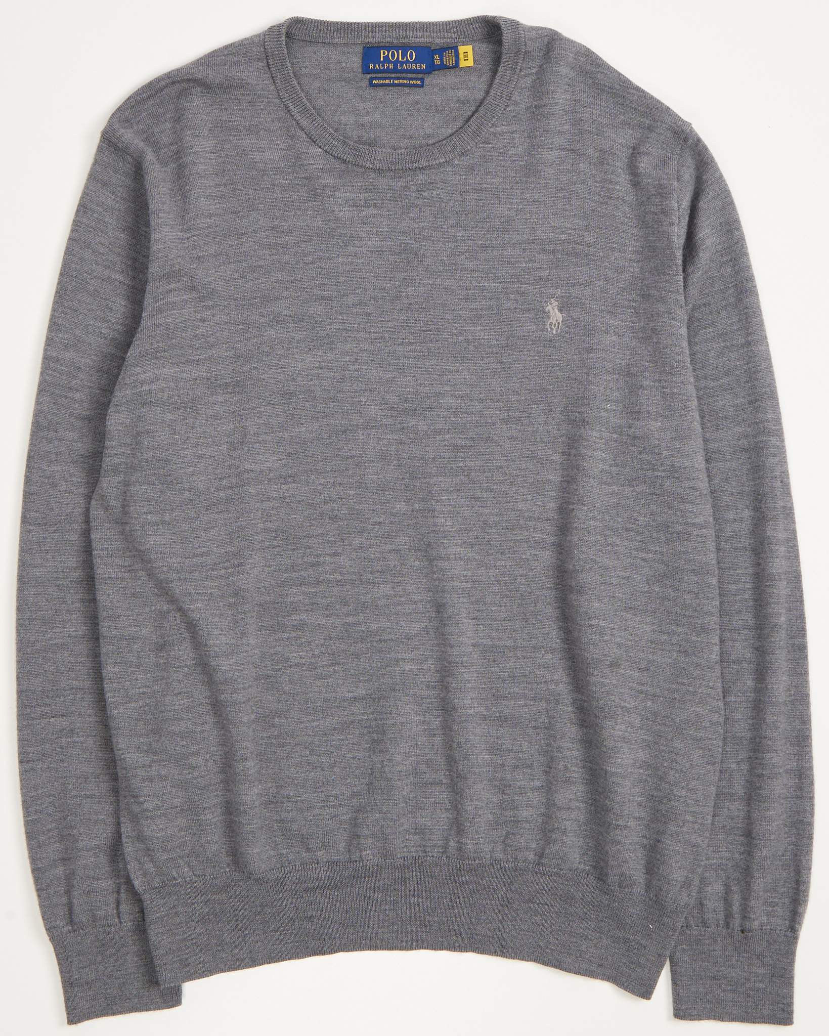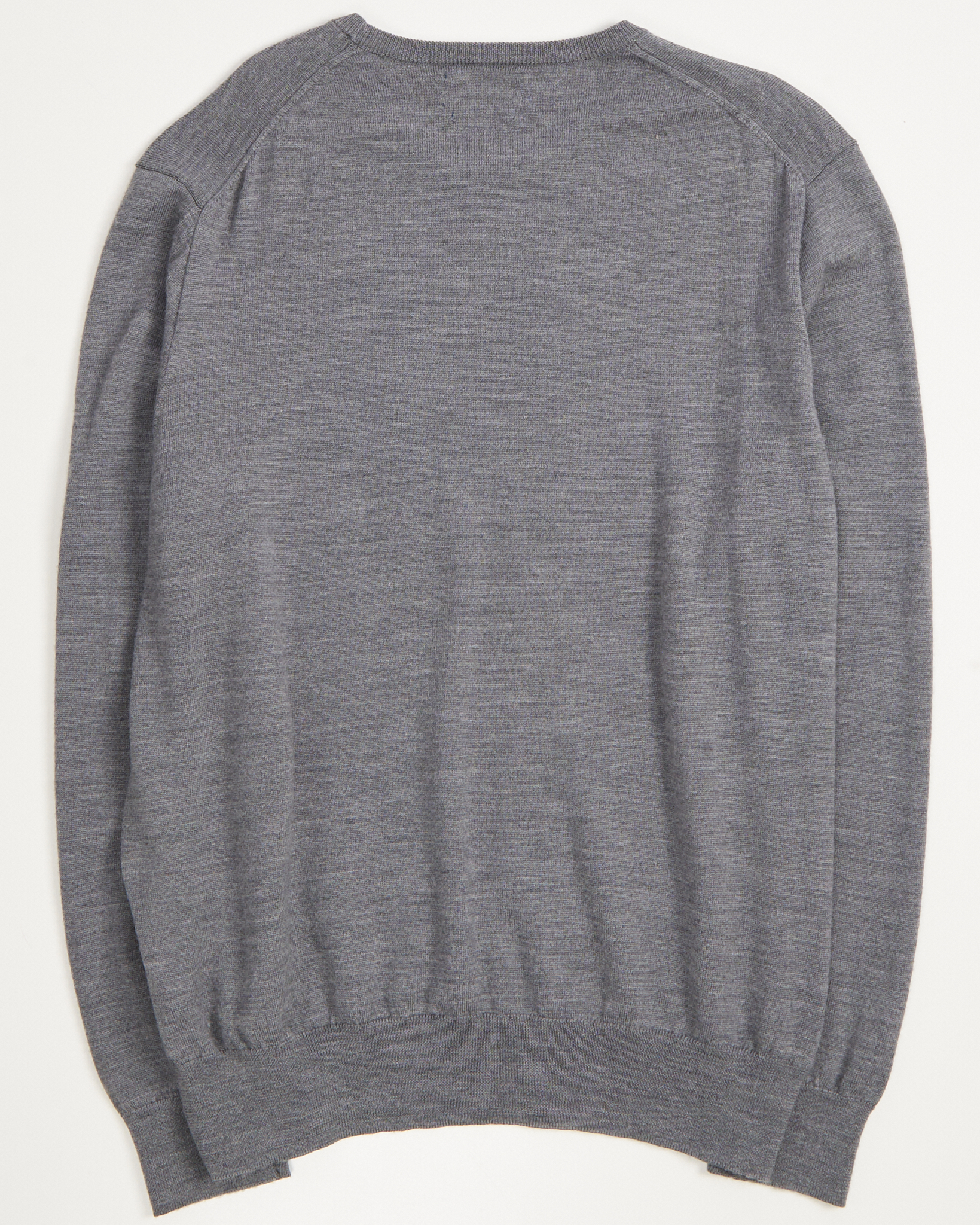 Джемпер выполнен в сером оттенке с гладкой, ровной фактурой. Прямой силуэт с круглой горловиной.
