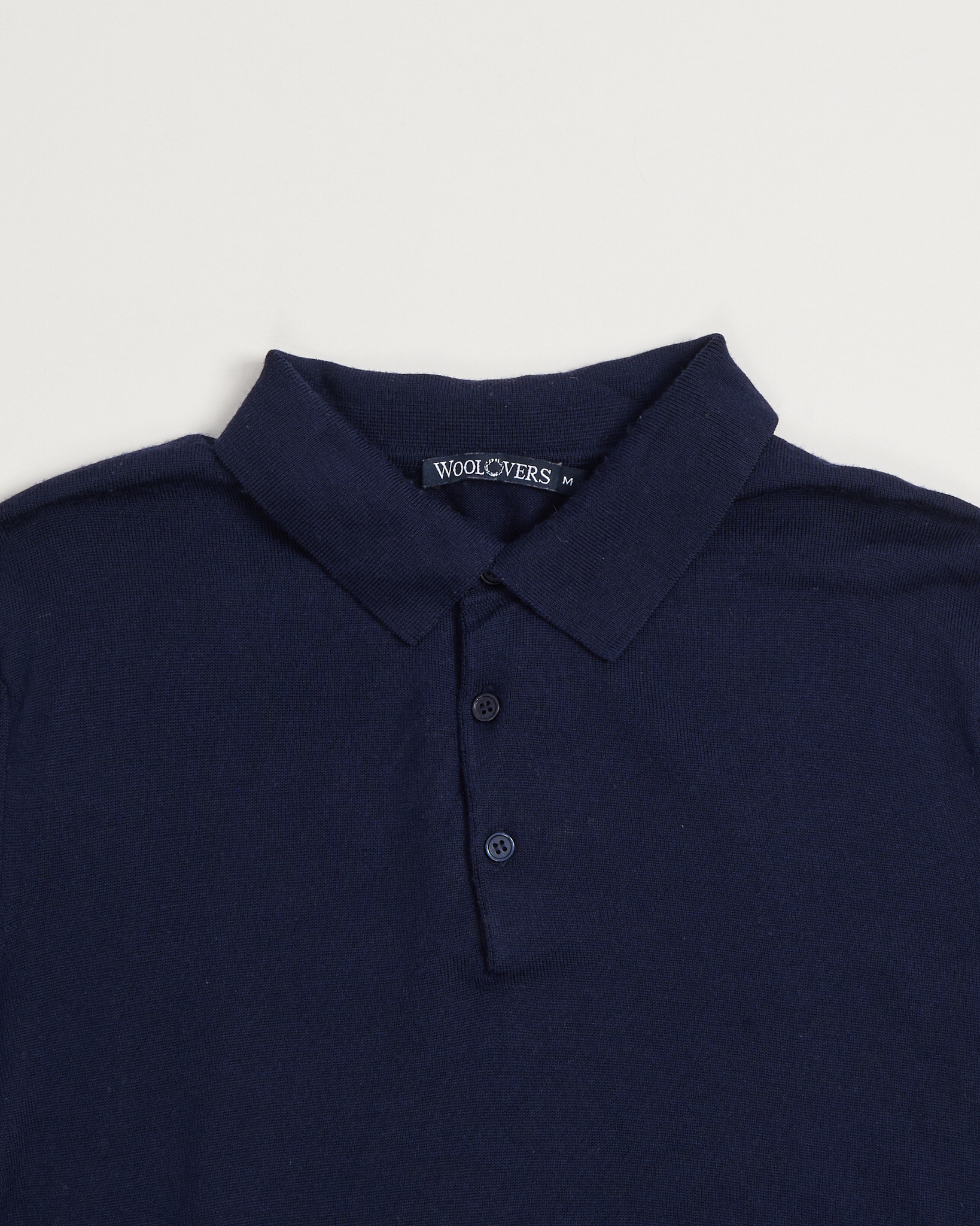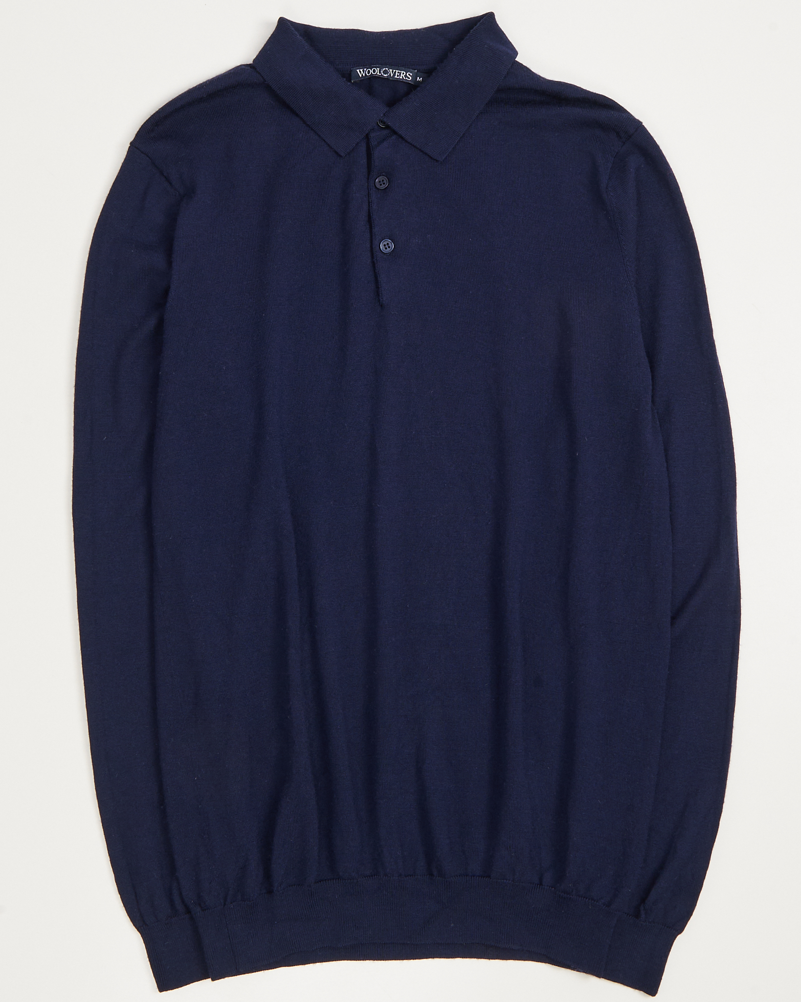 Джемпер-поло из 100% шерсти темно-синего оттенка. Прямой силуэт. Классический воротник и короткая планка на пуговицах
