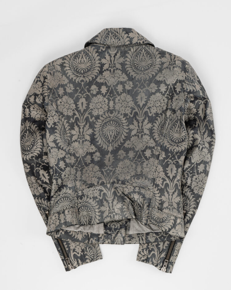- Модель выполнена из плотного 100% хлопкового денима с эффектом acid wash (варёная джинса), что придаёт ей характерный светло-голубой, немного мраморный оттенок