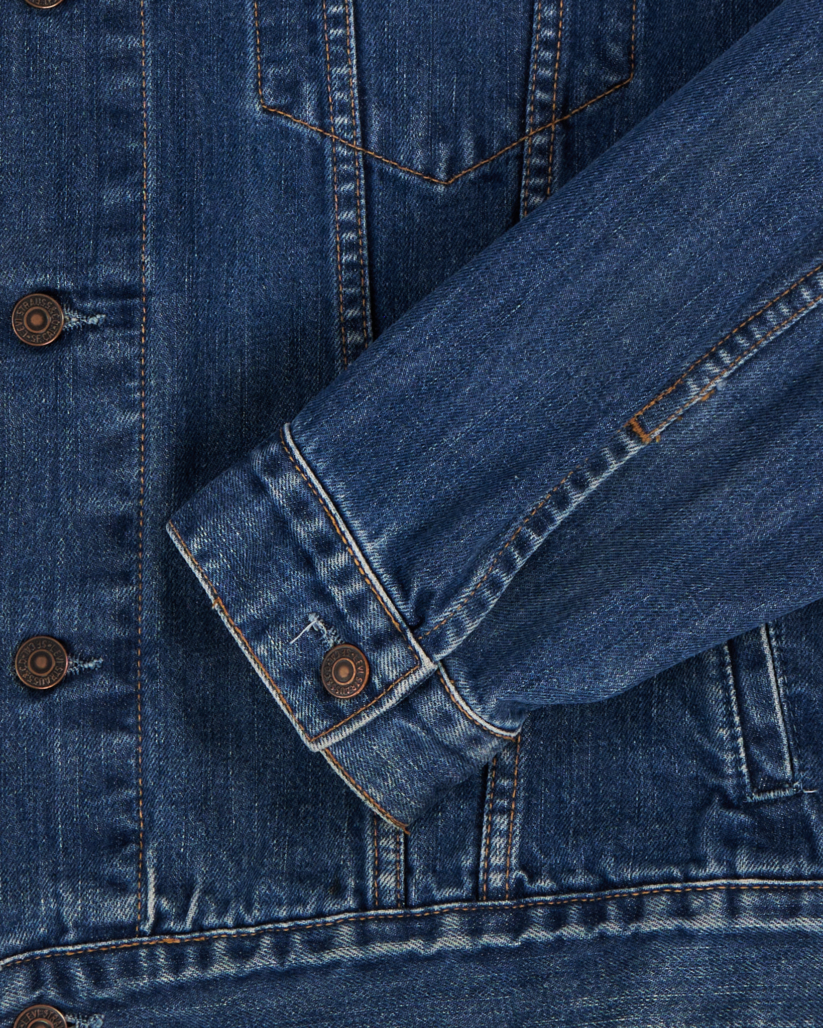 Джинсовая куртка Levi’s из плотного хлопкового денима насыщенного синего оттенка. Свободная посадка, классическая модель с нагрудными карманами, металлическими пуговицами и контрастной строчкой.