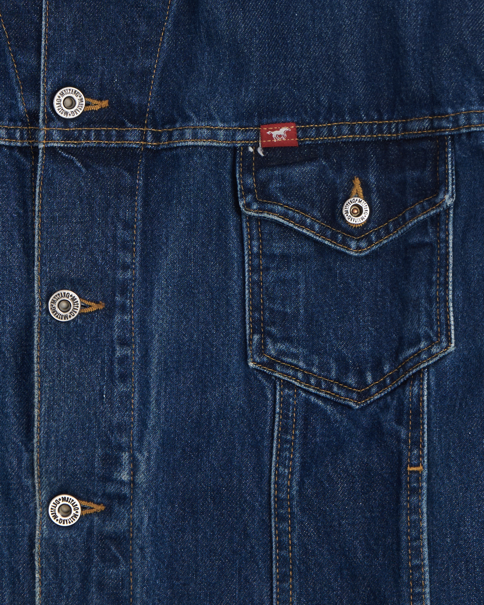Куртка из плотного денима от Mustang. Материал с выраженной фактурой, плотный и износостойкий. Прямой крой. Застежка на металлические пуговицы, нагрудные карманы с клапанами и фирменная фурнитура.