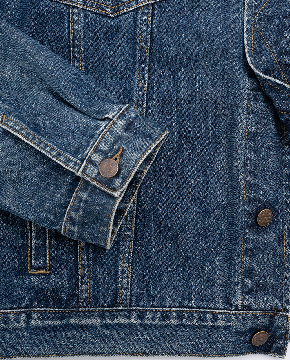 - Изготовлена из плотного денима с естественным выцветанием по швам, винтажная фактура