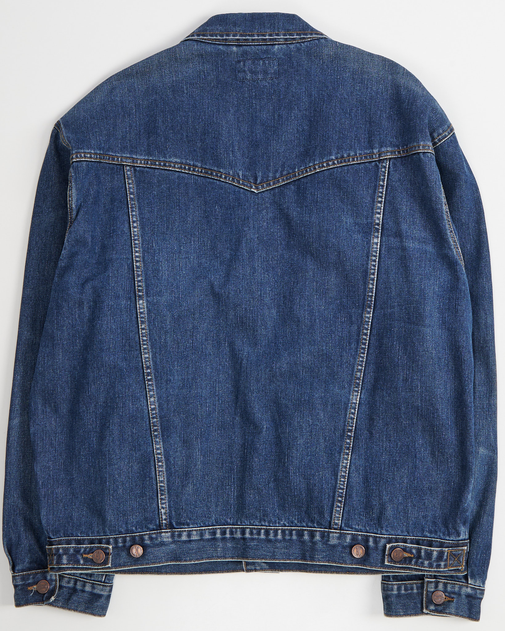 Куртка выполнена из плотного денима с естественным выцветанием по швам, винтажная фактура. Посадка свободная, с запасом по плечам и объему, подходит для многослойных образов. Аутентичные металлические кнопки и фирменная строчка