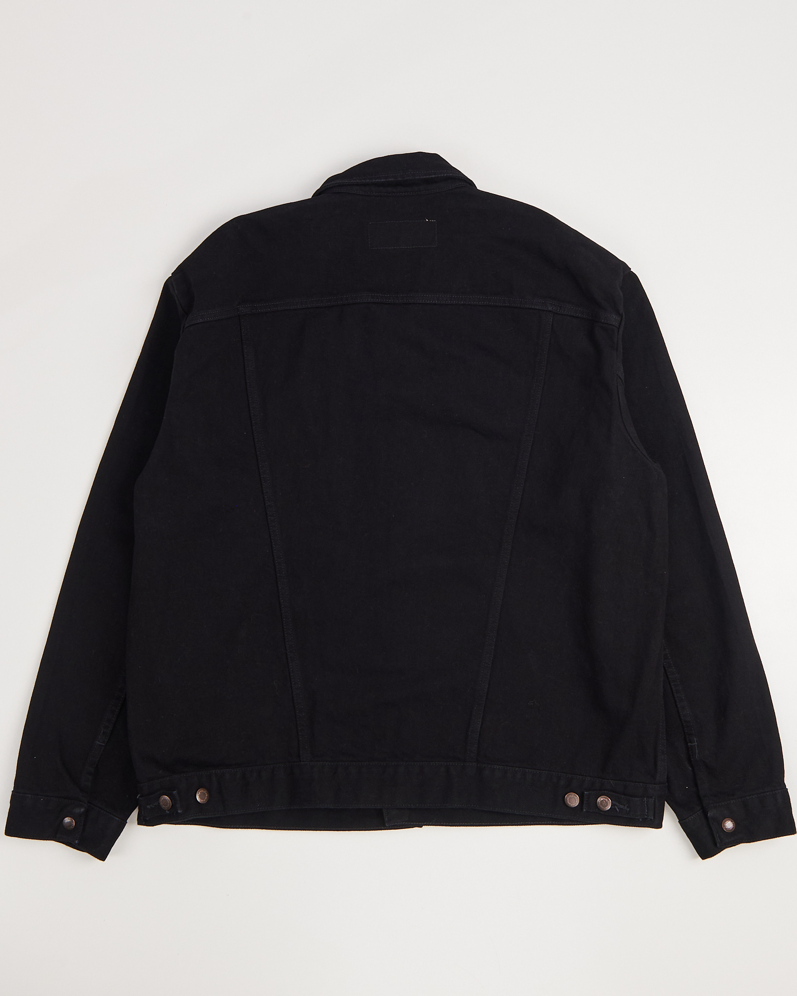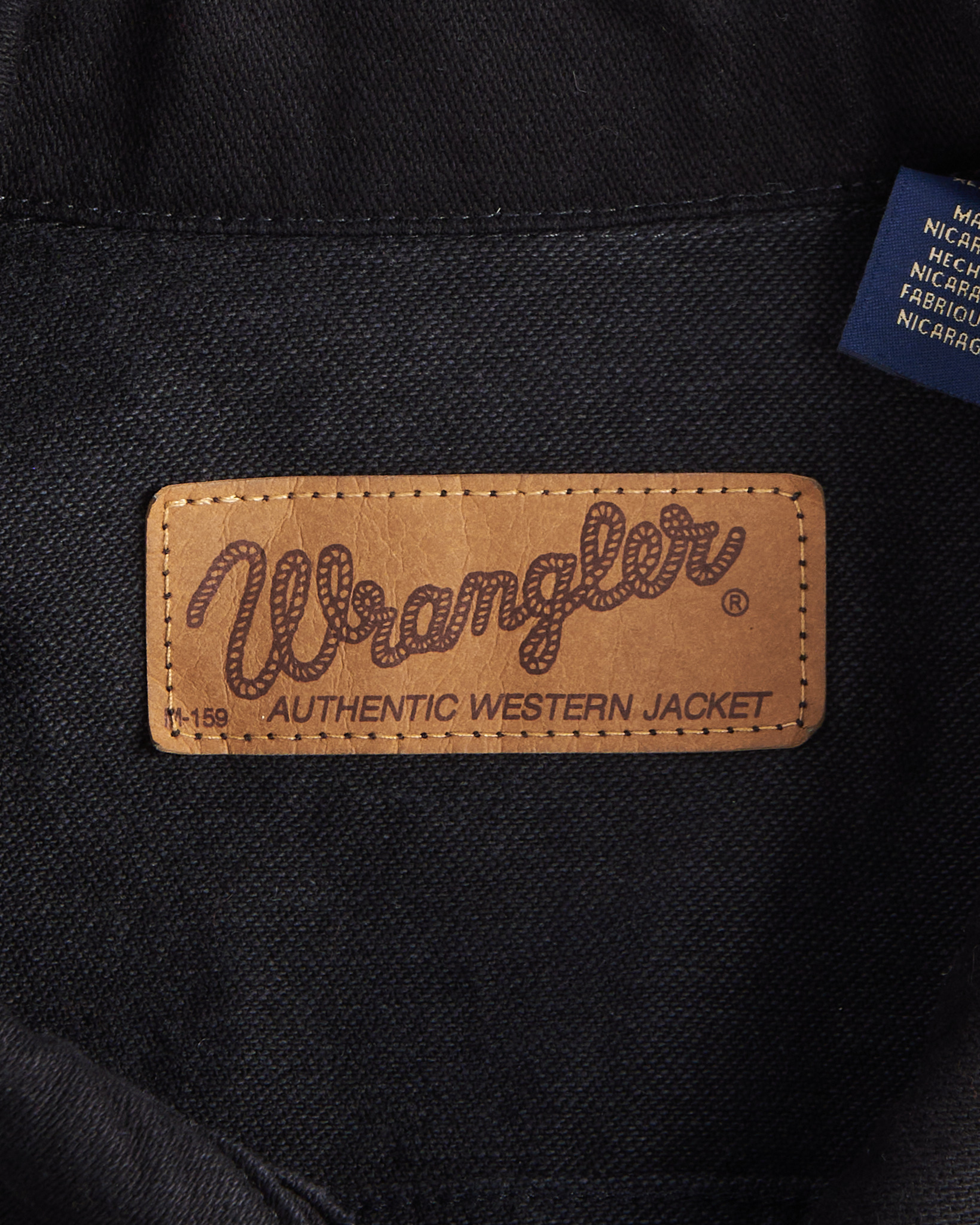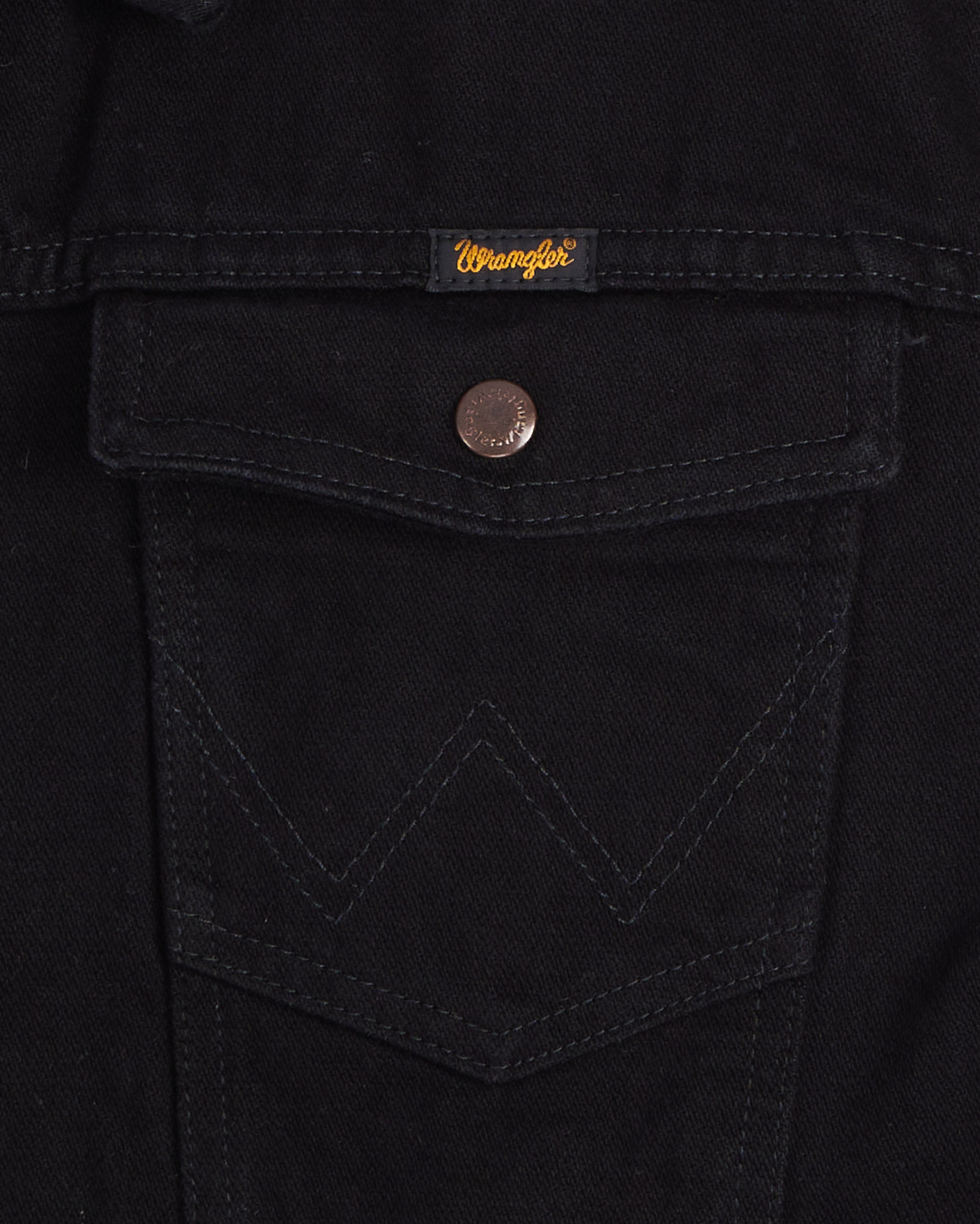 Куртка из плотного денима. От бренда Wrangler. Прямой силуэт, посадка свободная. Модель выполнена в чёрном цвете, на груди два кармана с клапанами и фирменной строчкой, металлические пуговицы по всей длине.