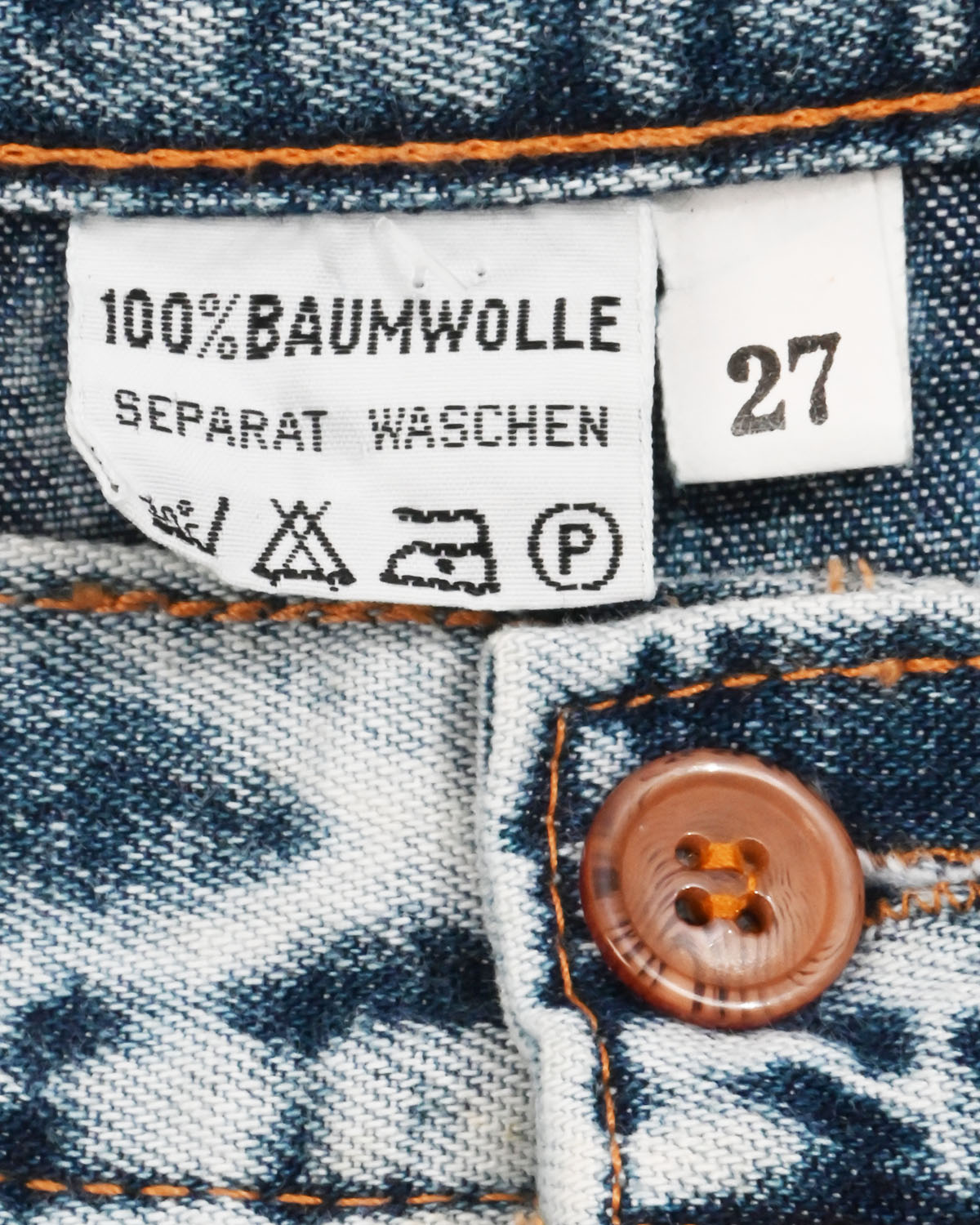 - Выполнена из плотного денима с эффектом варки — каждая деталь имеет уникальный рисунок выцветания