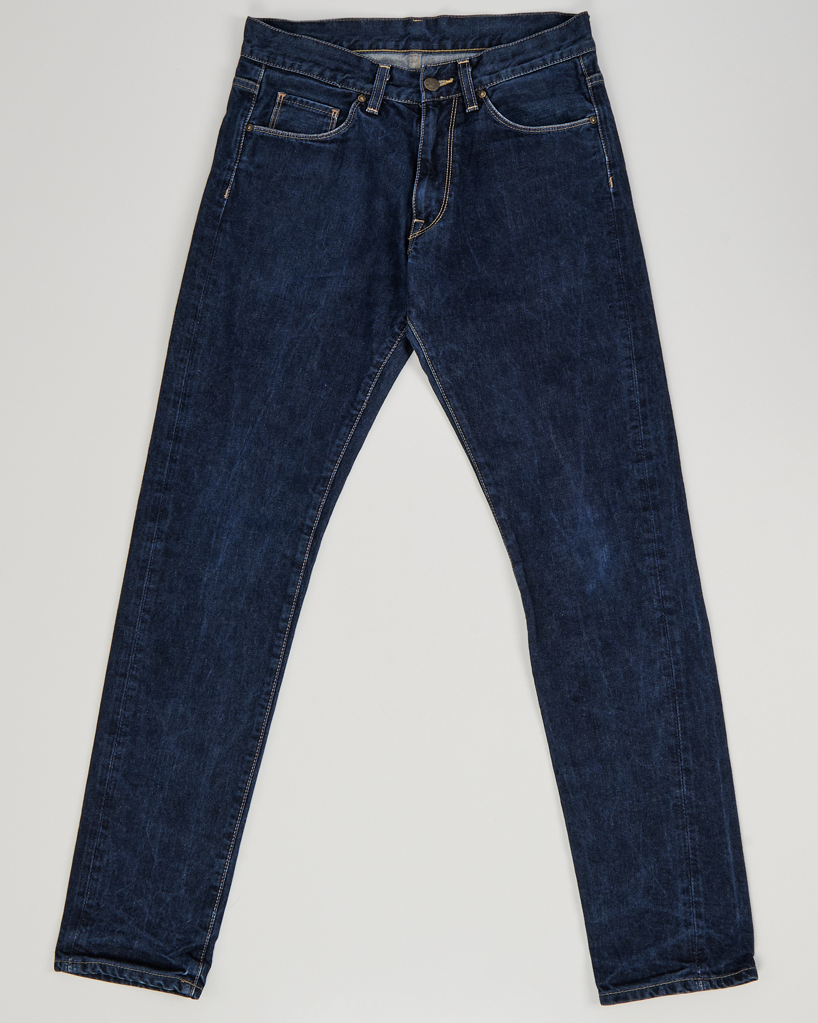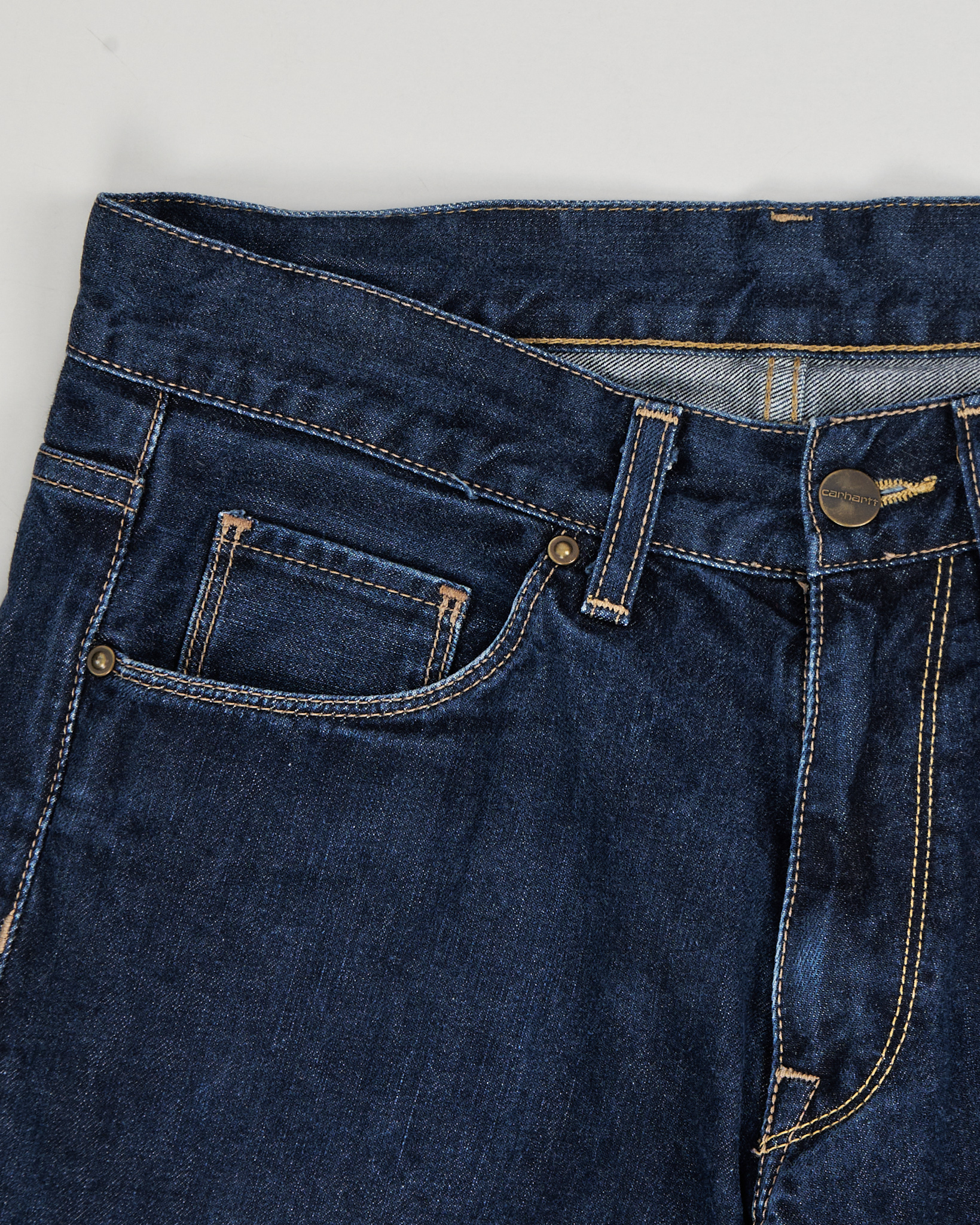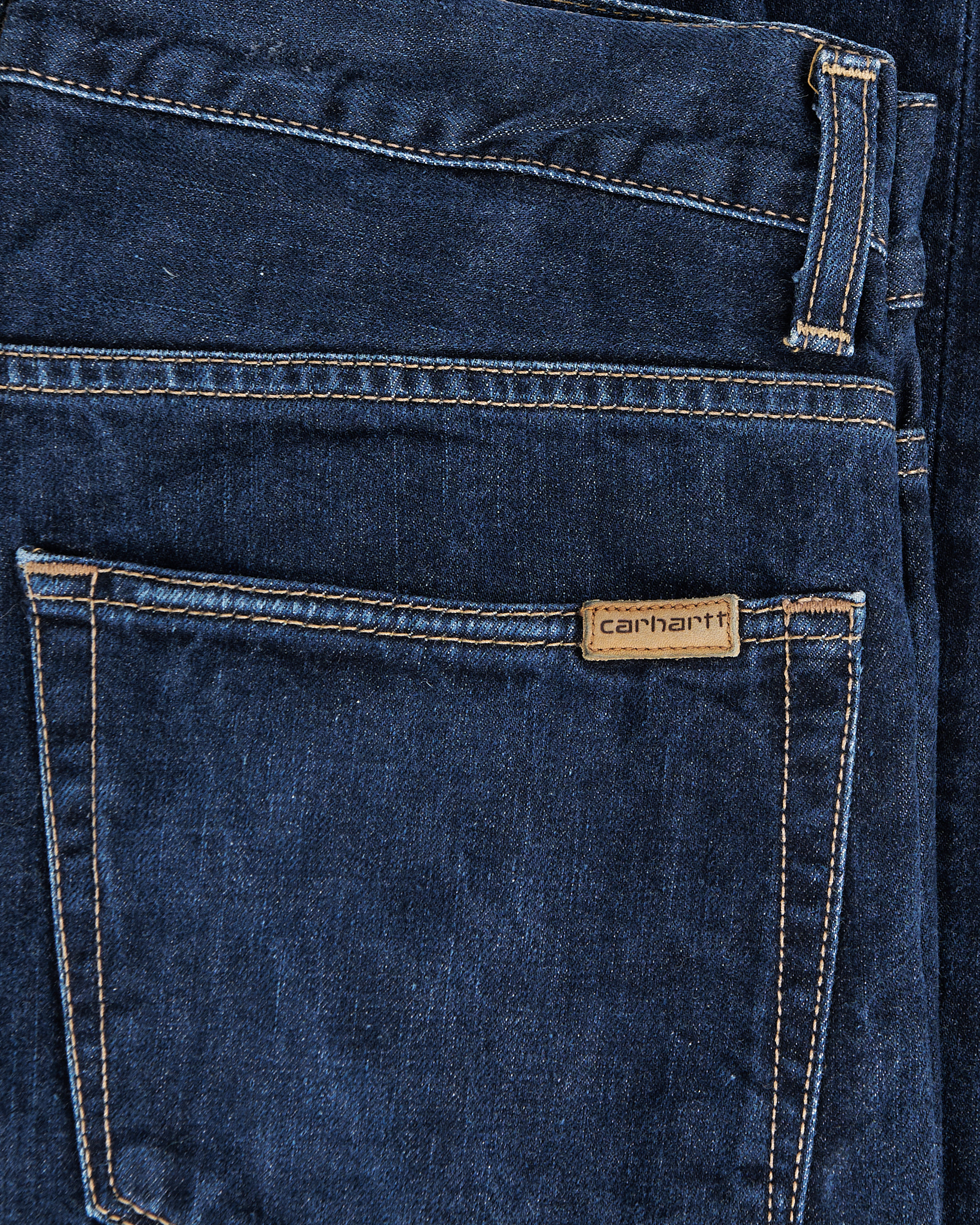Джинсы Carhartt из плотного денима. Посадка средняя, прямой крой. Фирменная фурнитура, функциональные карманы.