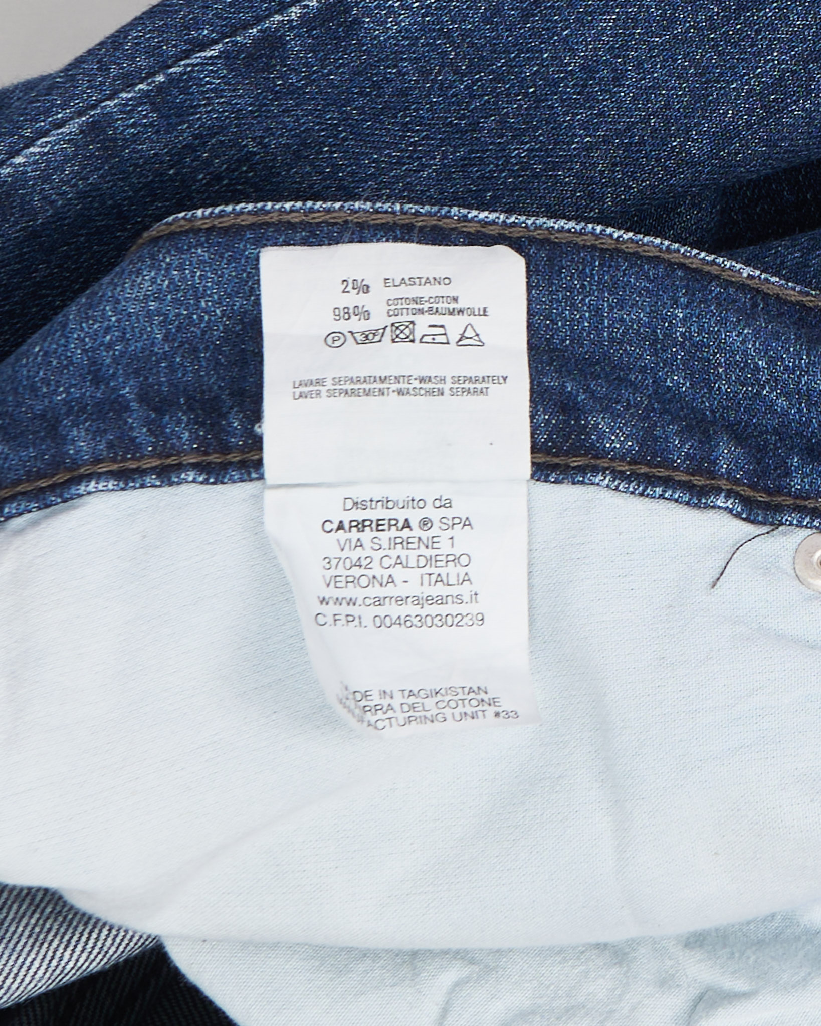 Синие джинсы из плотного денима. Модель 702 Comfort с прямыми штанинами. Фирменный кожаный патч Carrera на поясе