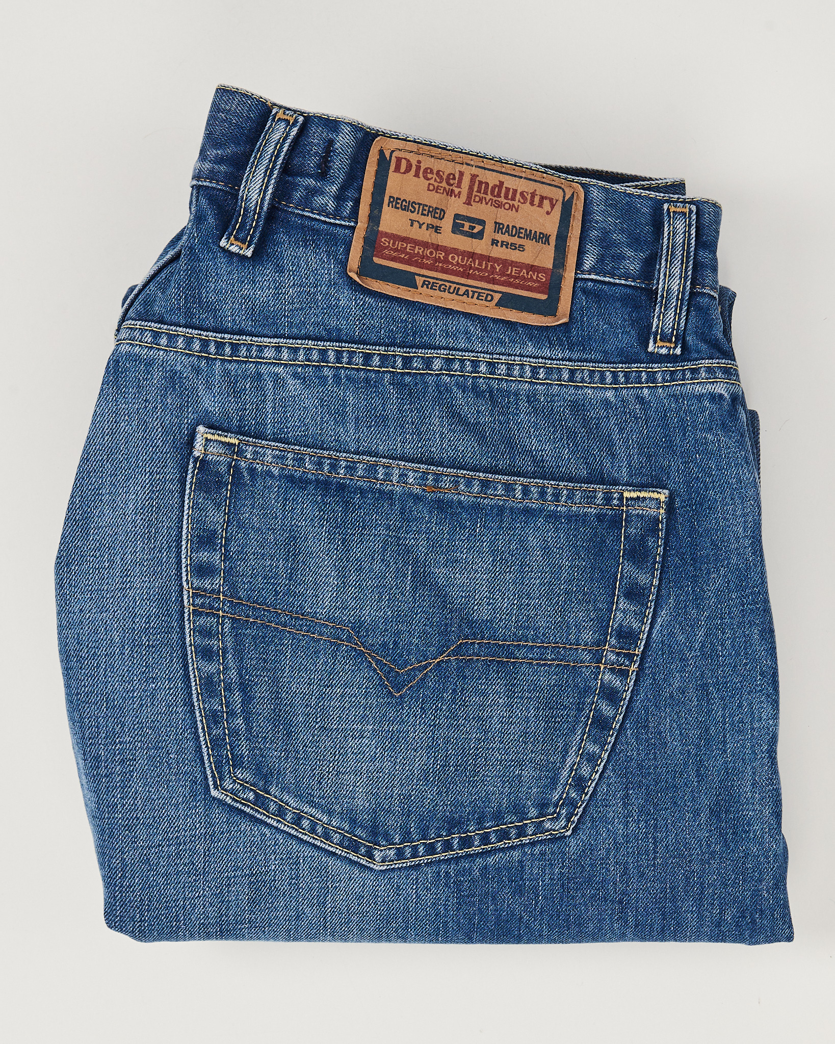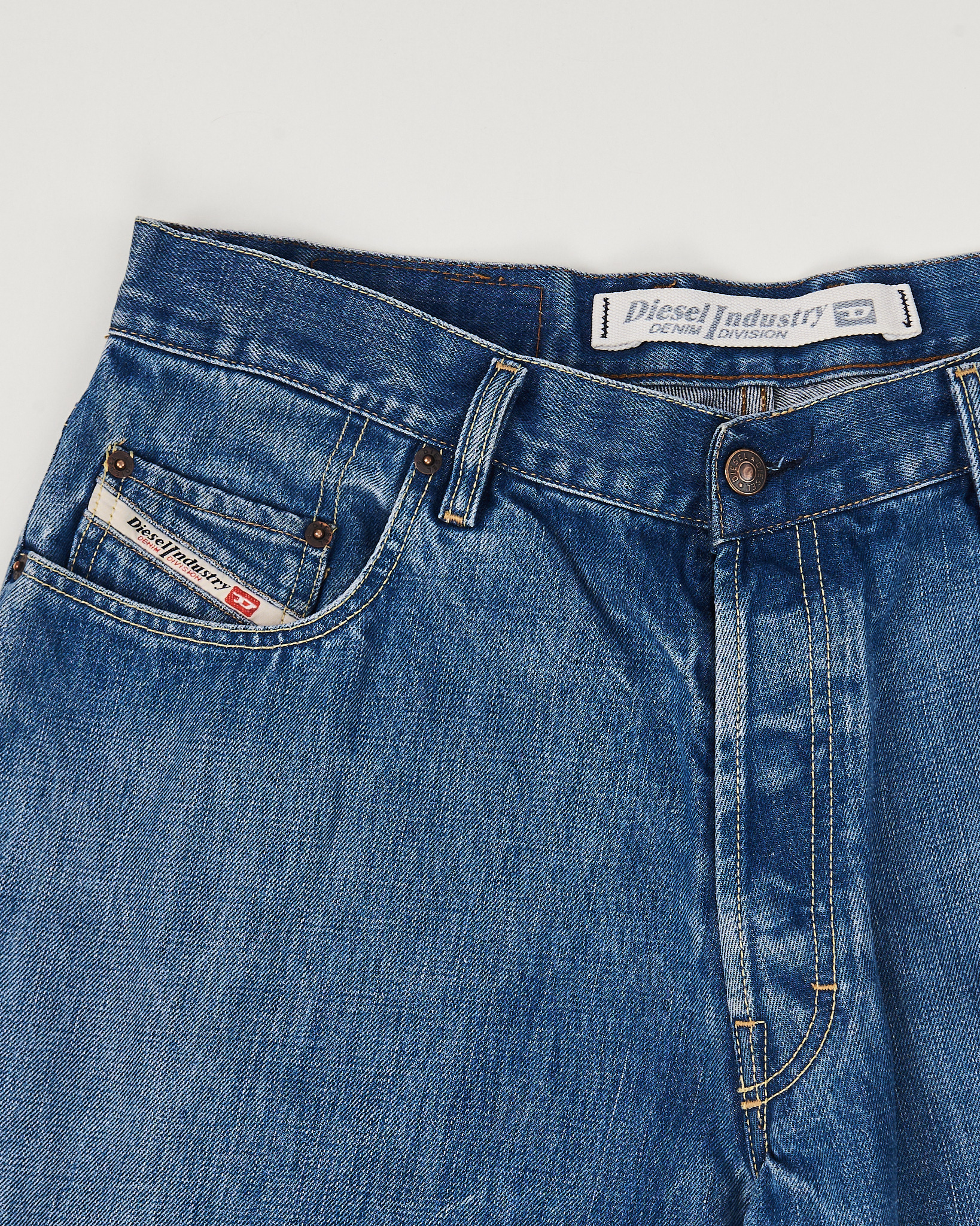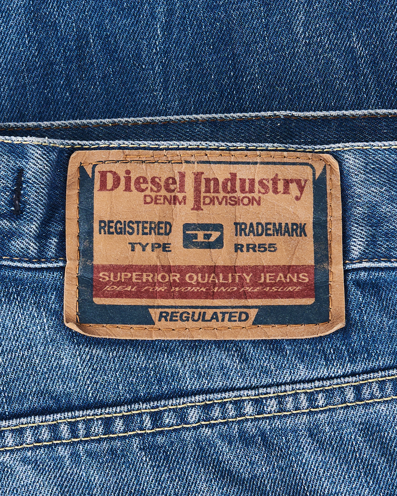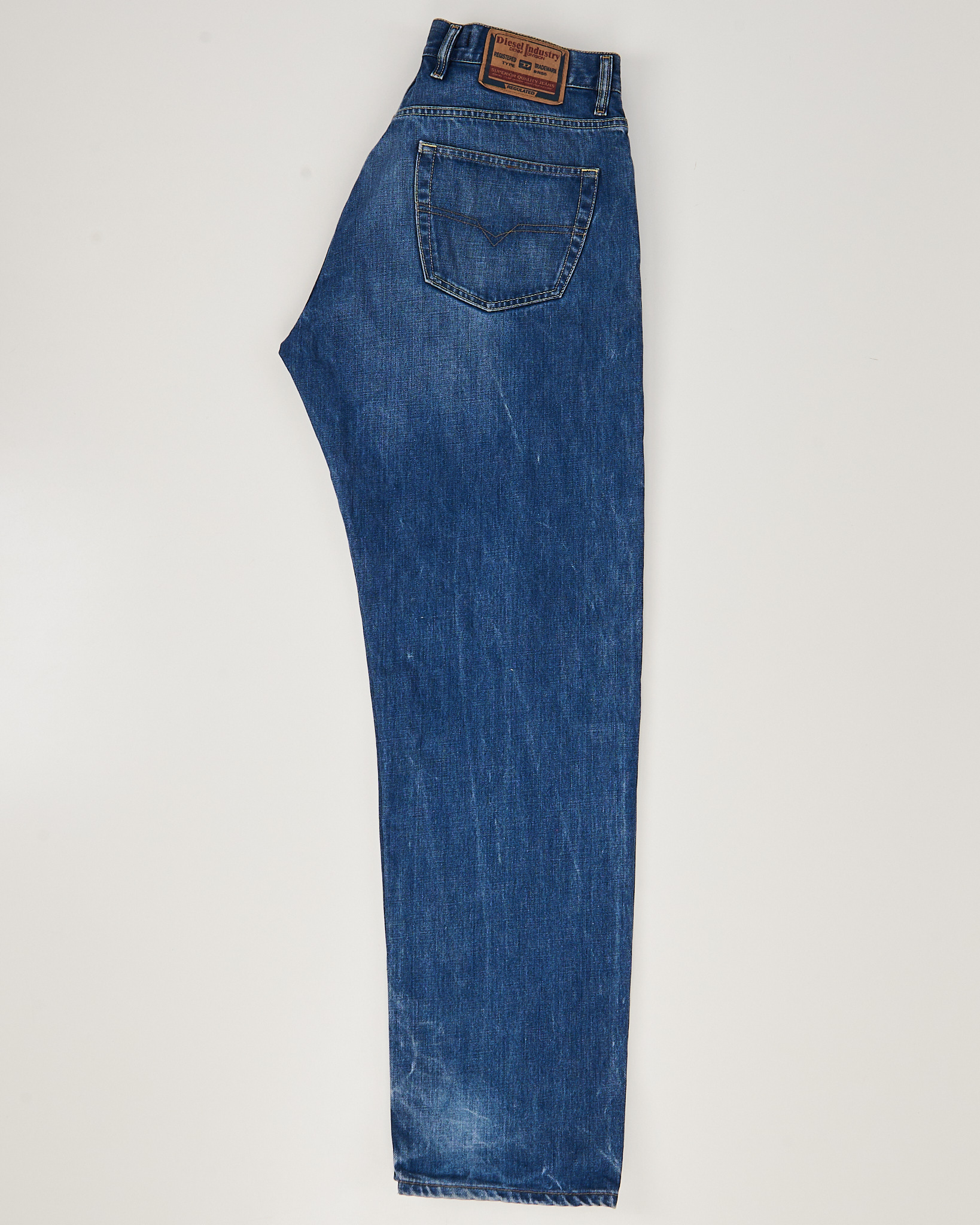 Джинсы Diesel из 100% хлопка. Посадка прямая, комфортная по талии. Материал приятный на ощупь, хорошо держит форму в носке. Фирменная фурнитура с гравировкой бренда.