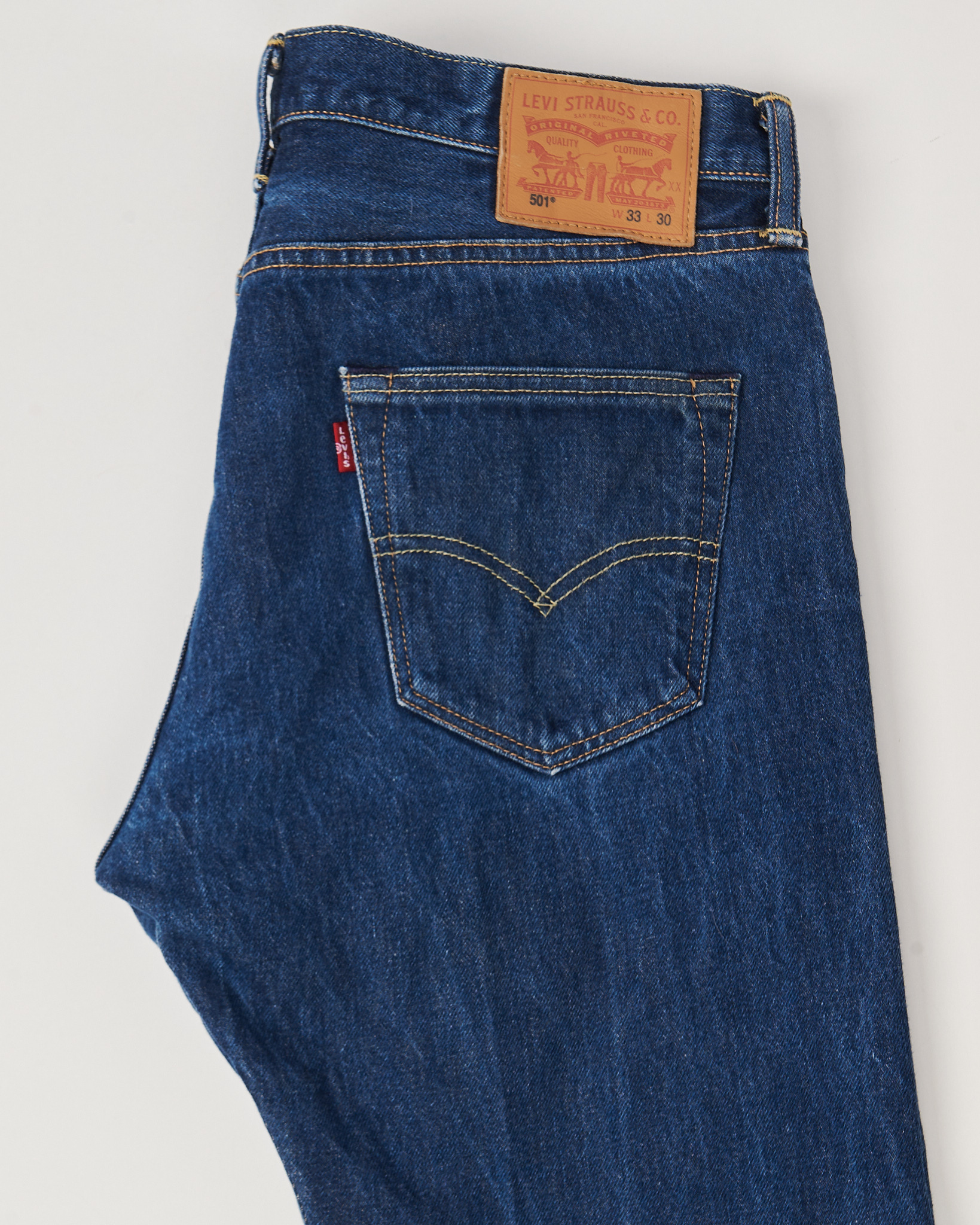 Levi’s 501 из синего денима. Посадка средняя, крой прямой. Модель с 5 карманами и фирменным кожаным патчем сзади.