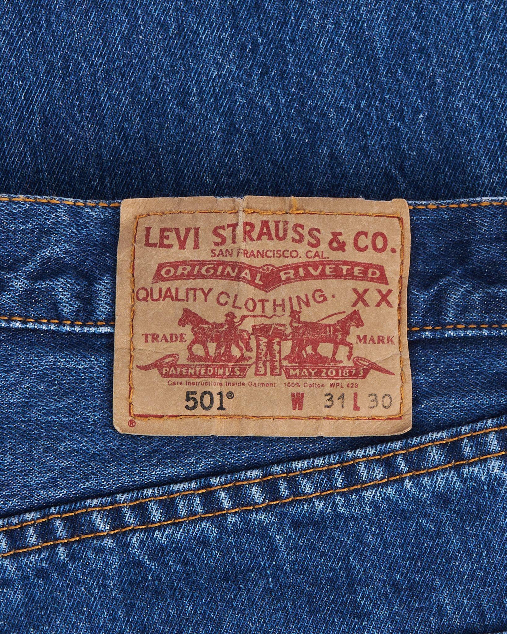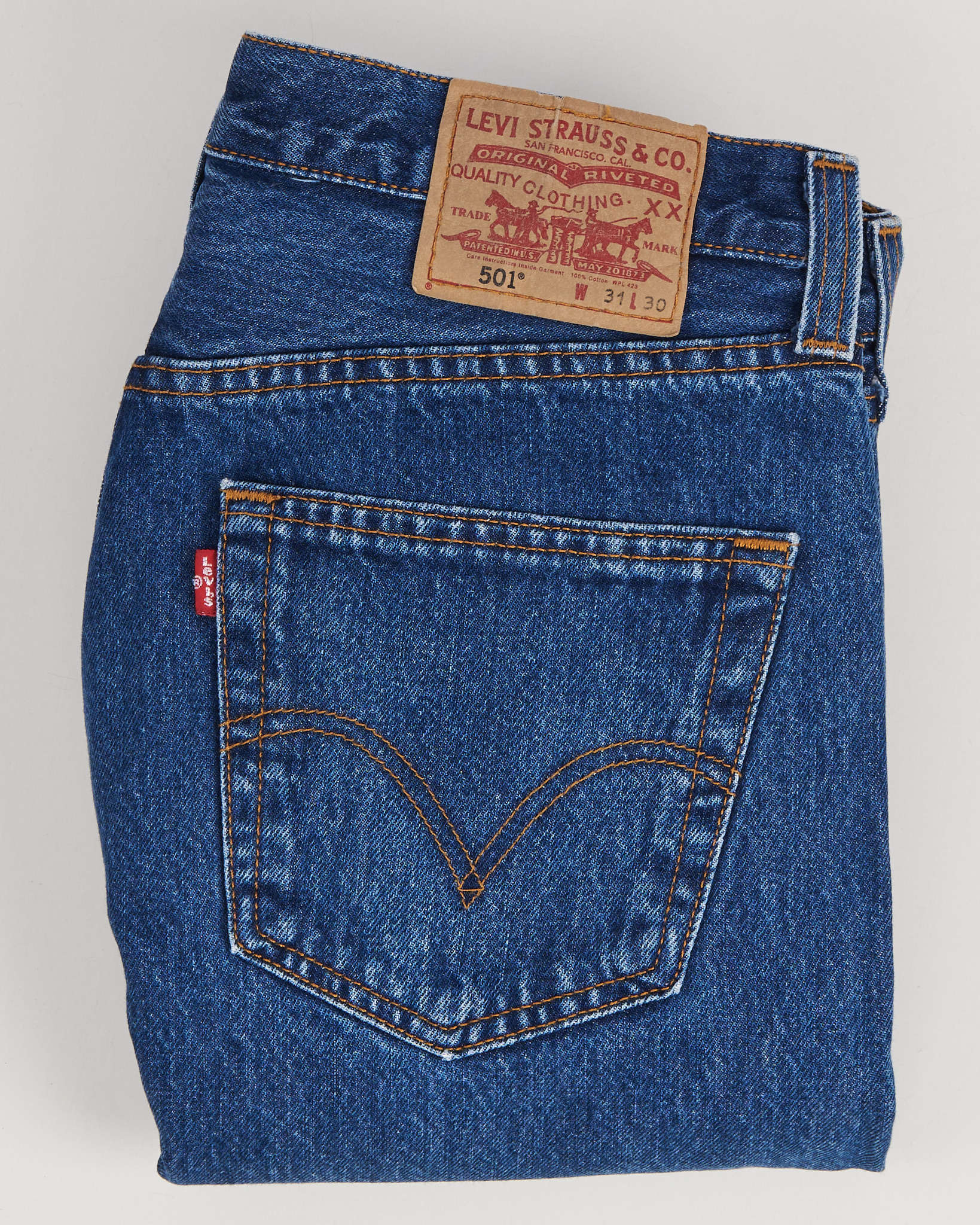 Джинсы Levi’s 501 из плотного хлопкового денима. Классического синего цвета. Прямой крой с характерной посадкой по талии. Модель с пуговичной ширинкой, пятикарманной конструкцией и фирменным патчем на поясе