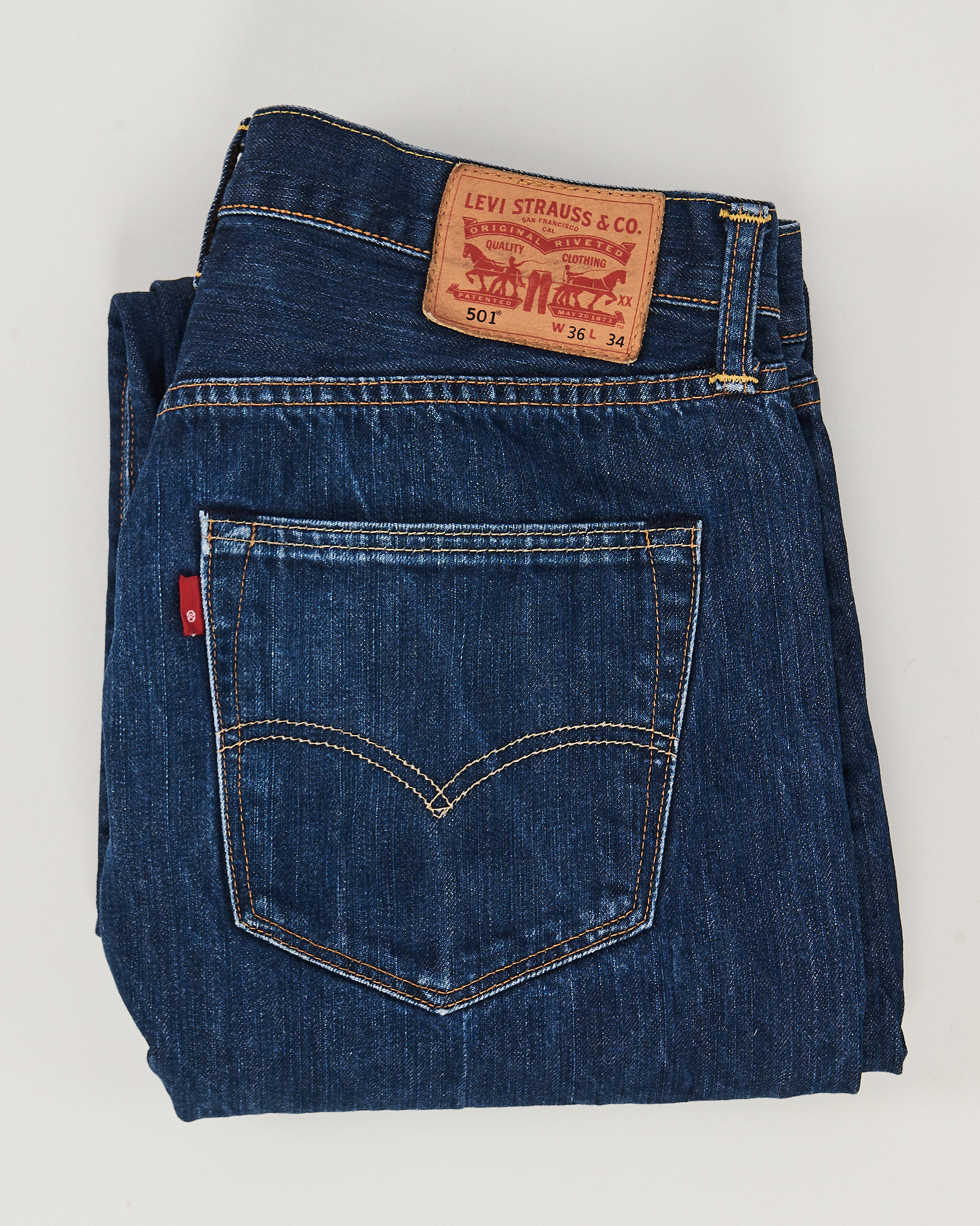Джинсы Levi’s 501 из плотного денима насыщенного синего оттенка. Посадка прямая, ближе к классической. Функциональные карманы, фирменный патч.
