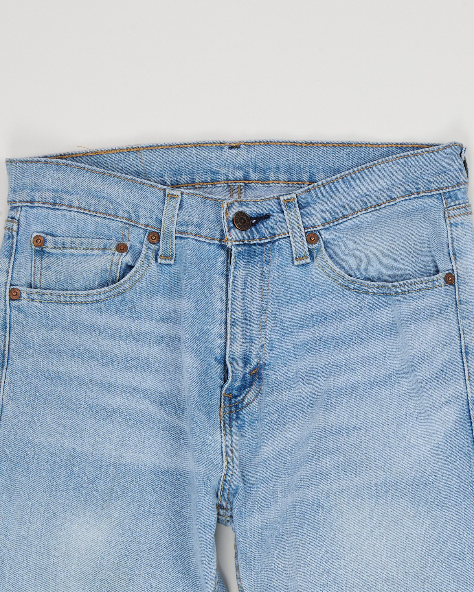 Джинсы Levi’s 505 из плотного хлопкового денима светло-голубого оттенка. Прямой крой, чёткий силуэт. Классическая модель с пятью карманами и фирменной строчкой Levi’s на заднем кармане.