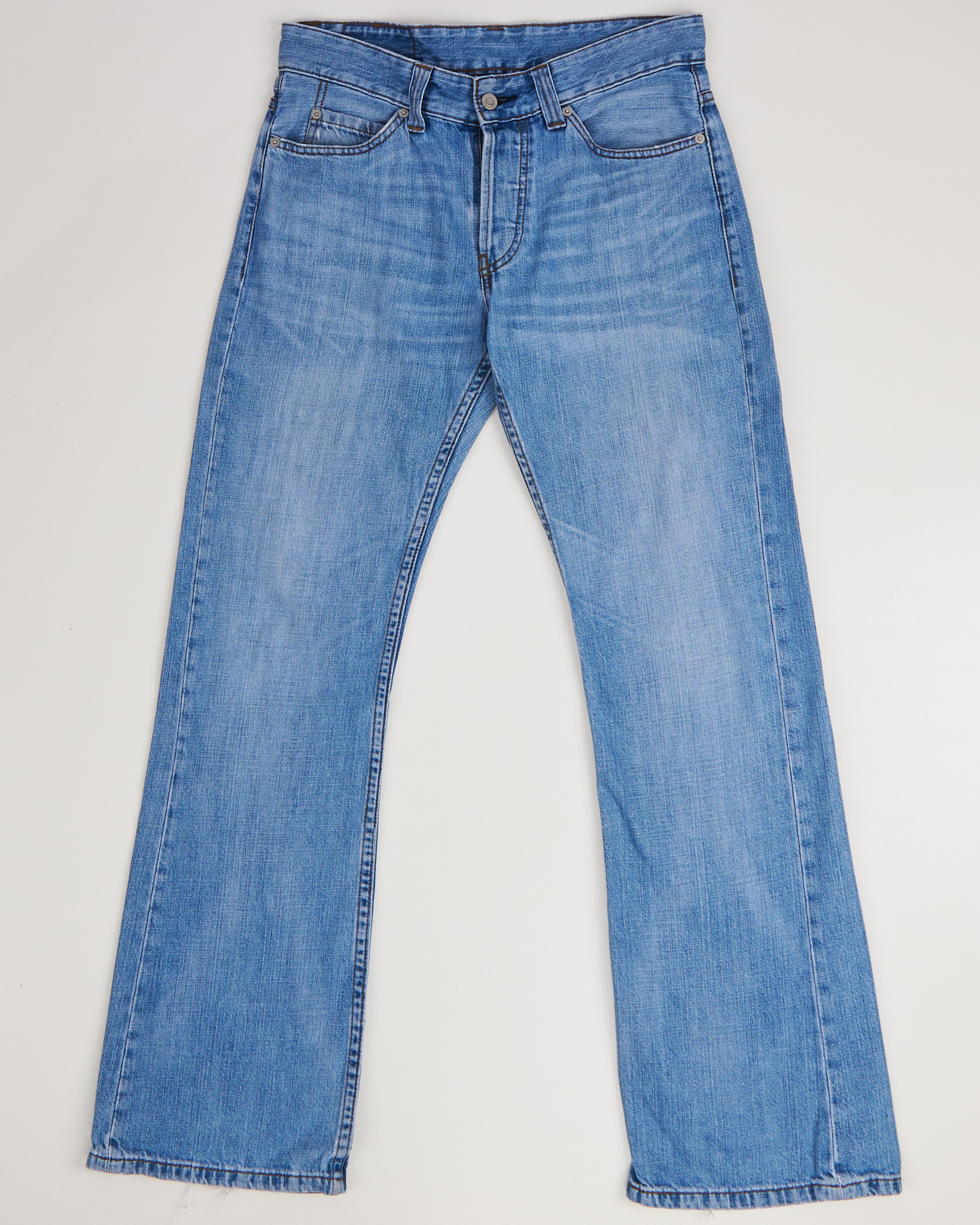 Джинсы из плотного денима Levi’s модель 512 с прямым силуэтом и лёгким расширением к низу. Классическая пятикарманная конструкция. Застежка на болты. Фирменный патч на поясе