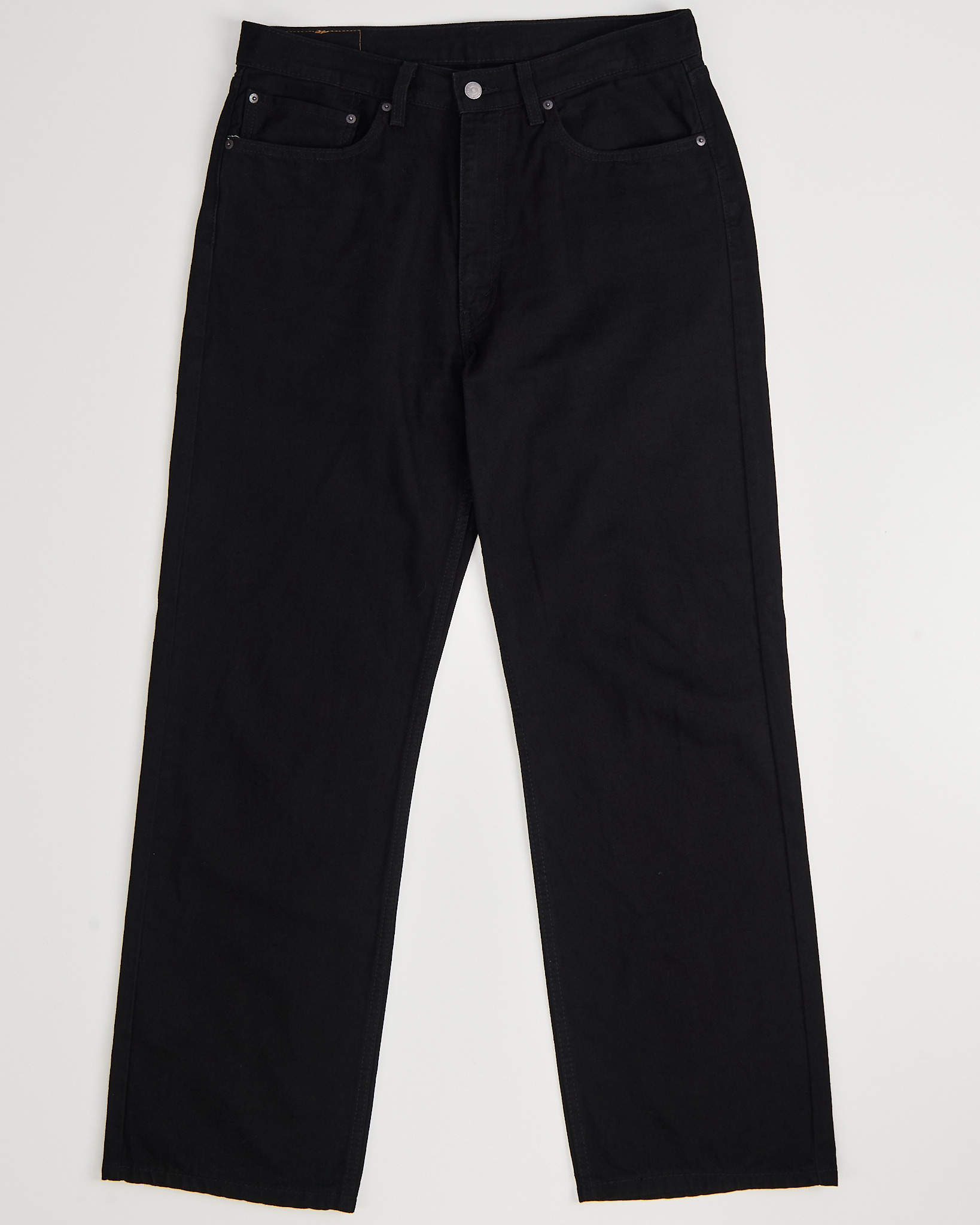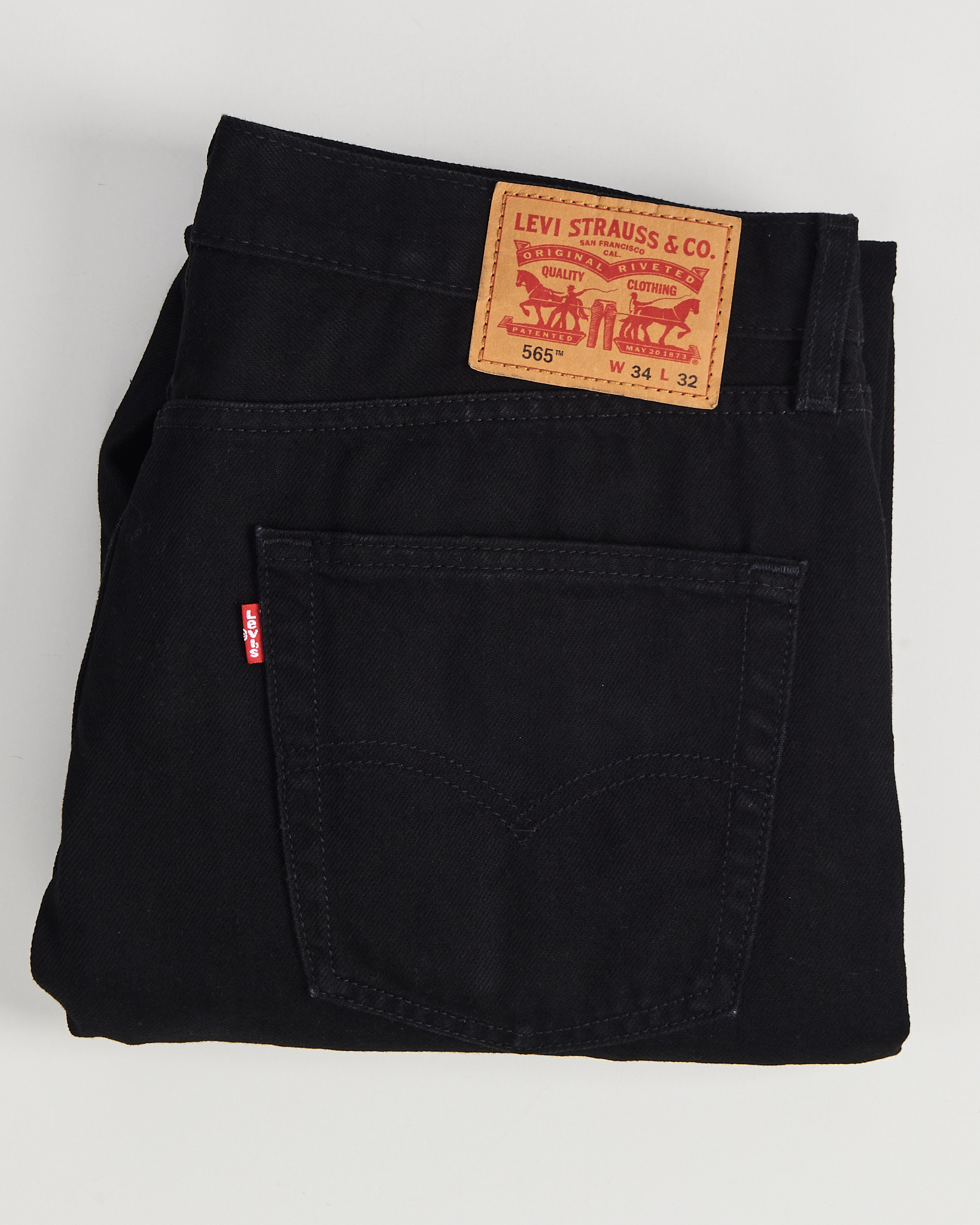 Джинсы Levi’s 565  из плотного денима глубокого чёрного цвета. Посадка средняя, силуэт прямой. Функциональные карманы, фирменный патч сзади.
