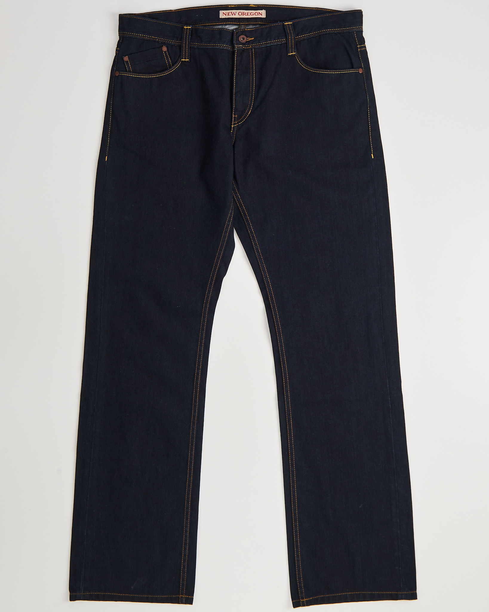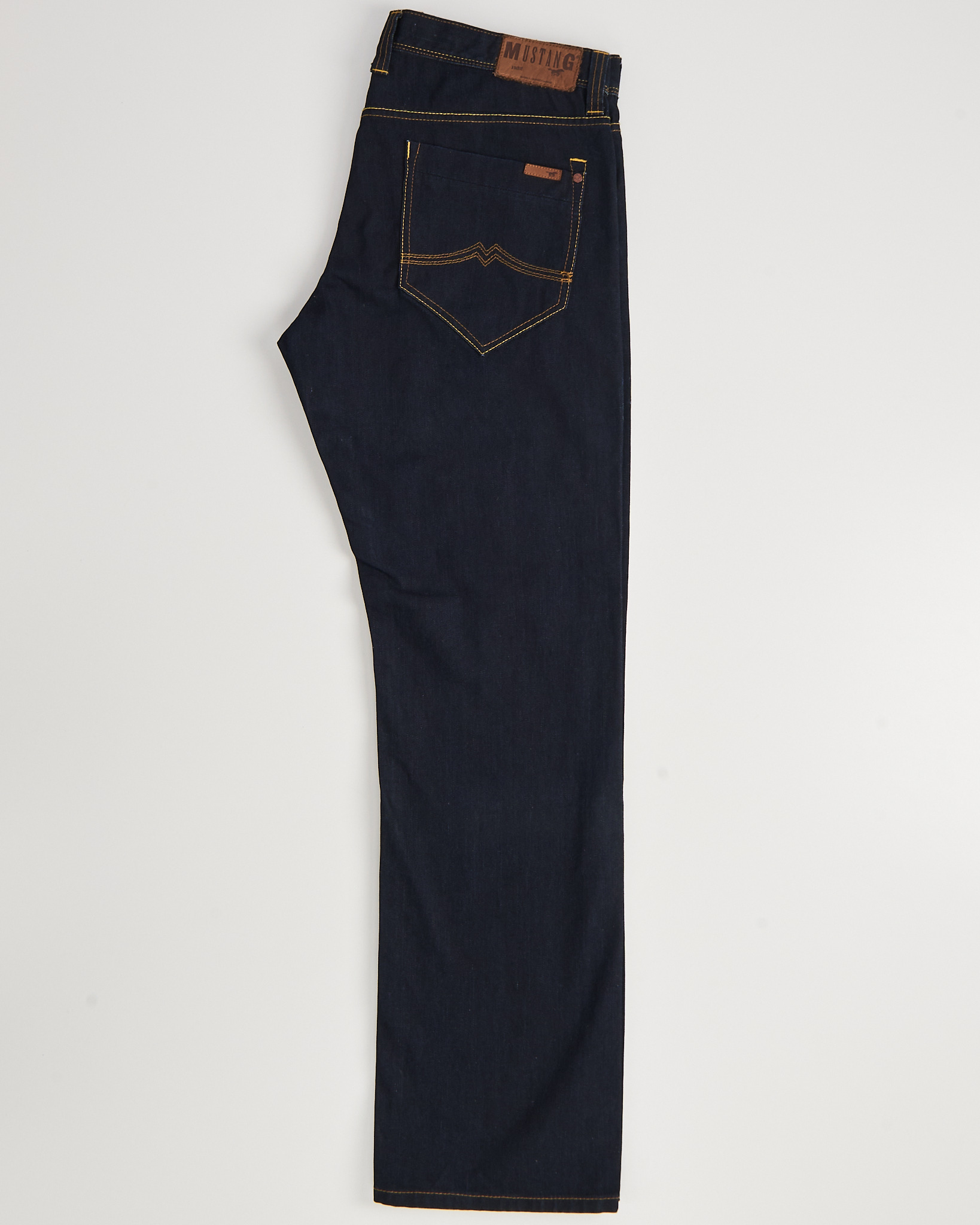 Джинсы из плотного денима глубокого тёмно-синего цвета. Посадка средняя, крой прямой. Контрастная строчка и аккуратные карманы.