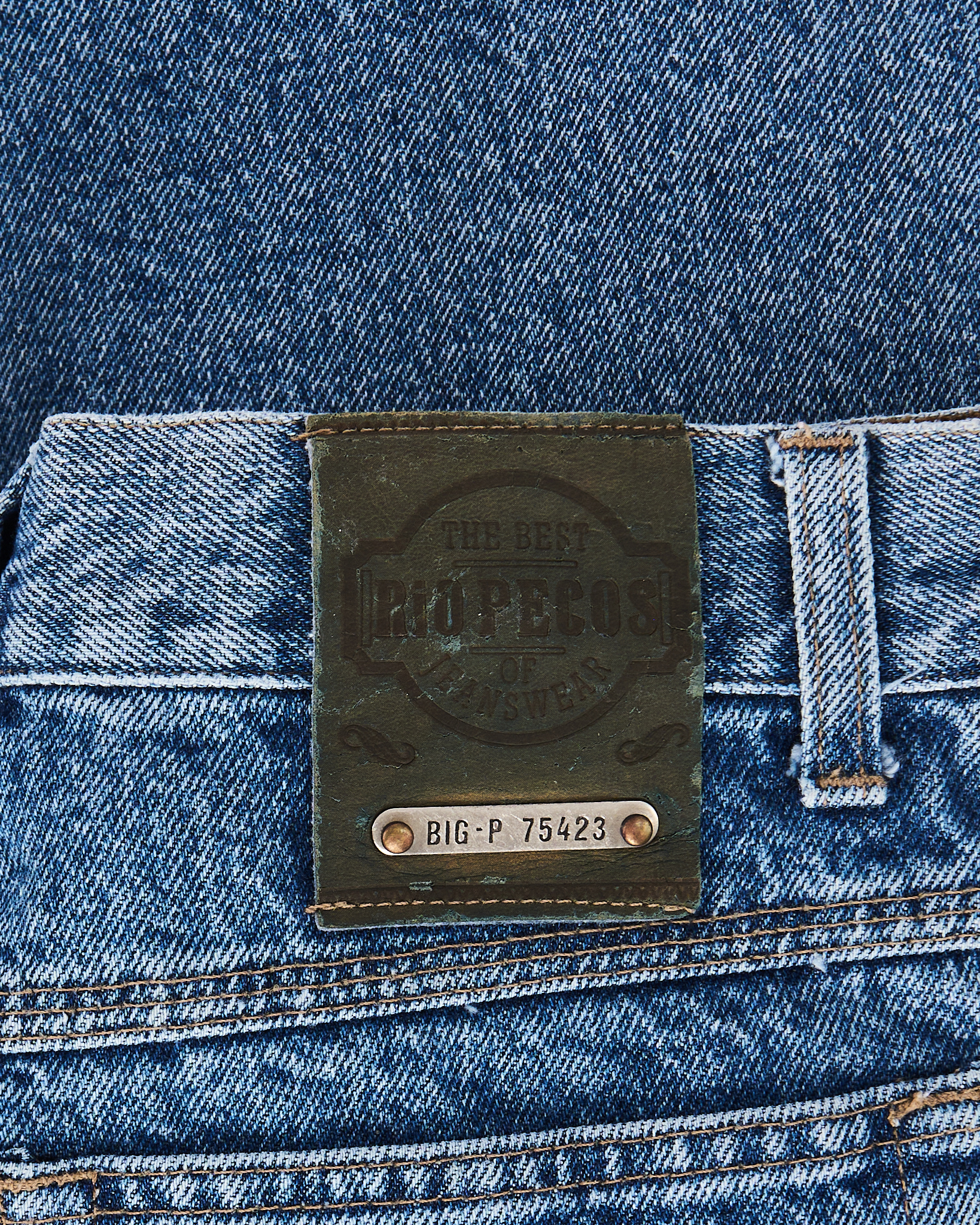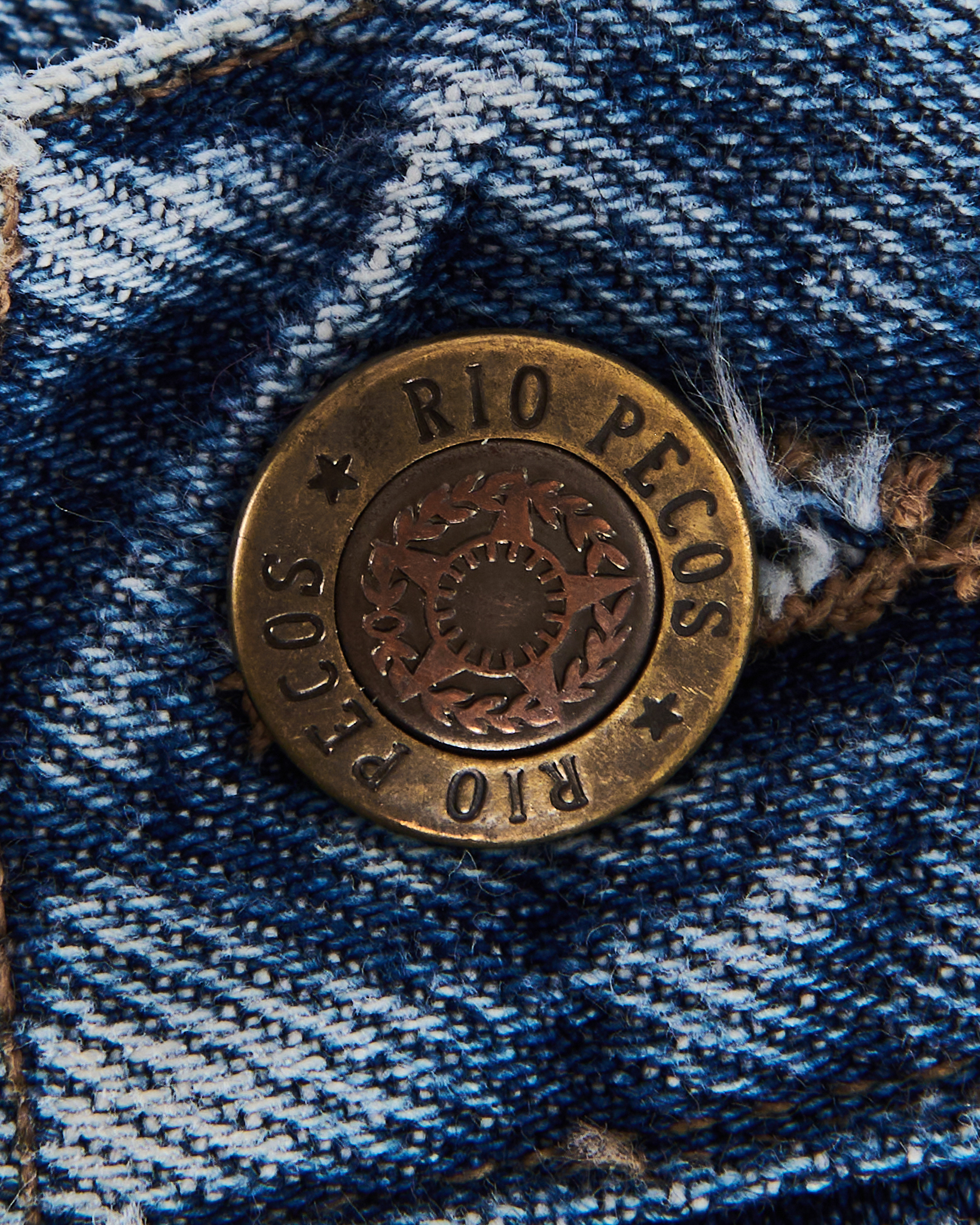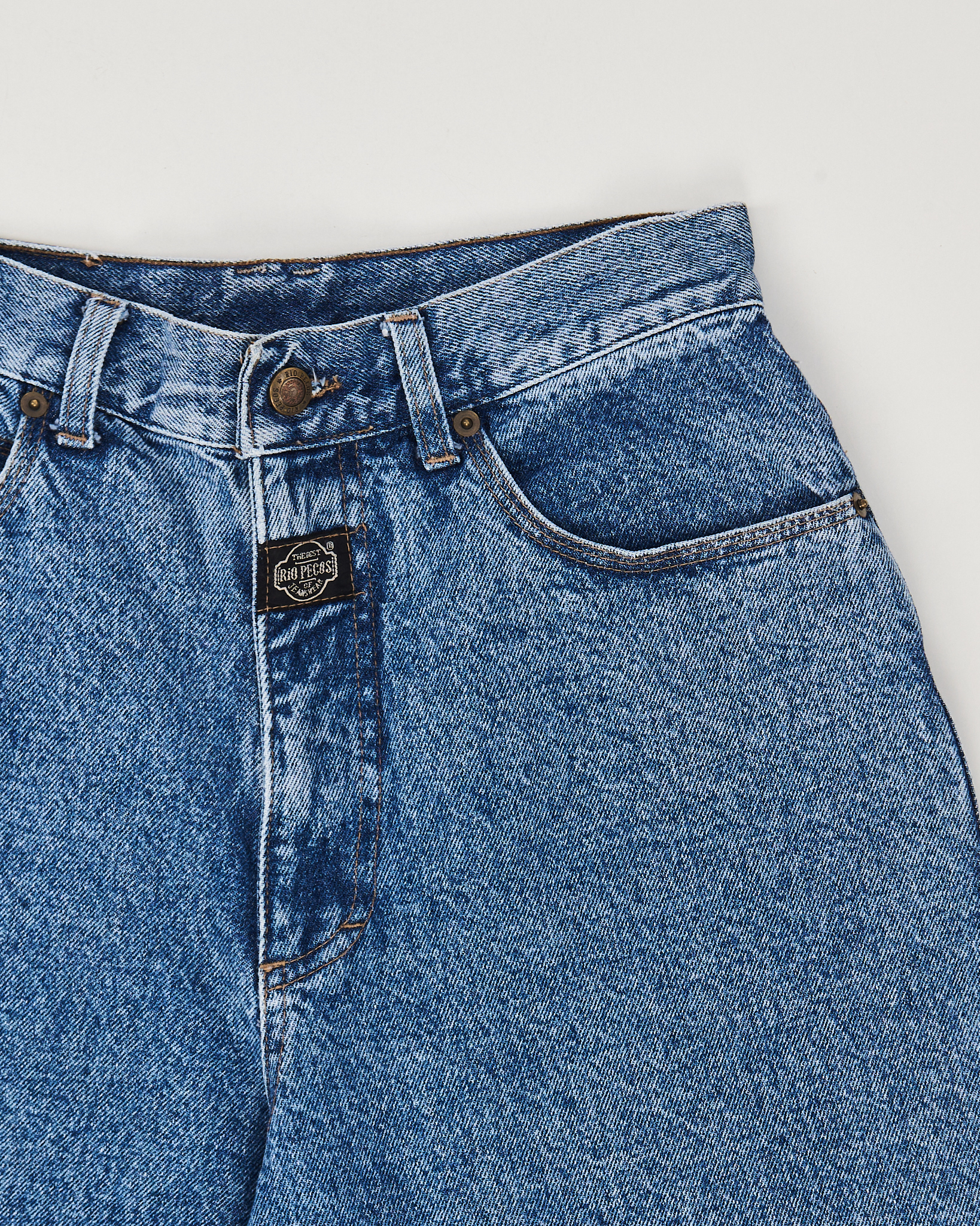 Джинсы Rio Pecos из плотного хлопкового денима. Посадка средняя, линия талии чёткая. Крой прямой, силуэт вытянутый. Кожаный патч и фирменная фурнитура.