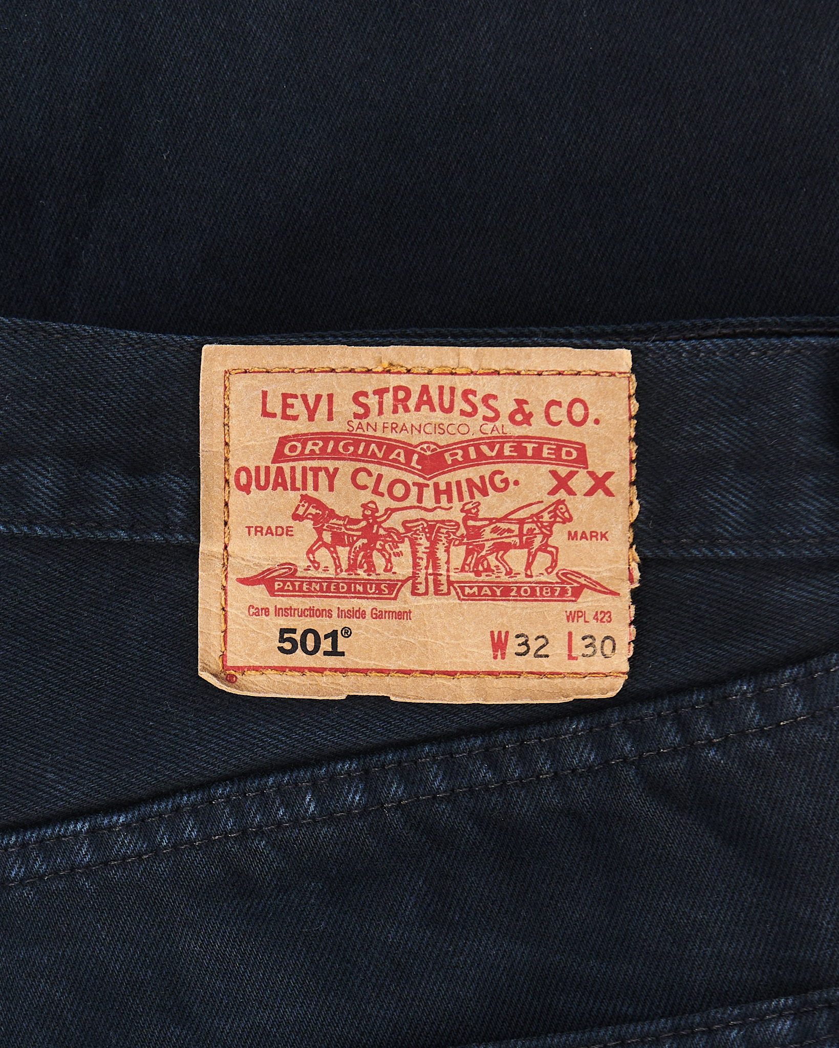 Джинсы Levi’s 501 из плотного денима глубокого тёмно-синего оттенка. Посадка средняя, крой прямой по всей длине. Фирменная кожаная нашивка и минималистичная обработка.