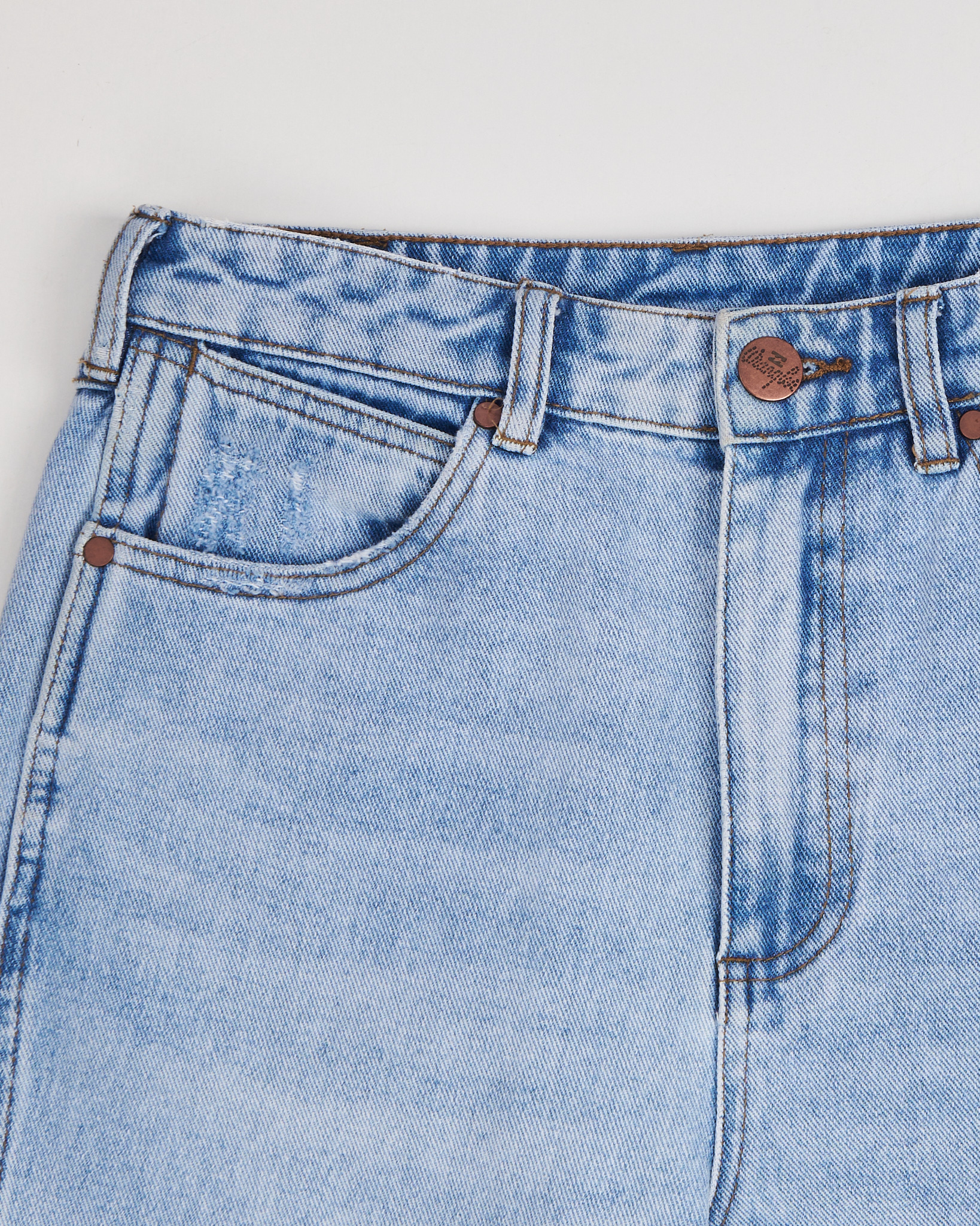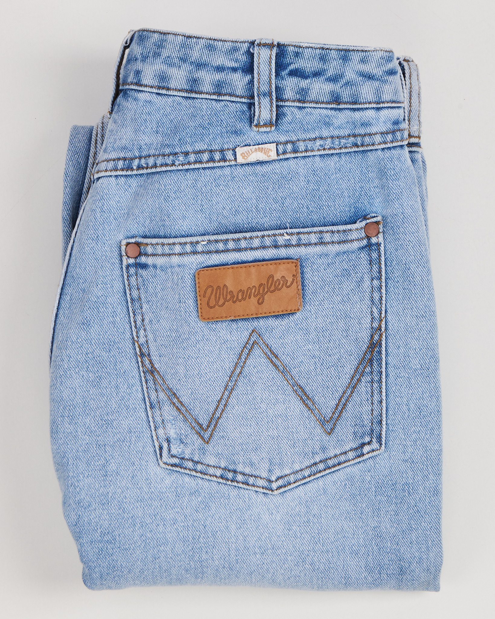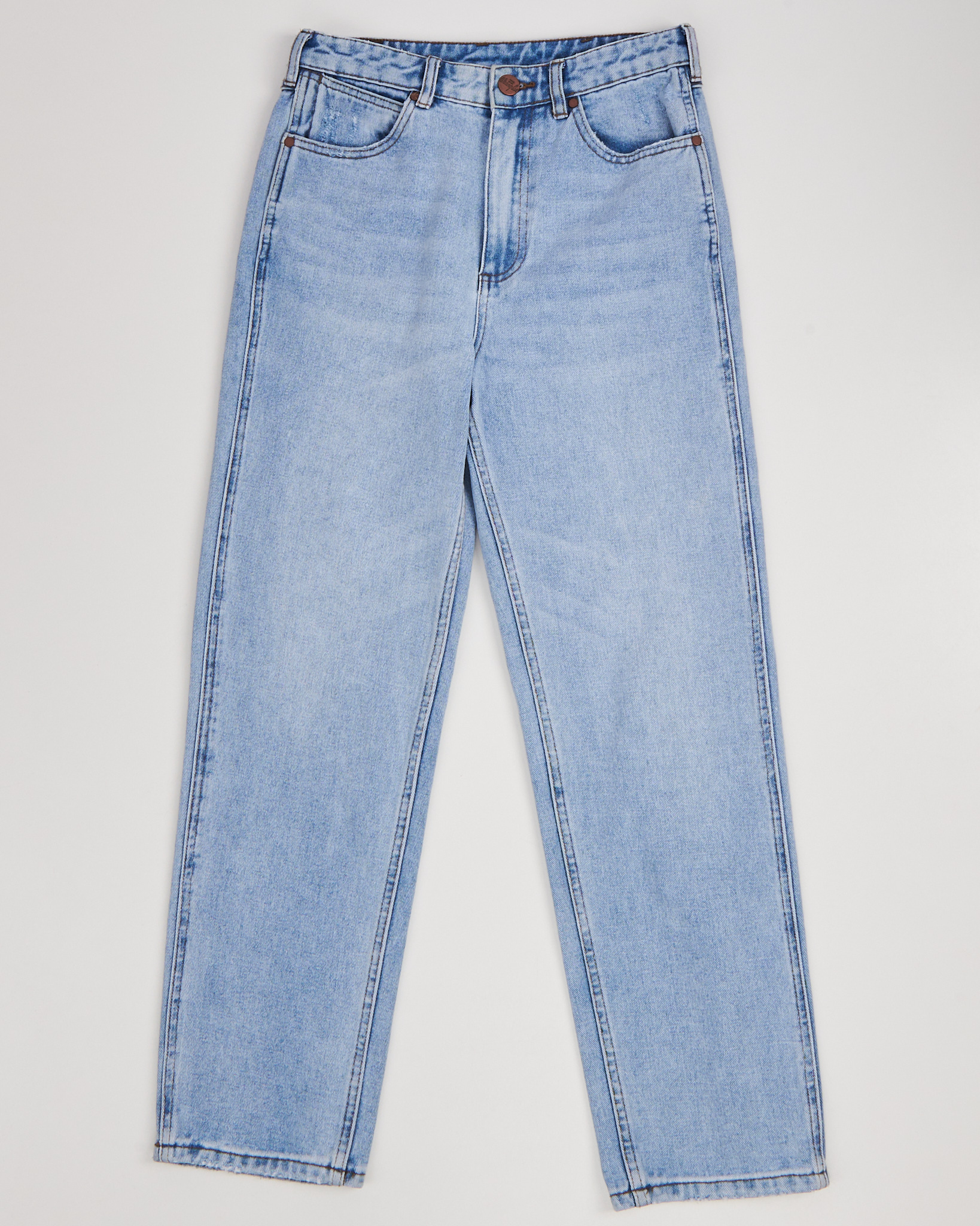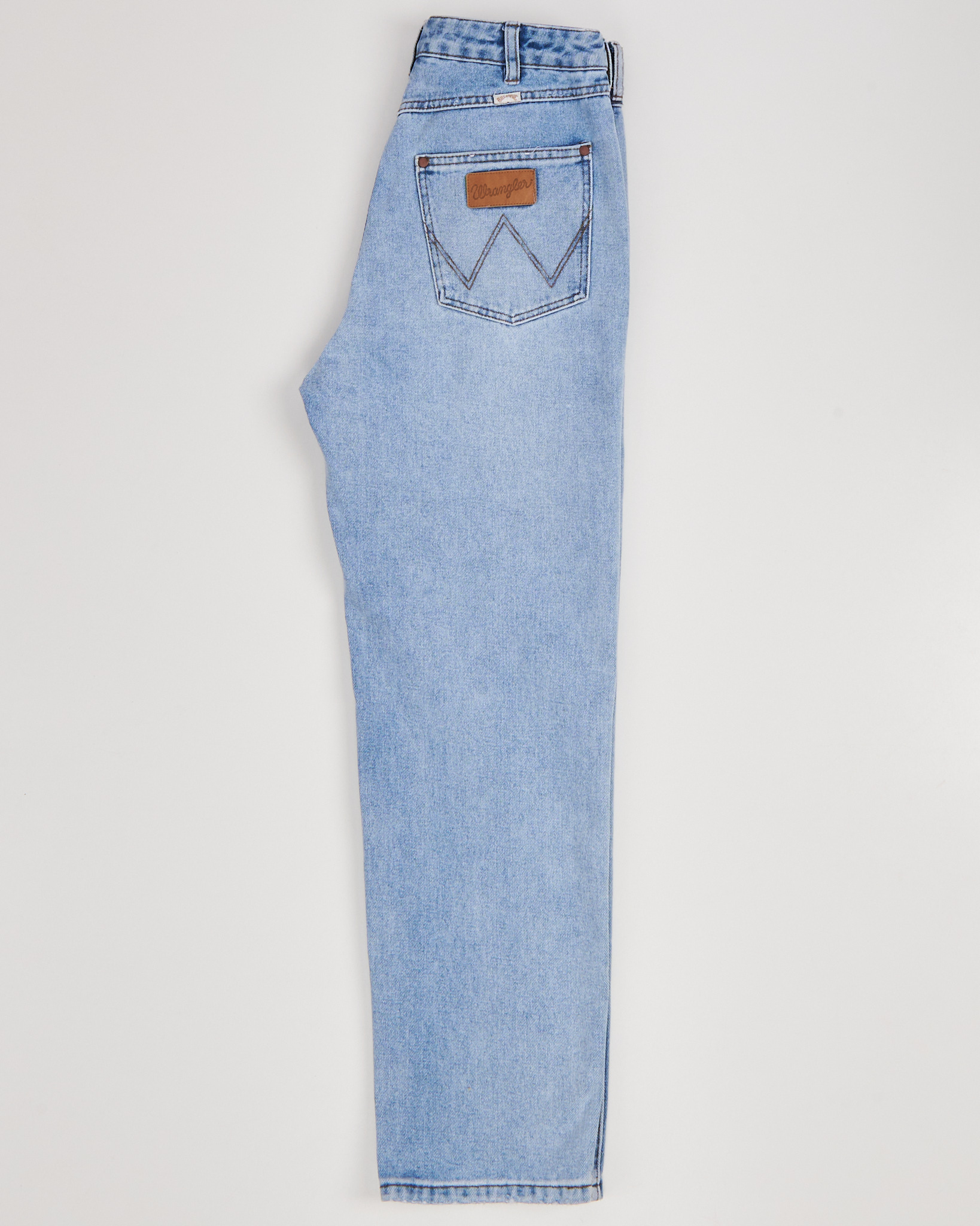 Джинсы Wrangler в светло-голубом оттенке. Модель прямого кроя. Классическая посадка. Пять карманов и фирменная строчка в форме «W» на заднем кармане.