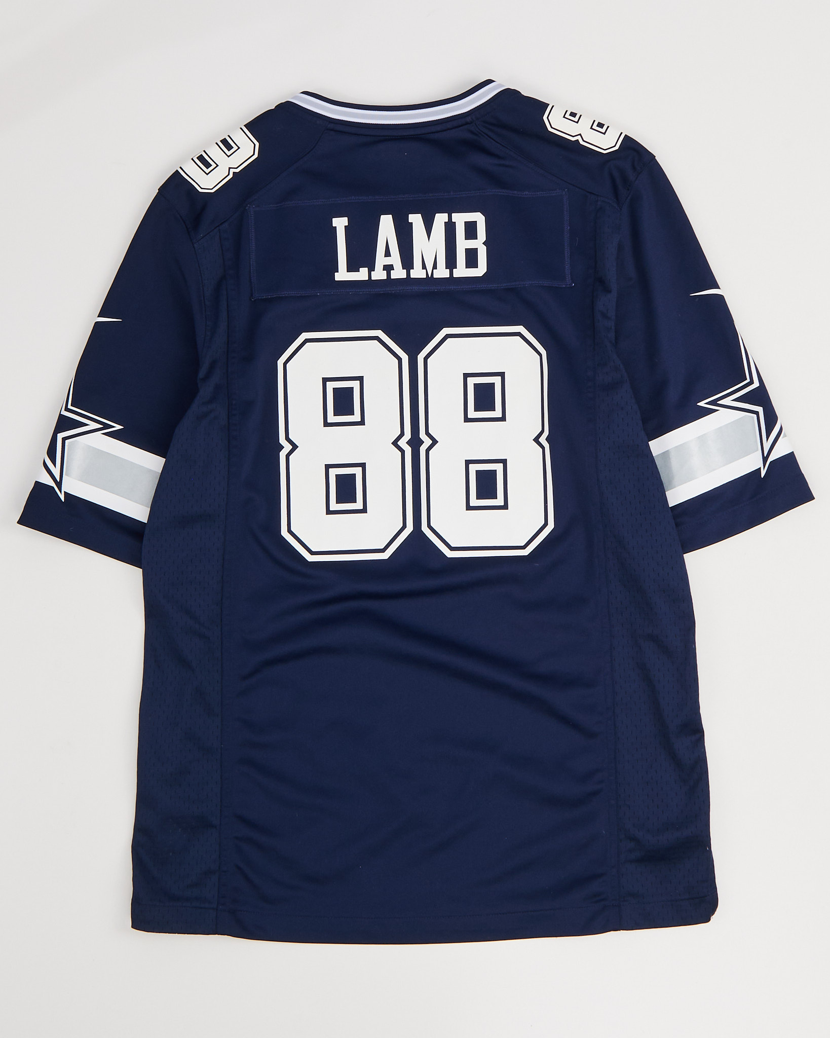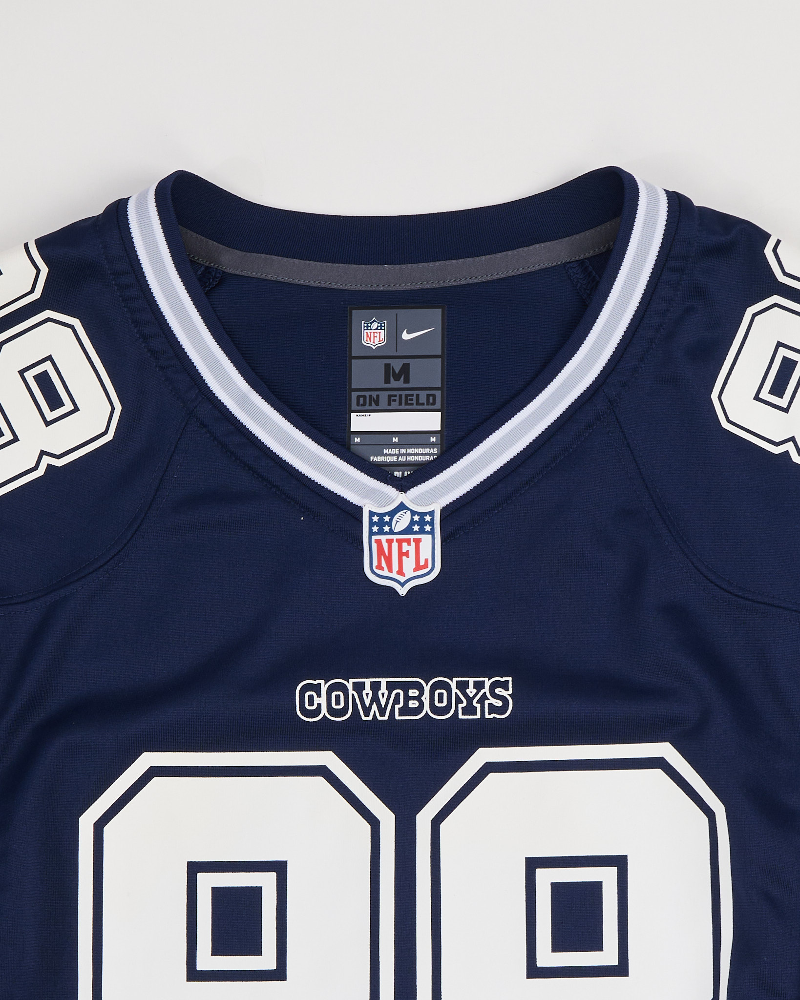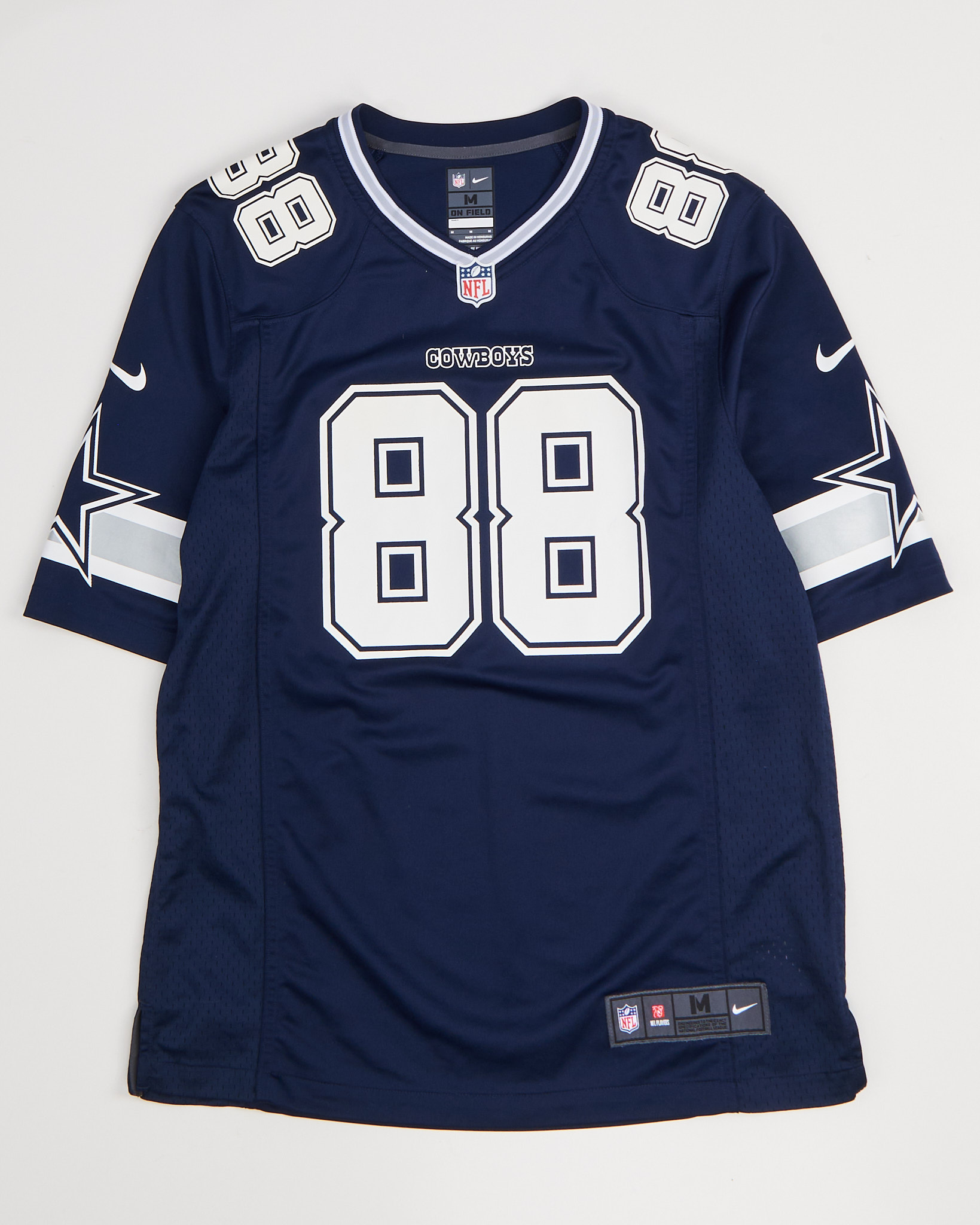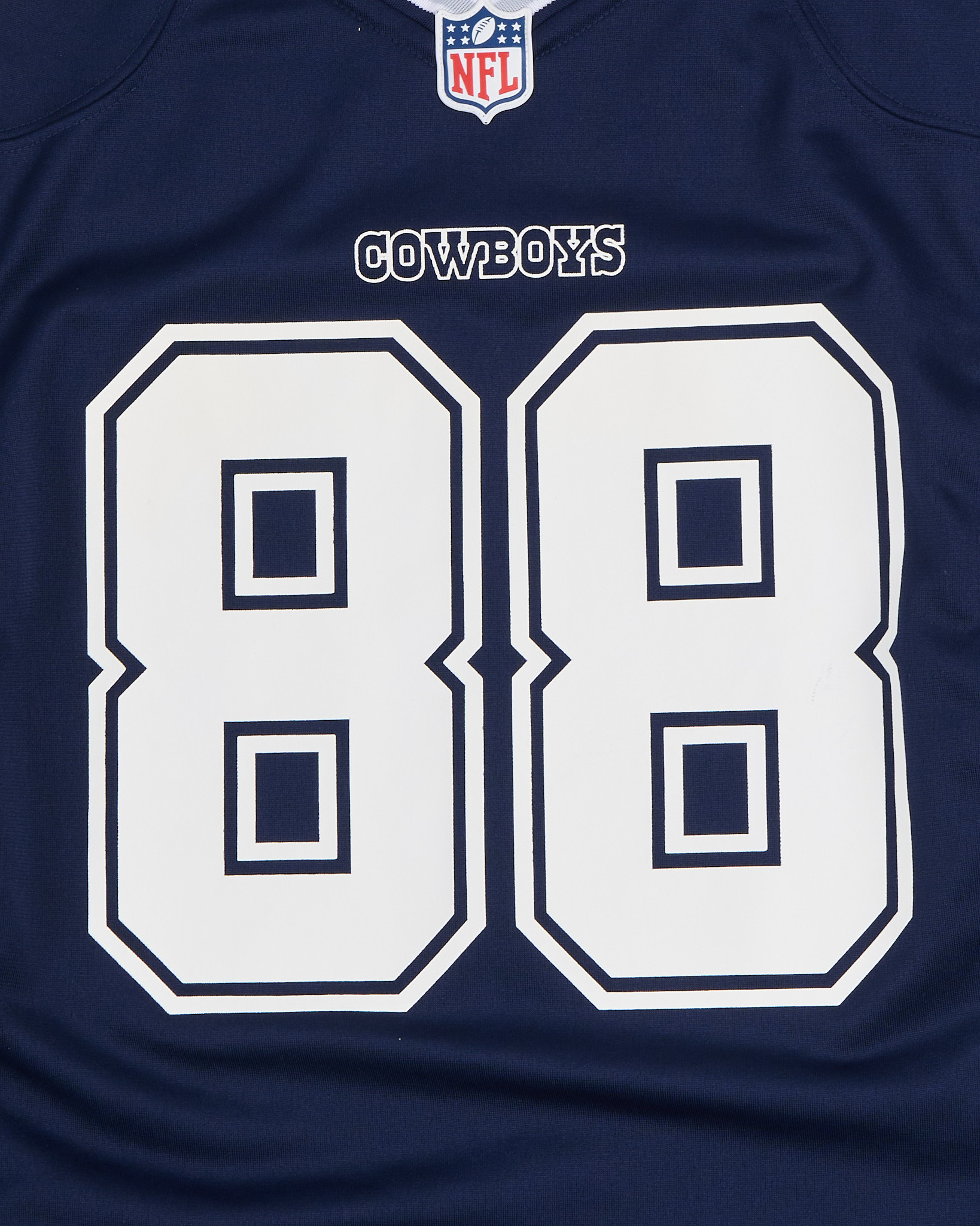 Футболка Nike темно - синего цвета. Свободная посадка. Прямой силуэт. Крупный номер «88» с четкими контурами. Логотип Cowboys и эмблема NFL. Рукава украшены фирменными деталями - звездами и полосами. Низ майки удлинен.