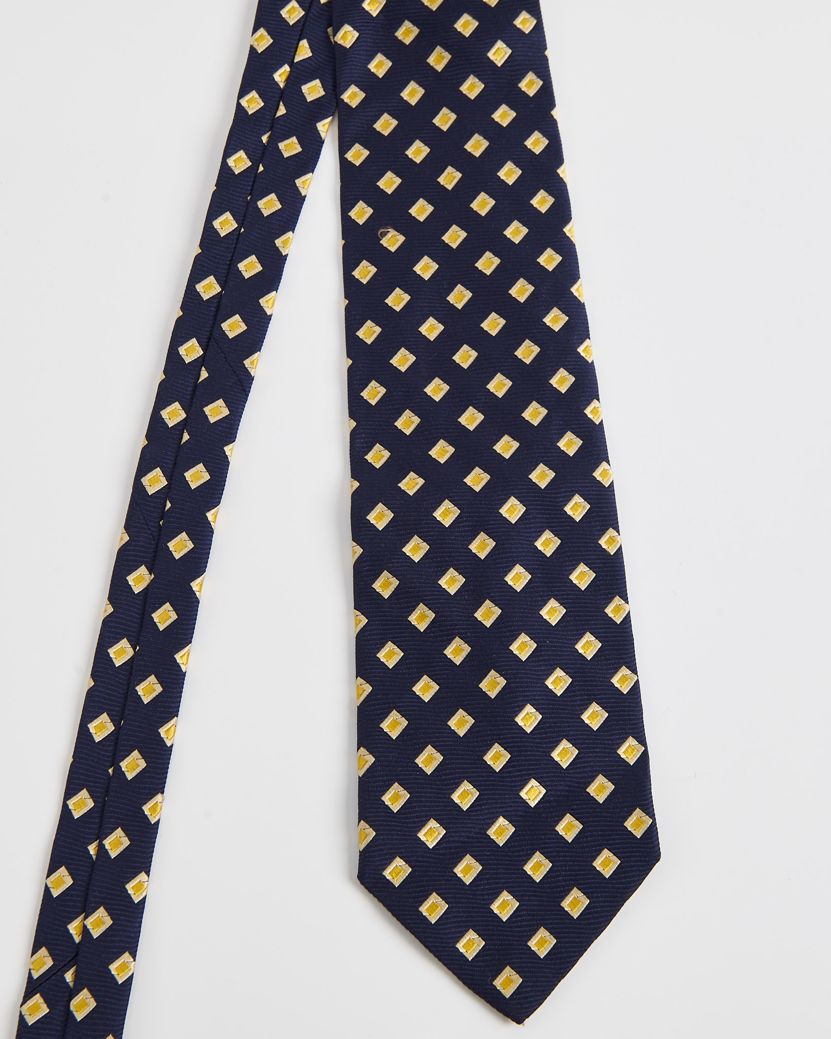 Галстук Hugo Boss из плотного шелка. Темно-синий фон в сочетании с контрастным орнаментом.