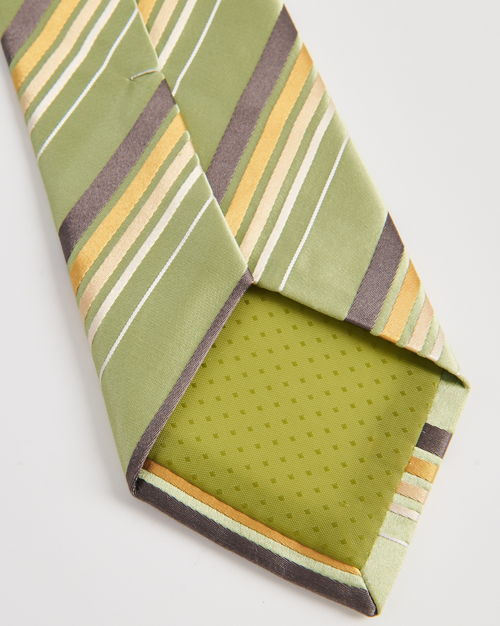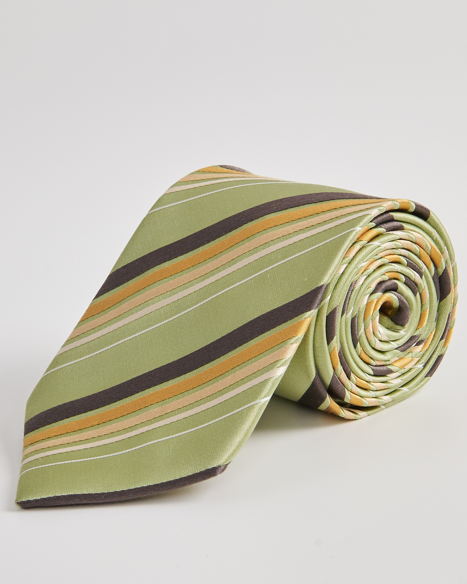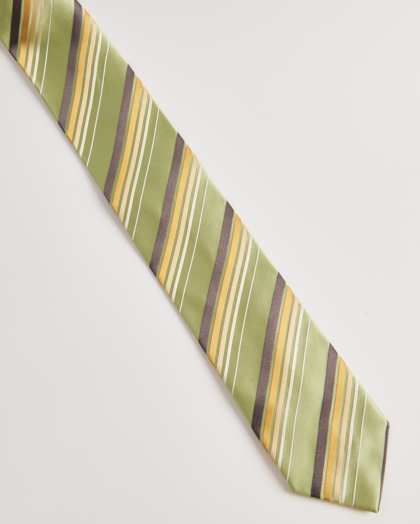 Галстук из шелка с легким блеском. Украшен диагональными полосами разной ширины.