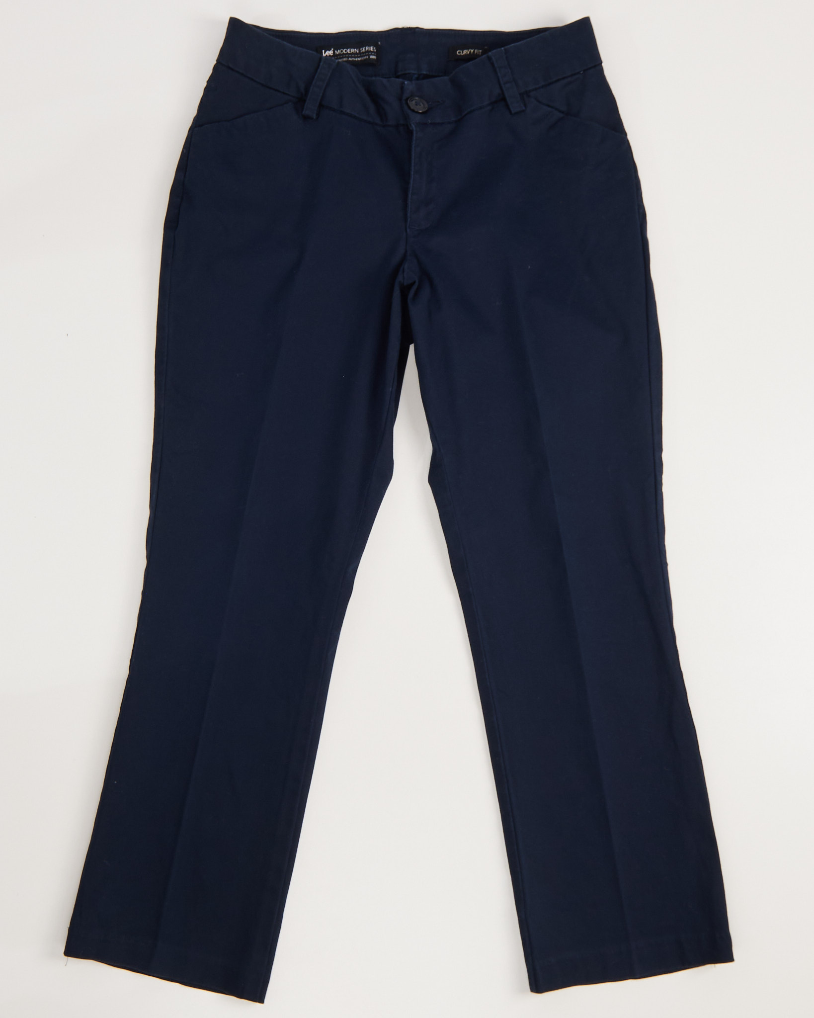 Брюки Lee из хлопка синего цвета. Посадка на талии, акцентная стрелка, функциональные карманы, есть шлевки для ремня.