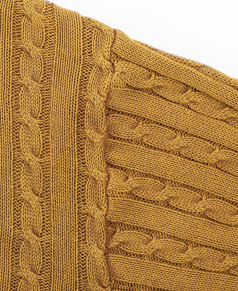 - Выразительный вертикальный рельеф, который подчёркивает форму, фактурная вязка