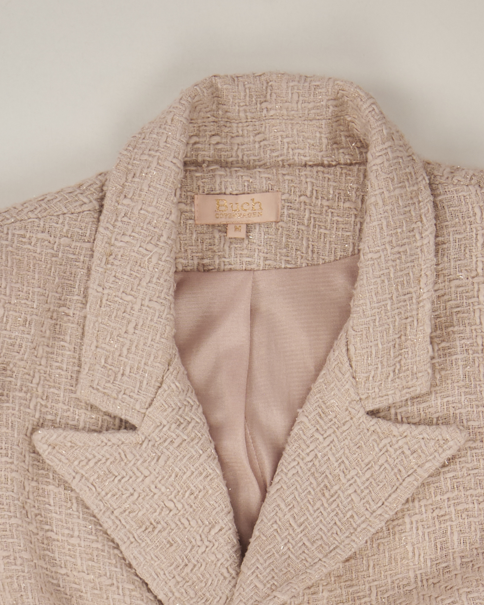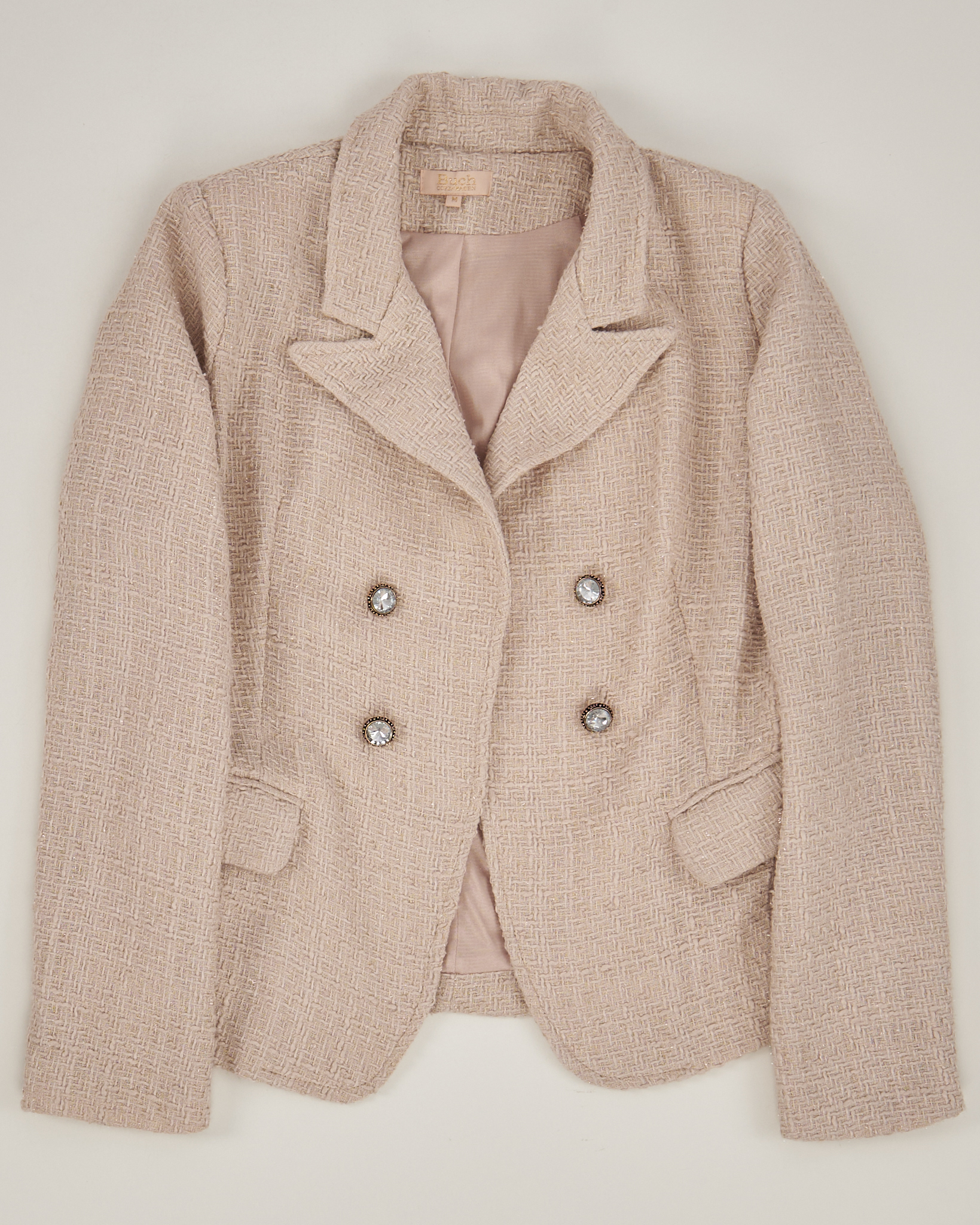 Жакет нежного бежевого цвета. Фактурная ткань. Декоративные пуговицы