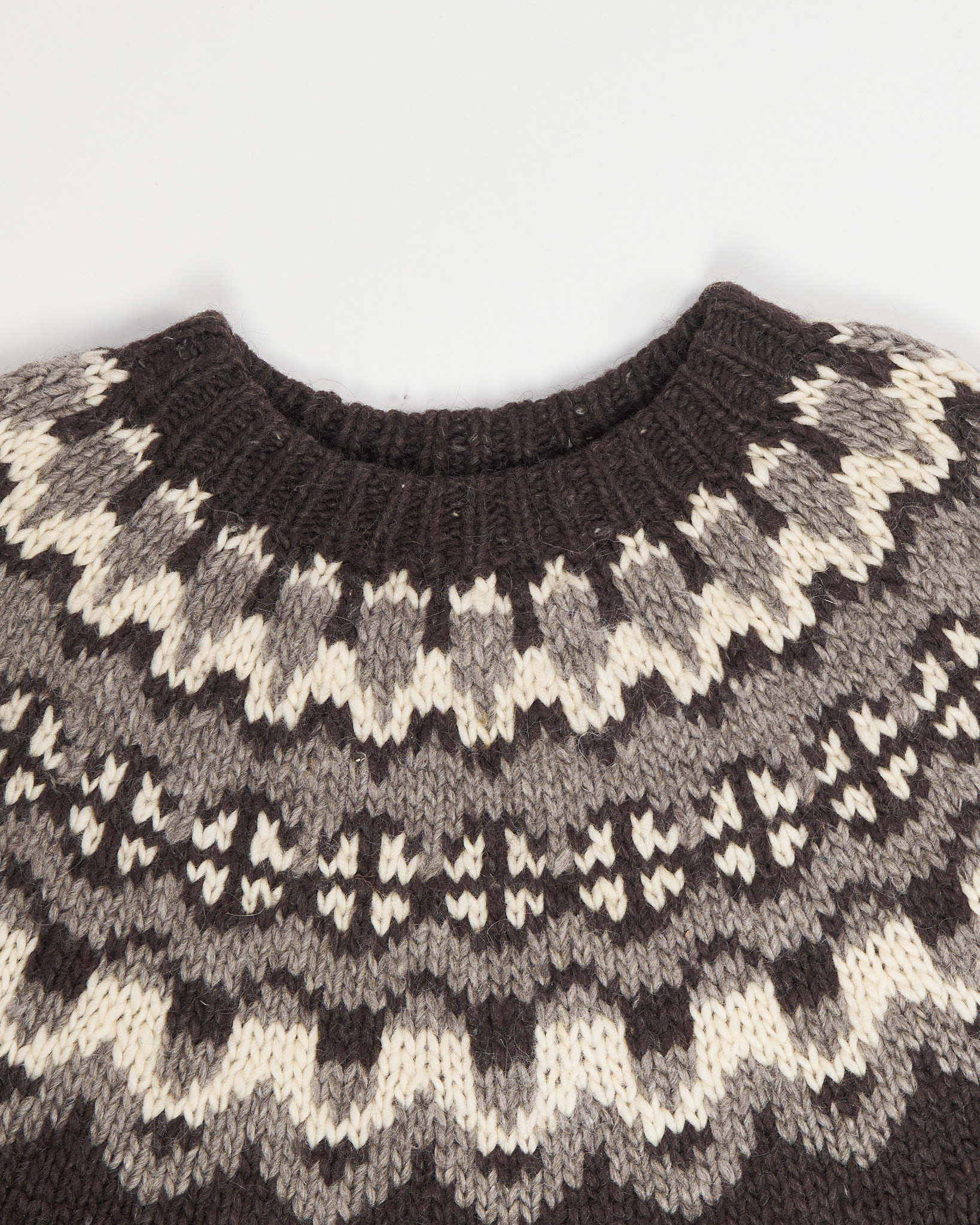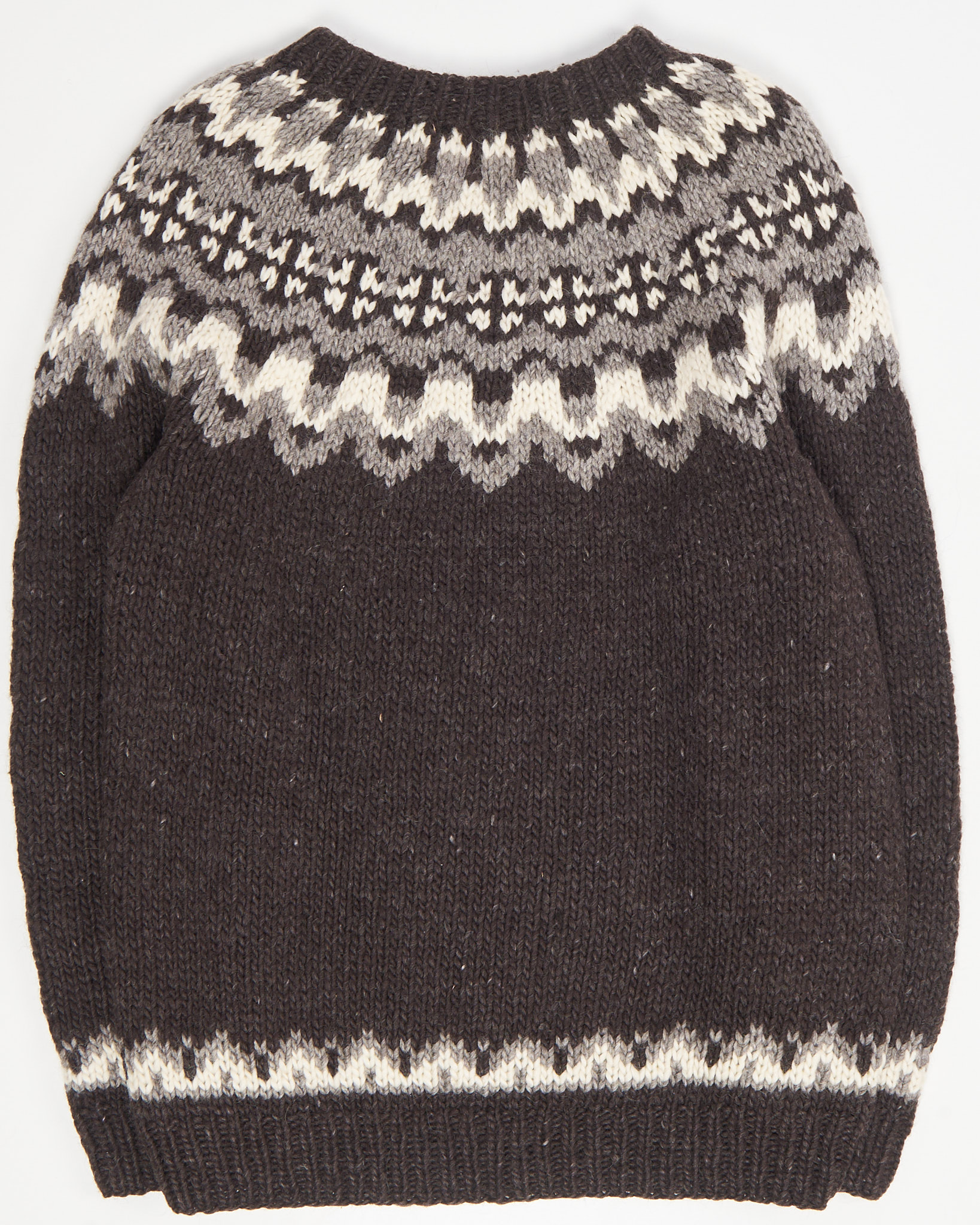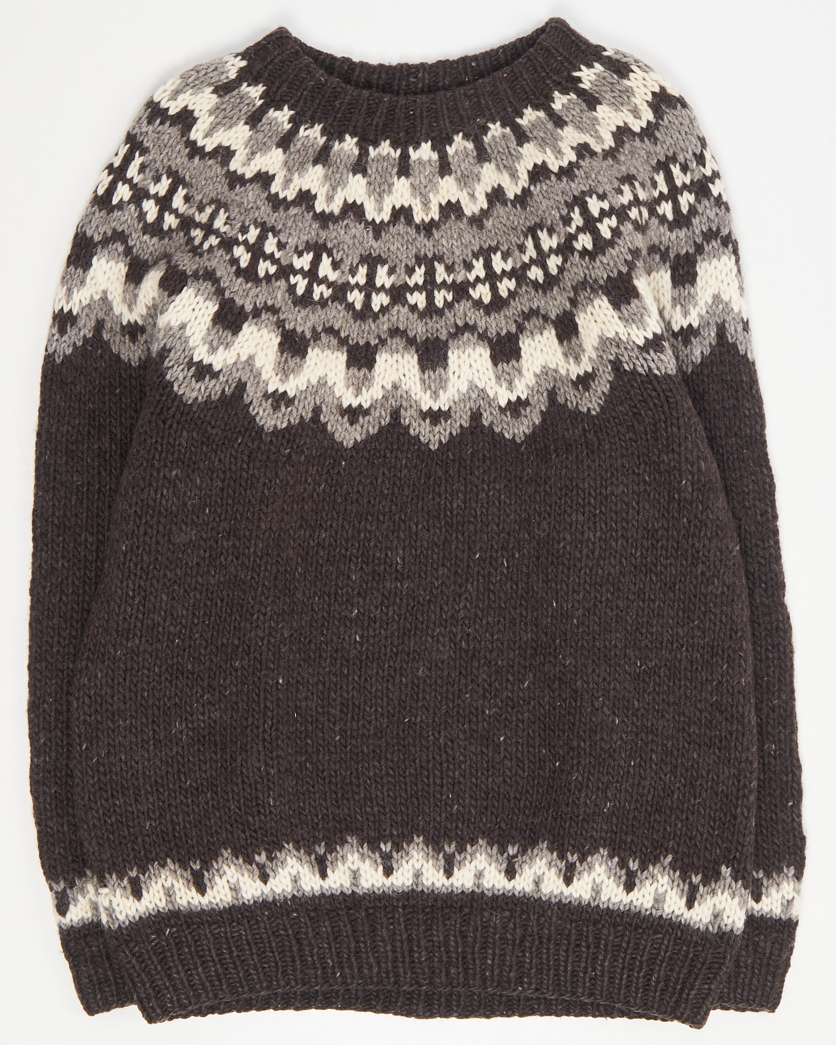 Свитер из натуральной овечьей шерсти, произведён в Исландии.Объёмная посадка создаёт свободный силуэт. Фирменный орнамент на рукавах и горловине.